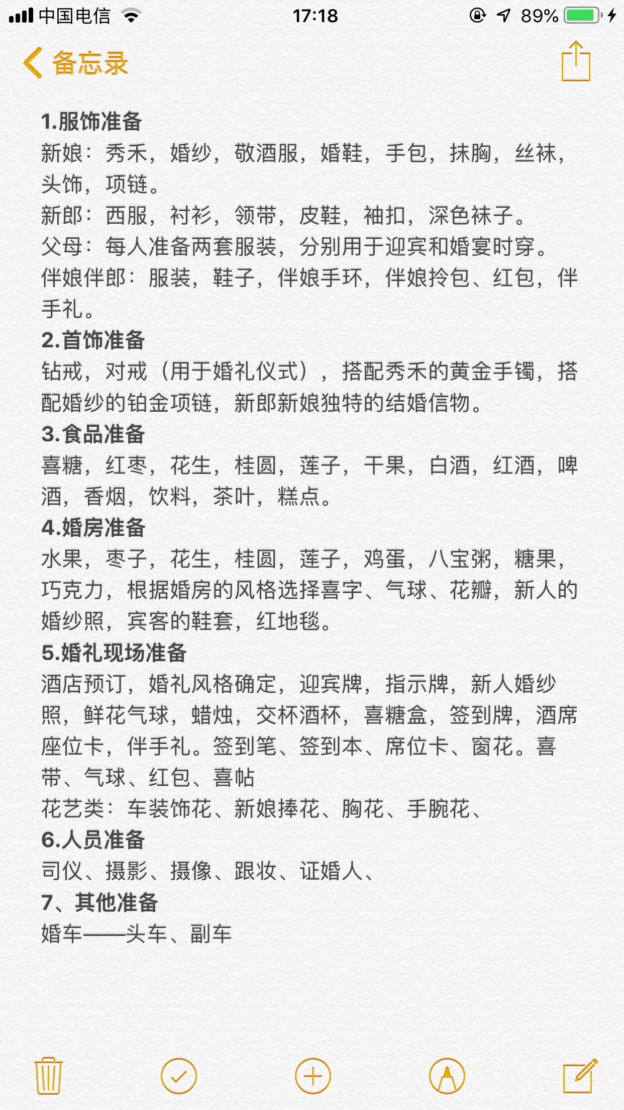 参考下小红书,里面有备婚物品清单