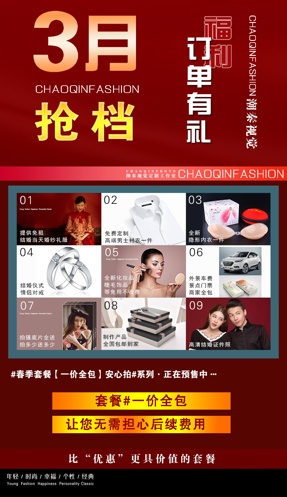 3.后期所涉及的费用一定要提前说好写入合同中。一般涉及的费用有,化妆的睫毛,安瓶,隐形内衣,衣服有没有分区加钱,拍摄车费门票等,有商家都是全部包含的
