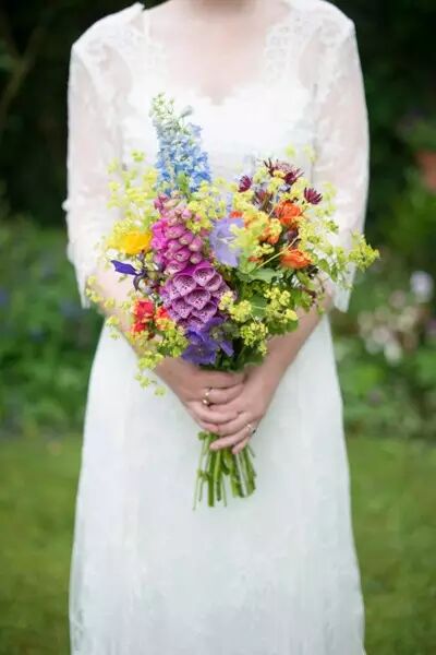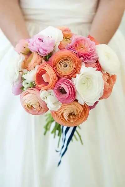 如果你的婚礼是在春夏,花朵盛开的季节,手捧花的选择当然也要多姿多彩啦!桃粉色的牡丹、白色的大丽花、黄色的风信子、奶油色的花园玫瑰以及紫丁香、白柑橘、薰衣草和鲜薄荷都是组成多彩花束的好花材,拿着多彩的手捧花仿佛捧着一个手上花园,浪漫又芳香。
