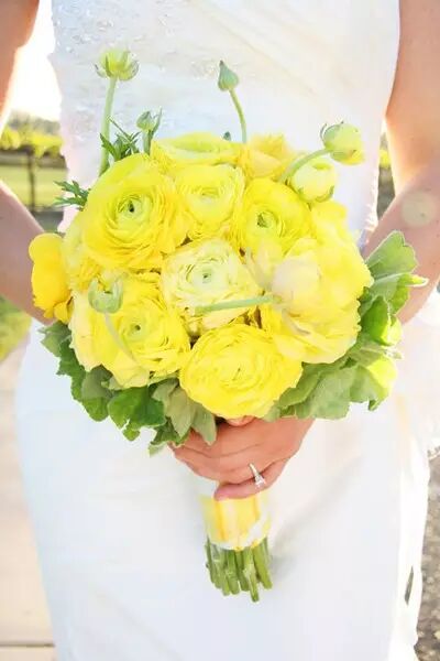 黄色本身就给人一种活泼的明亮感,黄色的手捧花俏皮有活力,中间插些白色的花朵点缀就很好看