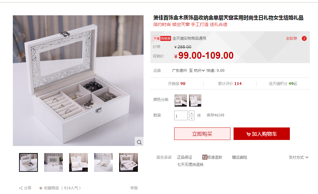 我给自己买的是这个首饰盒,结婚证压在最下面,三金什么的除了订婚和婚礼上用红色盒子装好以外我自己喜欢白色简约一点的首饰盒,就都放这里啦。