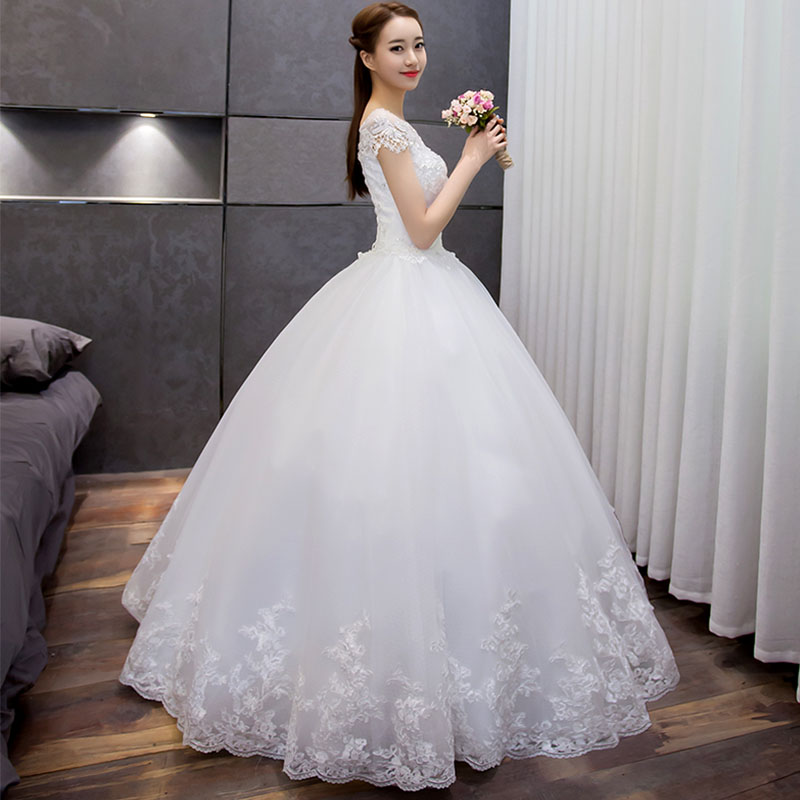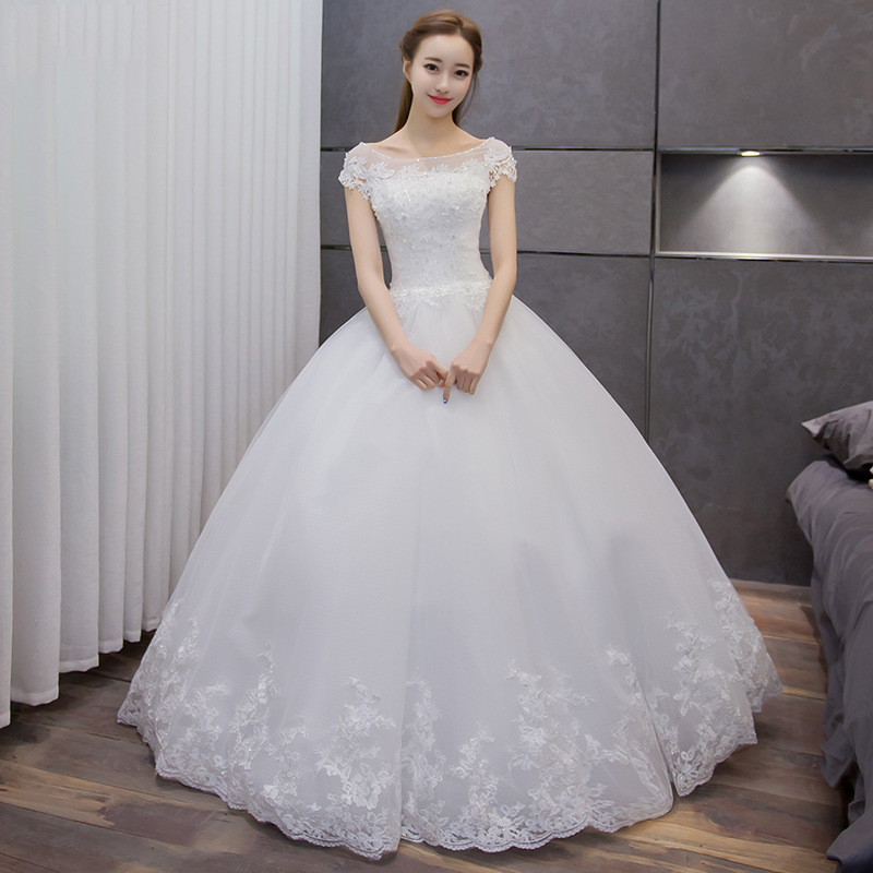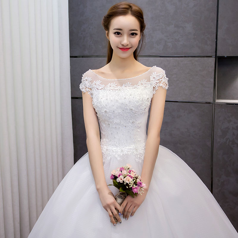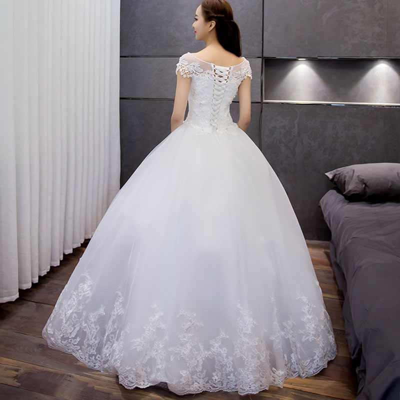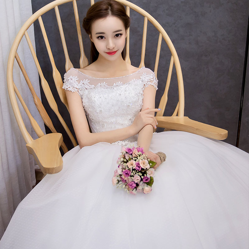 婚纱礼服新娘2017新款韩式齐地一字肩婚纱大码新娘8