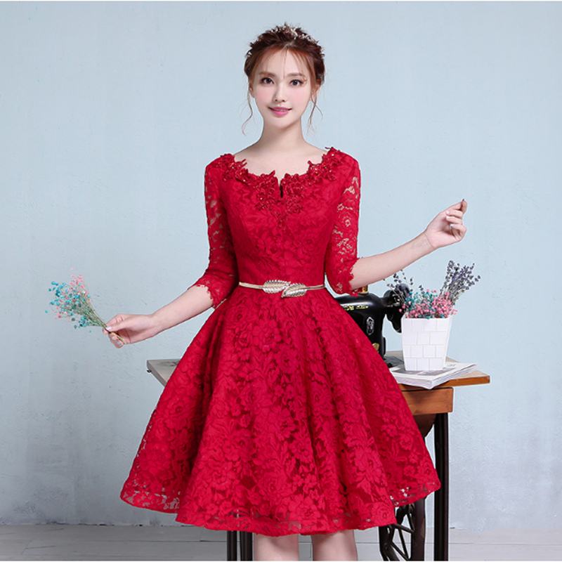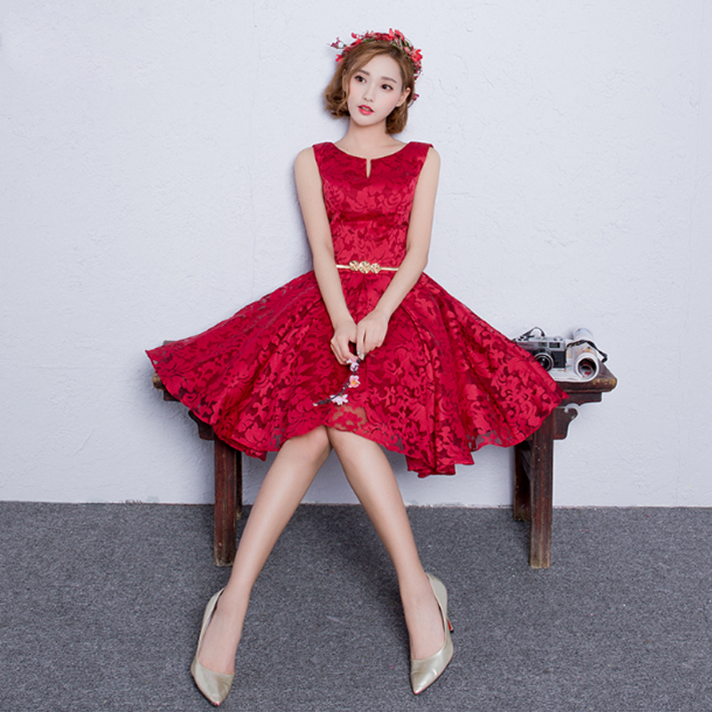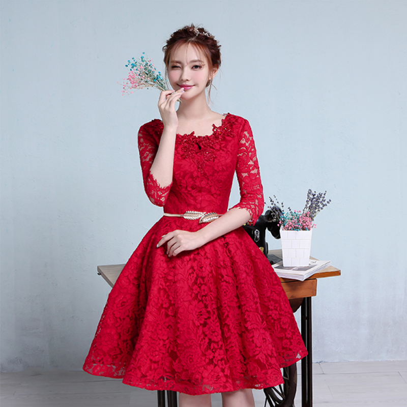 新娘敬酒服短款2017新款红色结婚礼服订婚宴会晚礼服裙聚会小