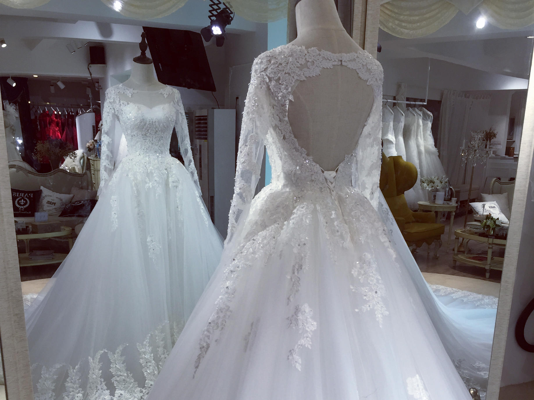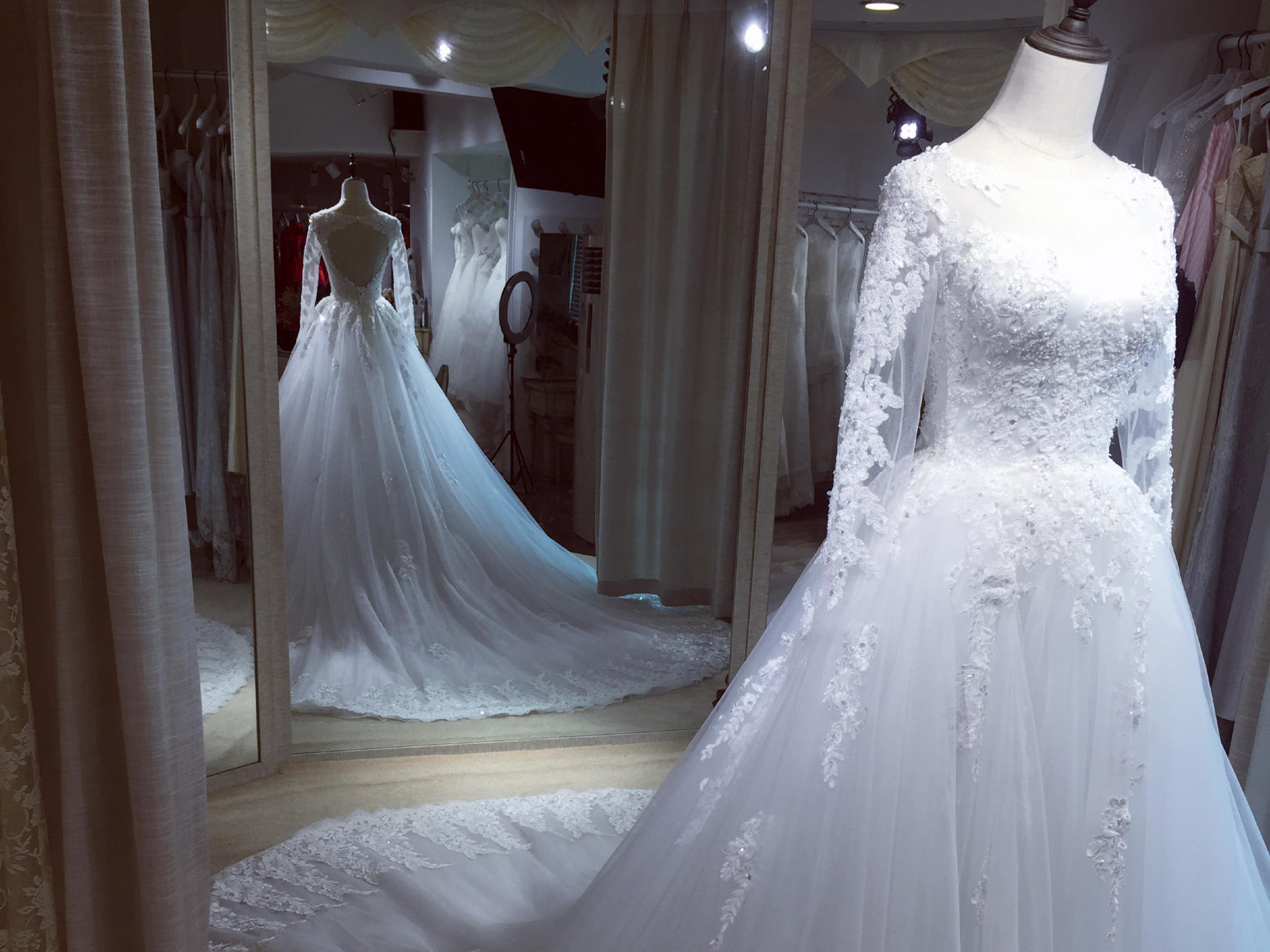 • 【卡卡夫人婚纱定制】高级定制露背大拖尾