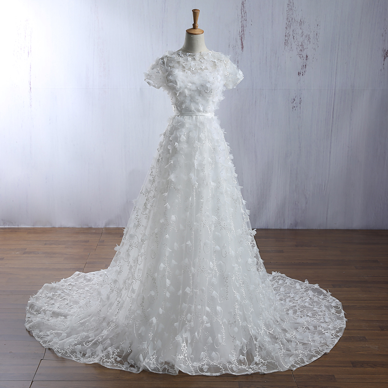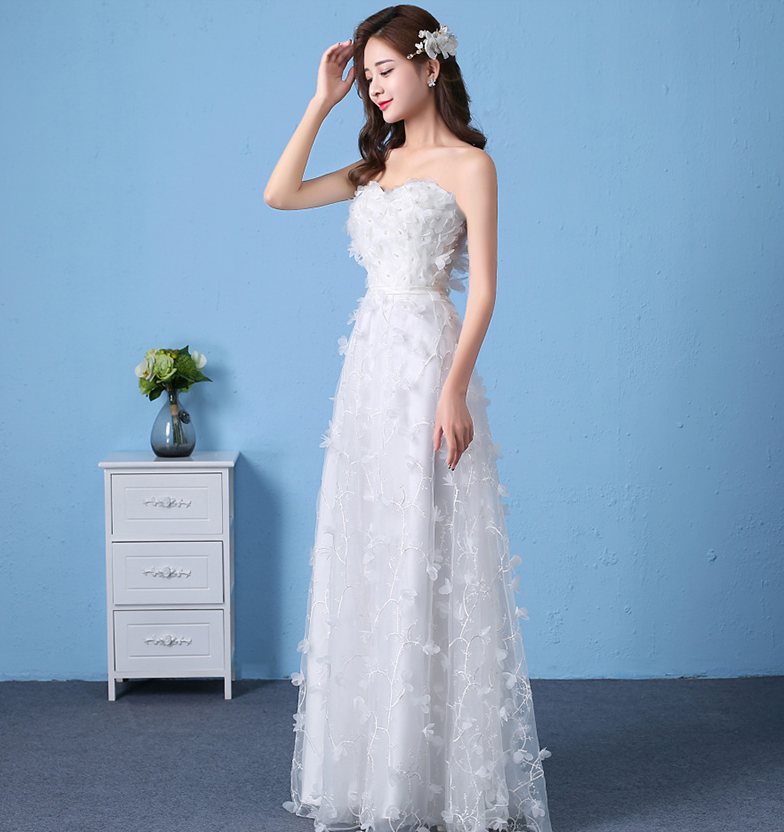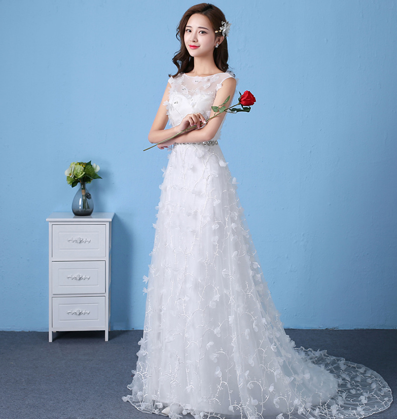 • 婚纱礼服新娘春季新款韩式孕妇高腰抹胸齐地蕾丝小拖尾双肩
