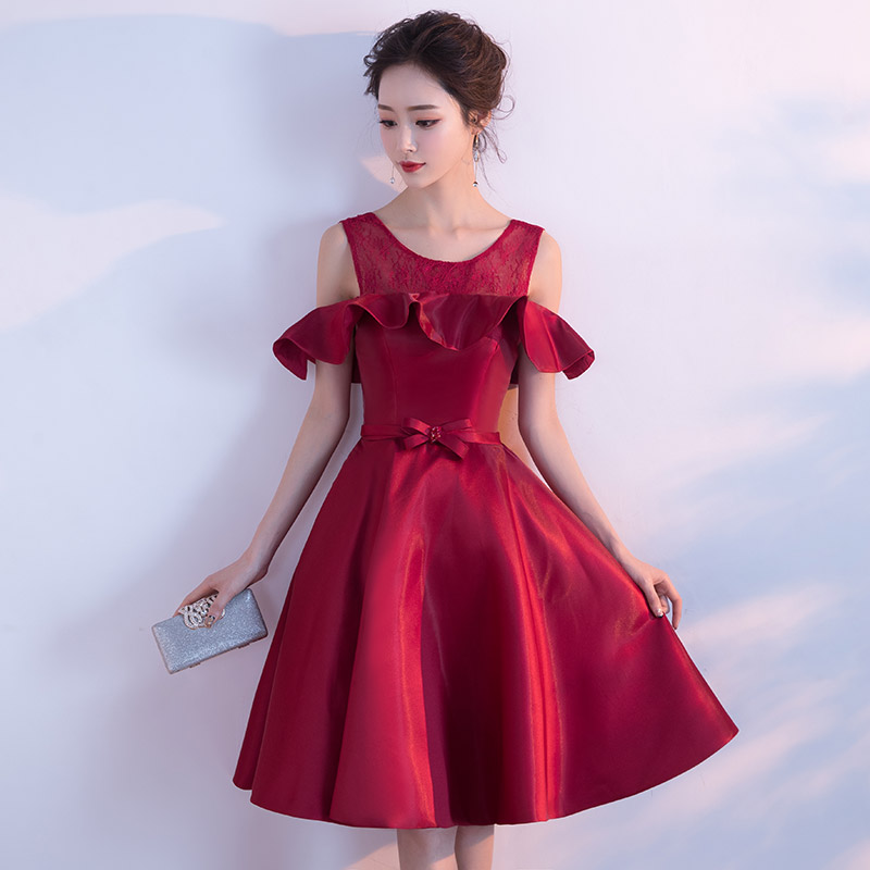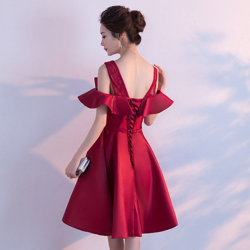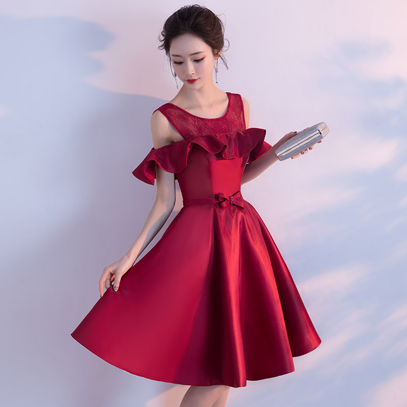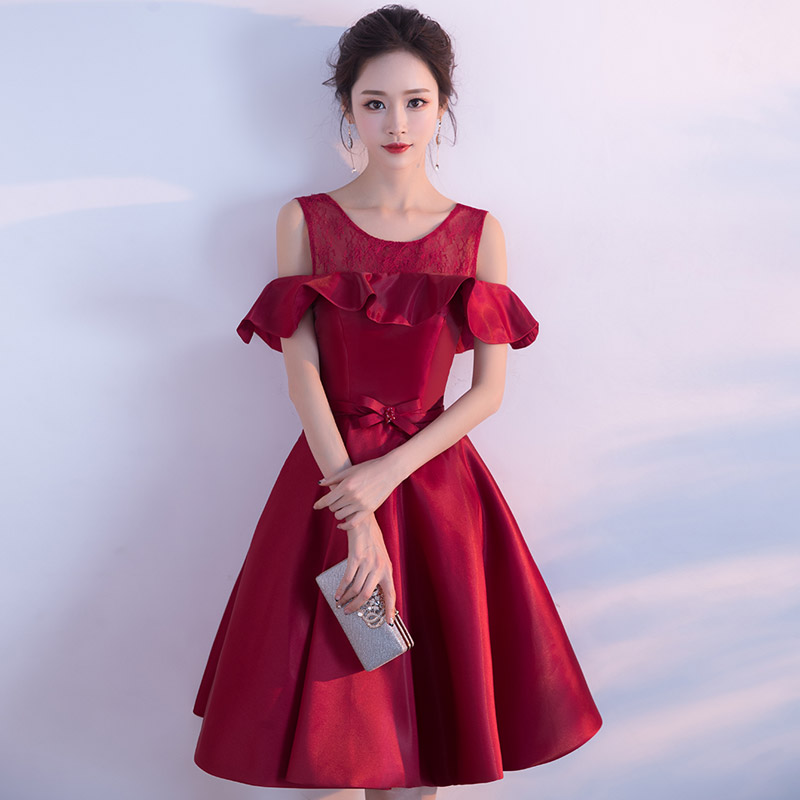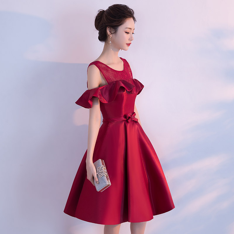 • 敬酒服回门服2017新款新娘红色一字肩短款结婚衣服订婚服