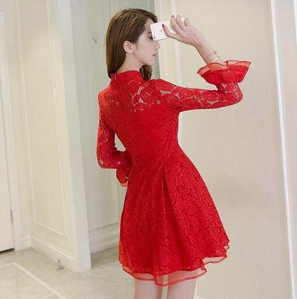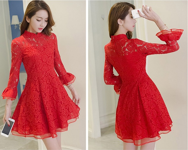 • 2017春新款新娘敬酒服中长款回门结婚礼服长袖高腰时尚蕾丝连