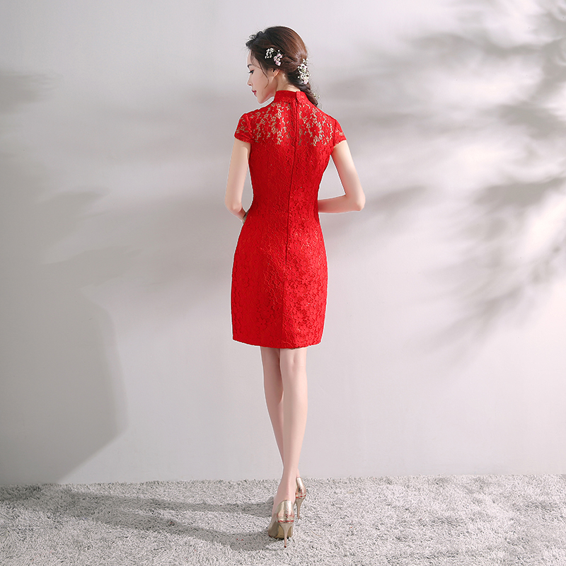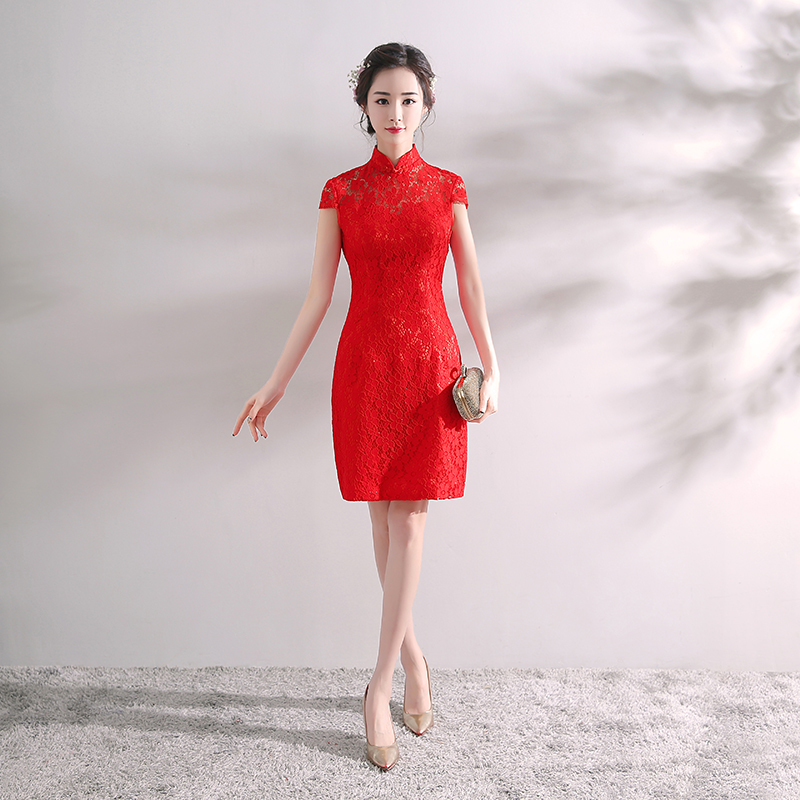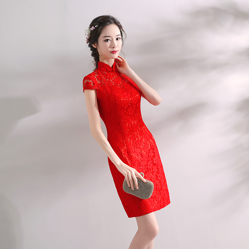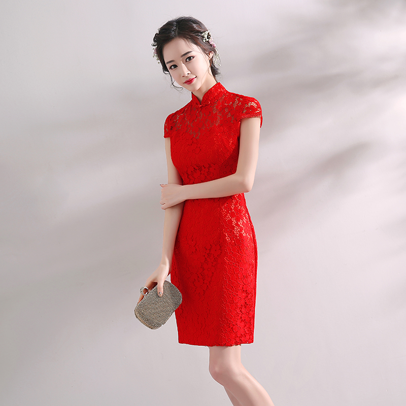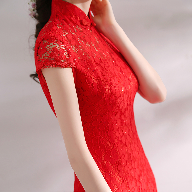 敬酒服新娘中式礼服2017结婚新款旗袍连衣裙红色蕾丝回门服女