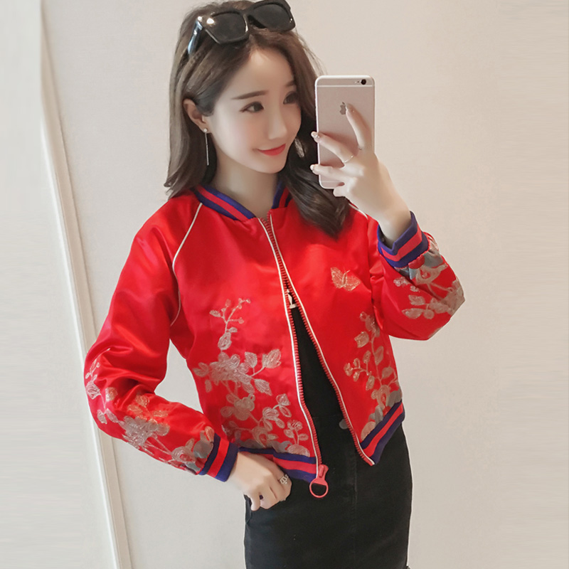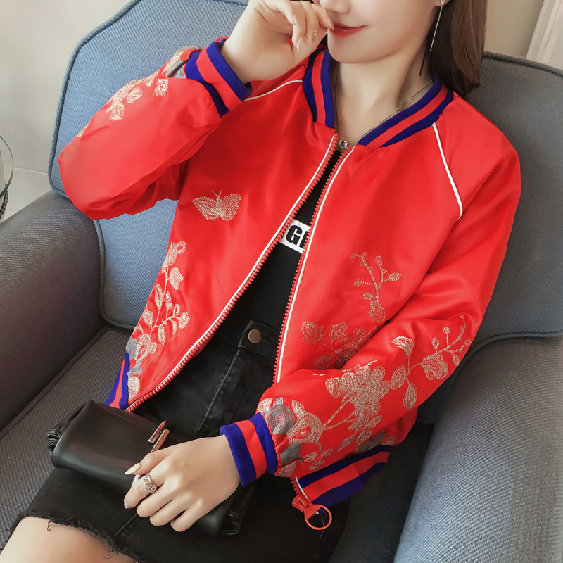 • 2017春秋新款女装韩版明星同款刺绣棒球服女短小清新学生夹克
