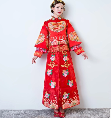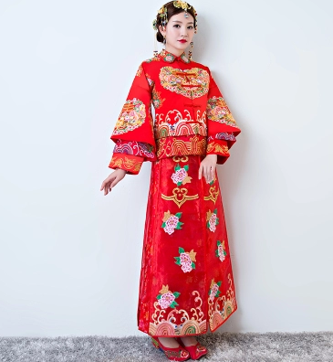 • 新秀禾服新娘2017敬酒服中式婚纱礼服修身显瘦旗袍龙凤褂红