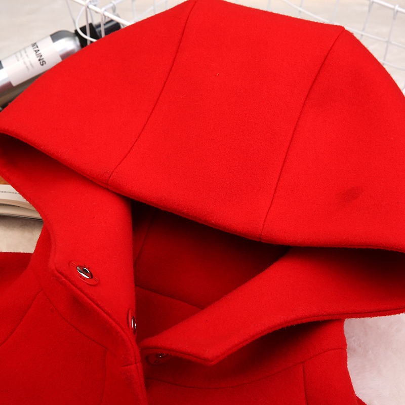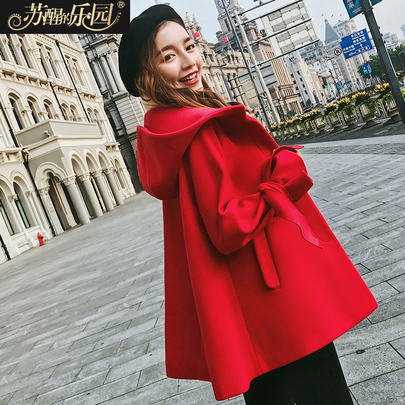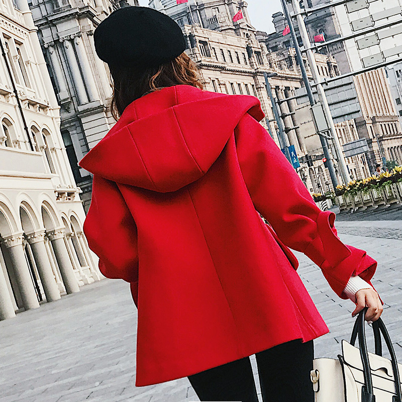 • 斗篷毛呢外套女装秋冬季英伦大红色韩版短款宽松矮小个子呢子大衣