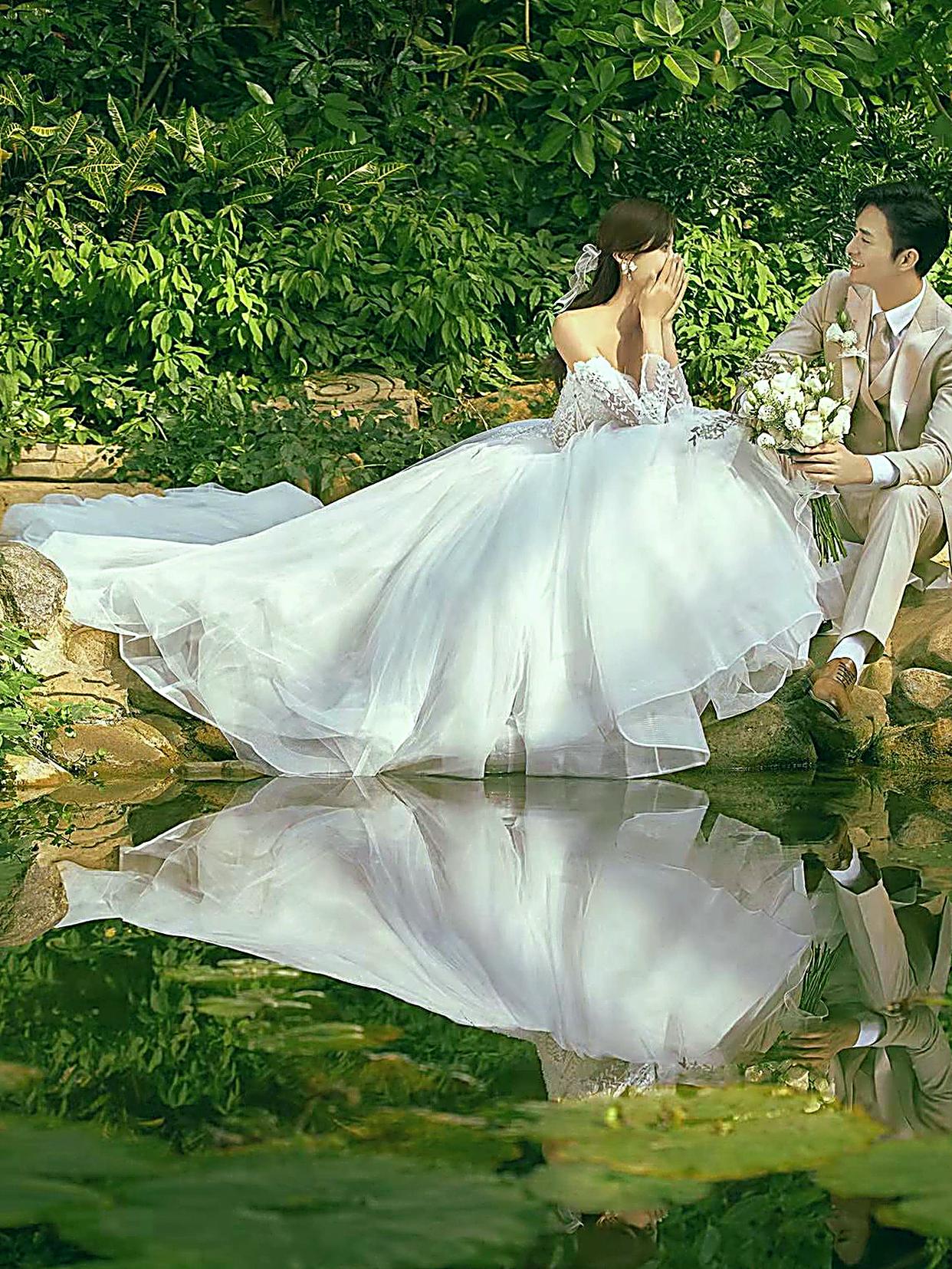 江边浪漫白纱婚纱照❤️