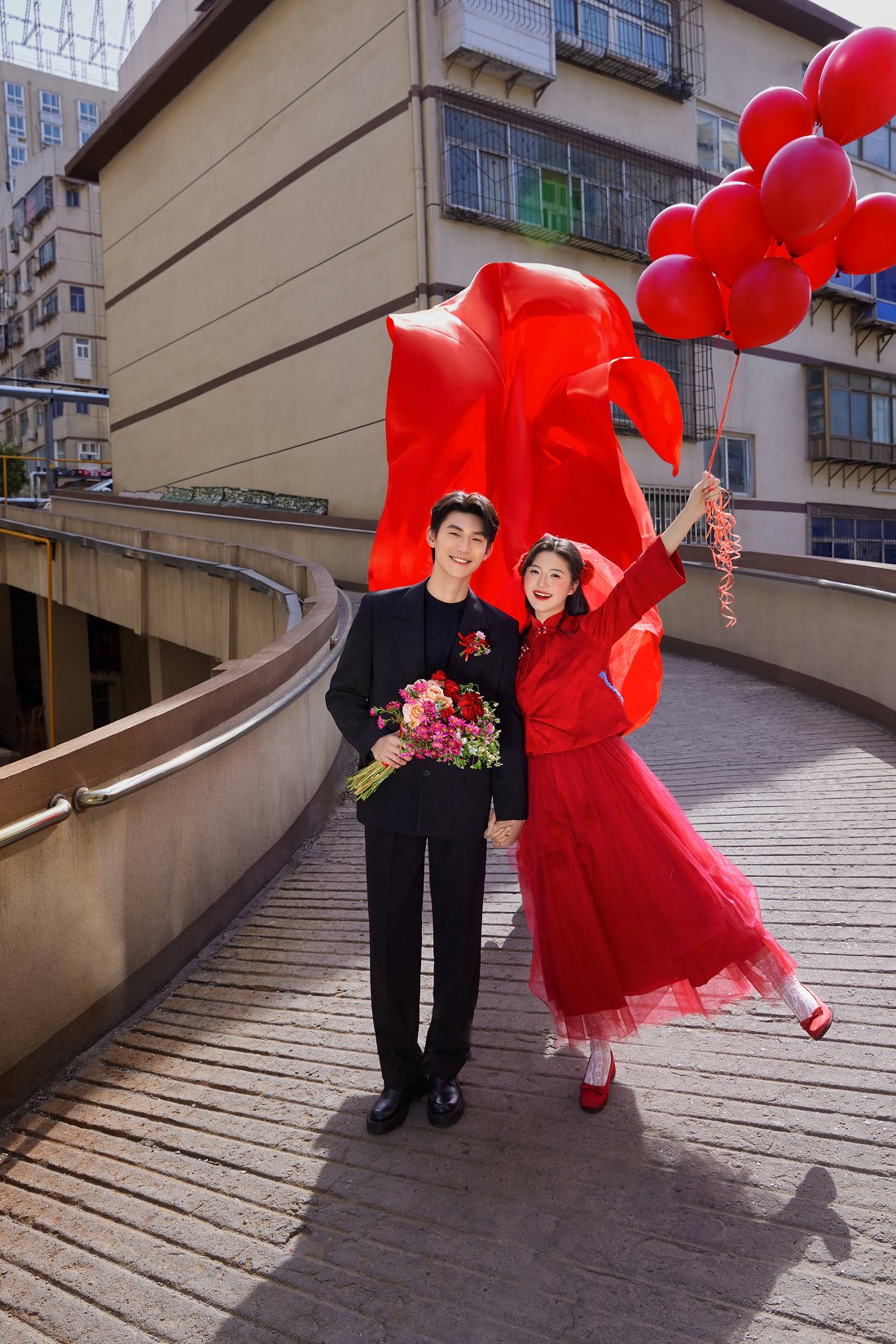 预算不多,本来担心拍不出想要的效果,结果这家套餐挺实惠,没花冤枉钱。我和老公拍一天下来累得够呛,可过程特别顺利 —— 摄影师很幽默,教我们摆动作时还会模仿我们的样子,逗得我们直笑;化妆师的妆也很精致,每套造型都很搭。真的谢谢工作人员,没让我们失望!