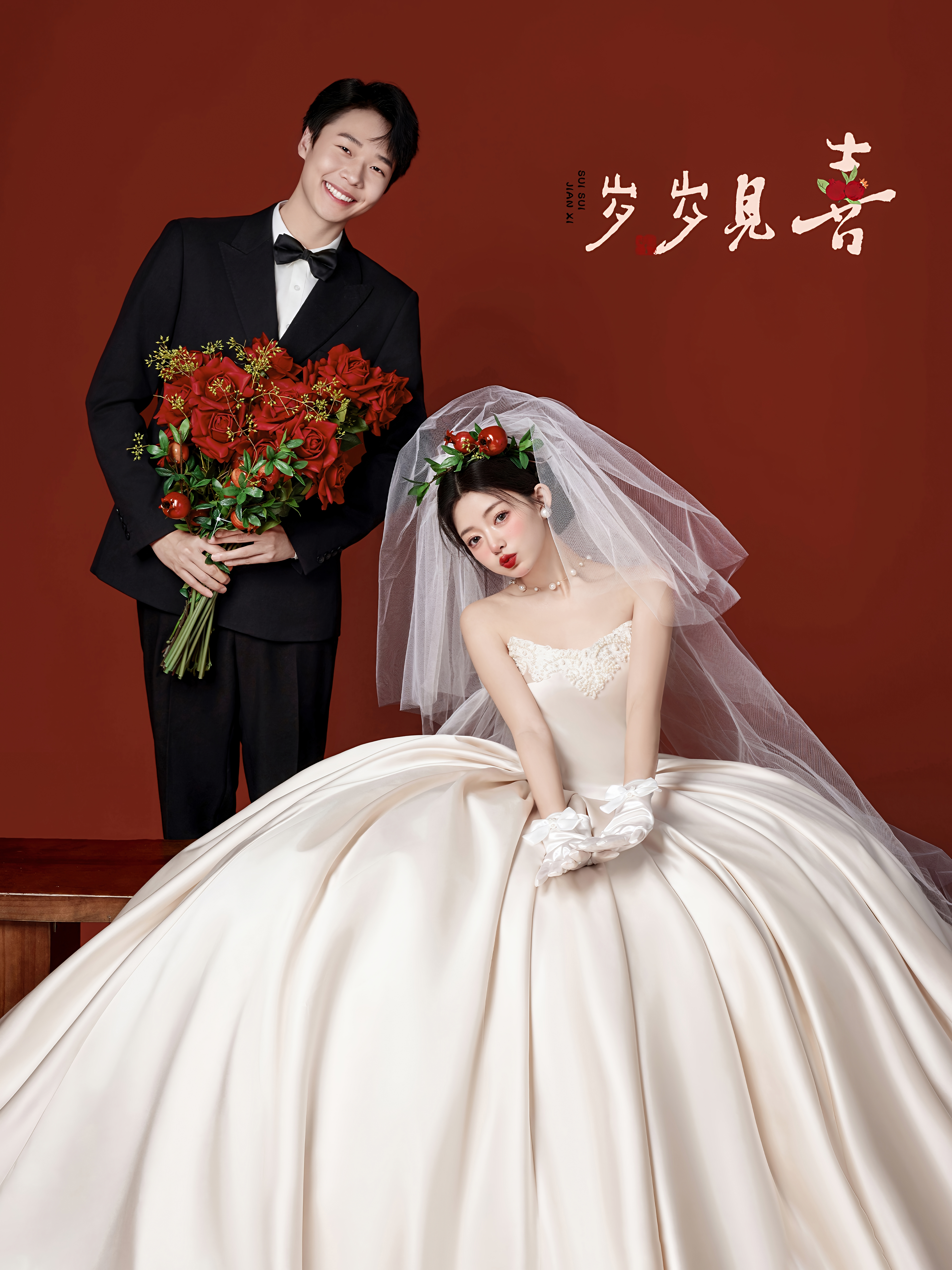 期待很久的红色复古婚纱照♥️这也太出片了
