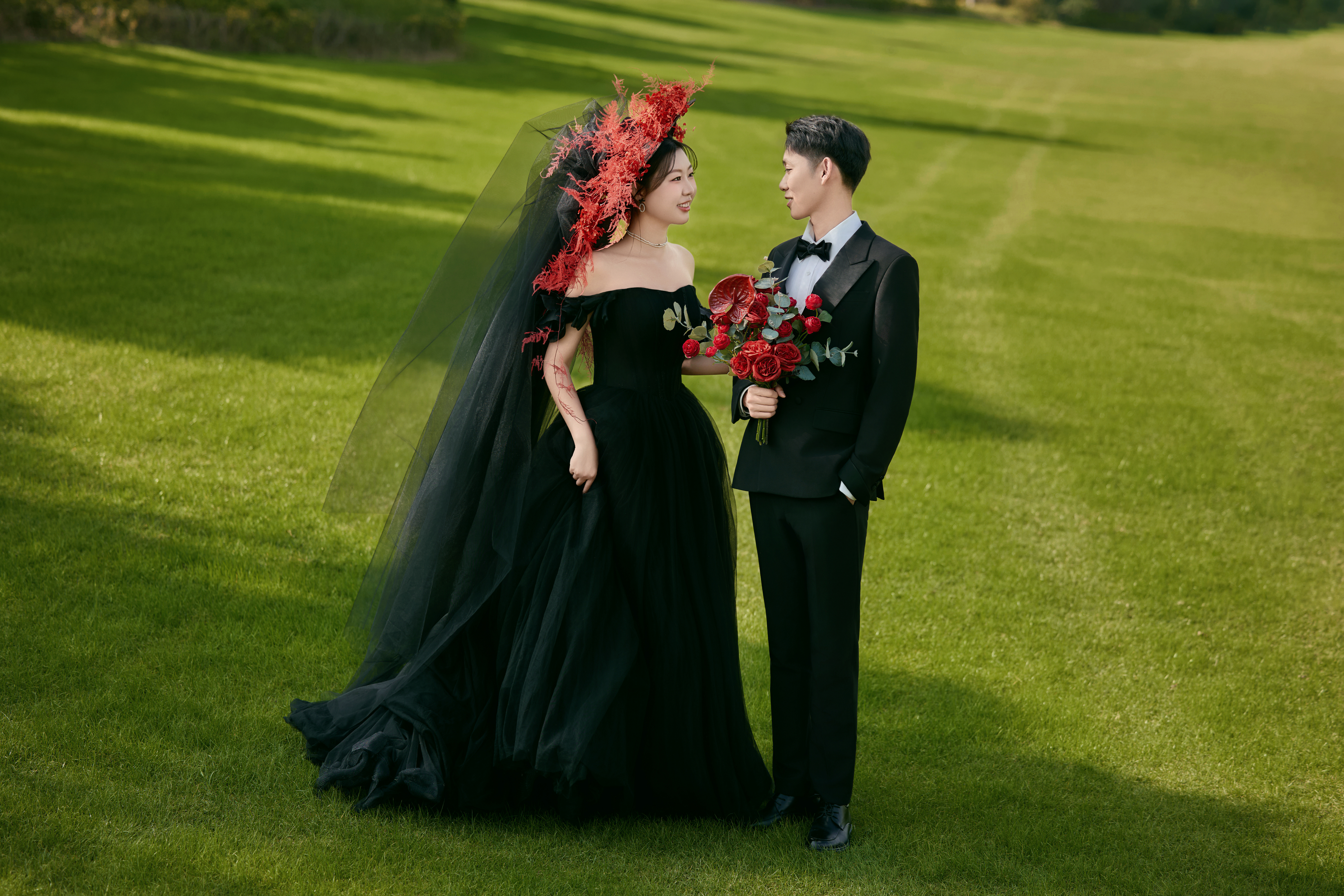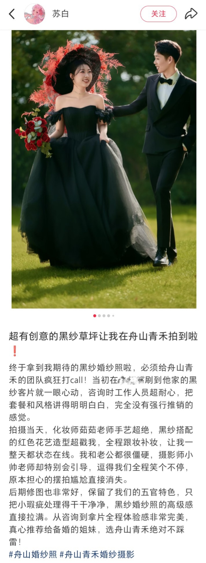 感谢小姐姐的用心分享~从第一眼被黑纱客片吸引,到全程无推销的耐心咨询,再到拍摄当天化妆师茹茹老师的绝美红色花艺造型、摄影师小帅老师的趣味引导,最后到保留五官特色的精致修图,每一个环节都藏着我们对高级感婚照的坚持。看到你们从僵硬拘谨到笑眼弯弯,从期待到满意,就是青禾团队的动力。黑纱的神秘优雅,草坪的清新治愈,碰撞出独属于你们的浪漫记忆。舟山青禾婚纱摄影,用专业和温度,帮每一对新人定格不踩雷的幸福瞬间