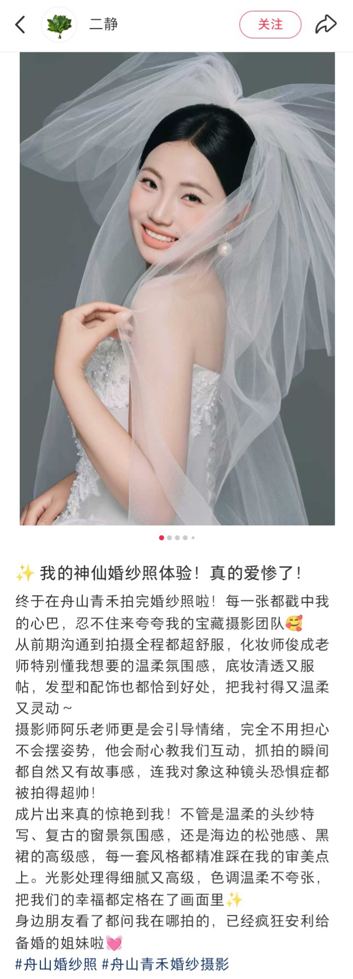 感谢小姐姐的走心分享~每一句夸赞,都是我们前行的动力,从前期沟通到拍摄成片,我们始终相信,好的婚纱照是把新人的温柔与幸福,都揉进光影里,化妆师俊成老师懂你要的氛围感,摄影师阿乐老师会耐心引导每一个情绪。不管是头纱的灵动、海边的松弛,还是复古的高级感,我们都想为你定格最自然的幸福瞬间,舟山青禾,用心记录每一份美好,期待为更多备婚姐妹,拍出戳中内心的婚纱照