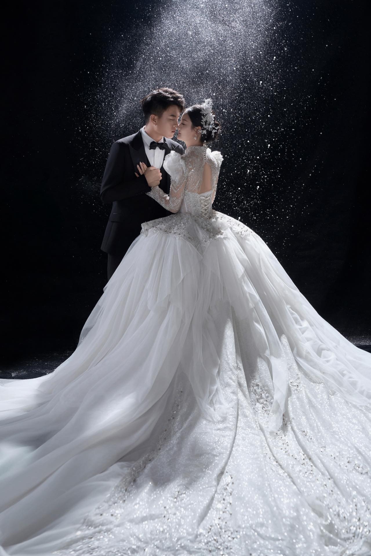 威海极简主纱,黑背景的蓬蓬头纱也太高级了