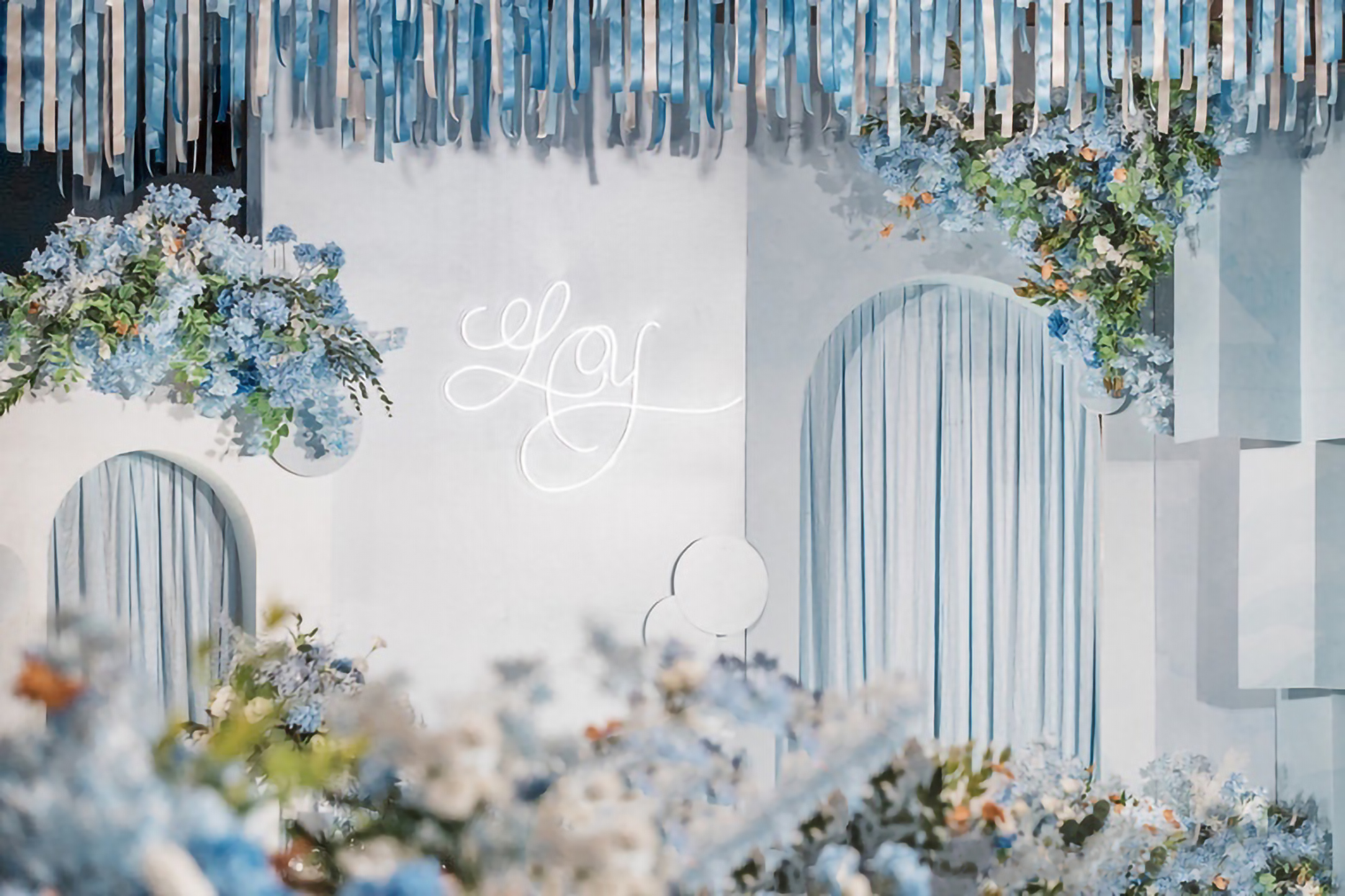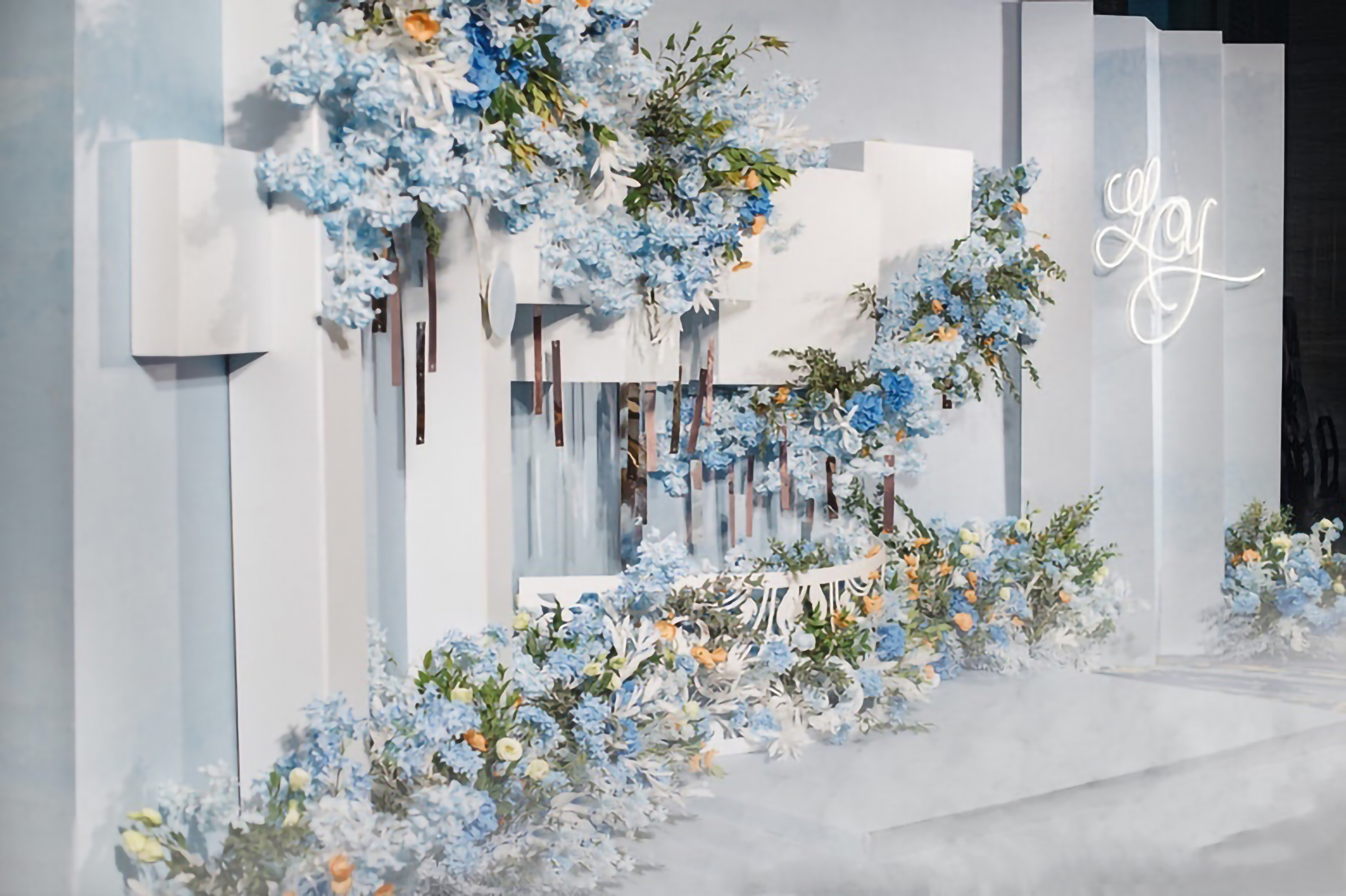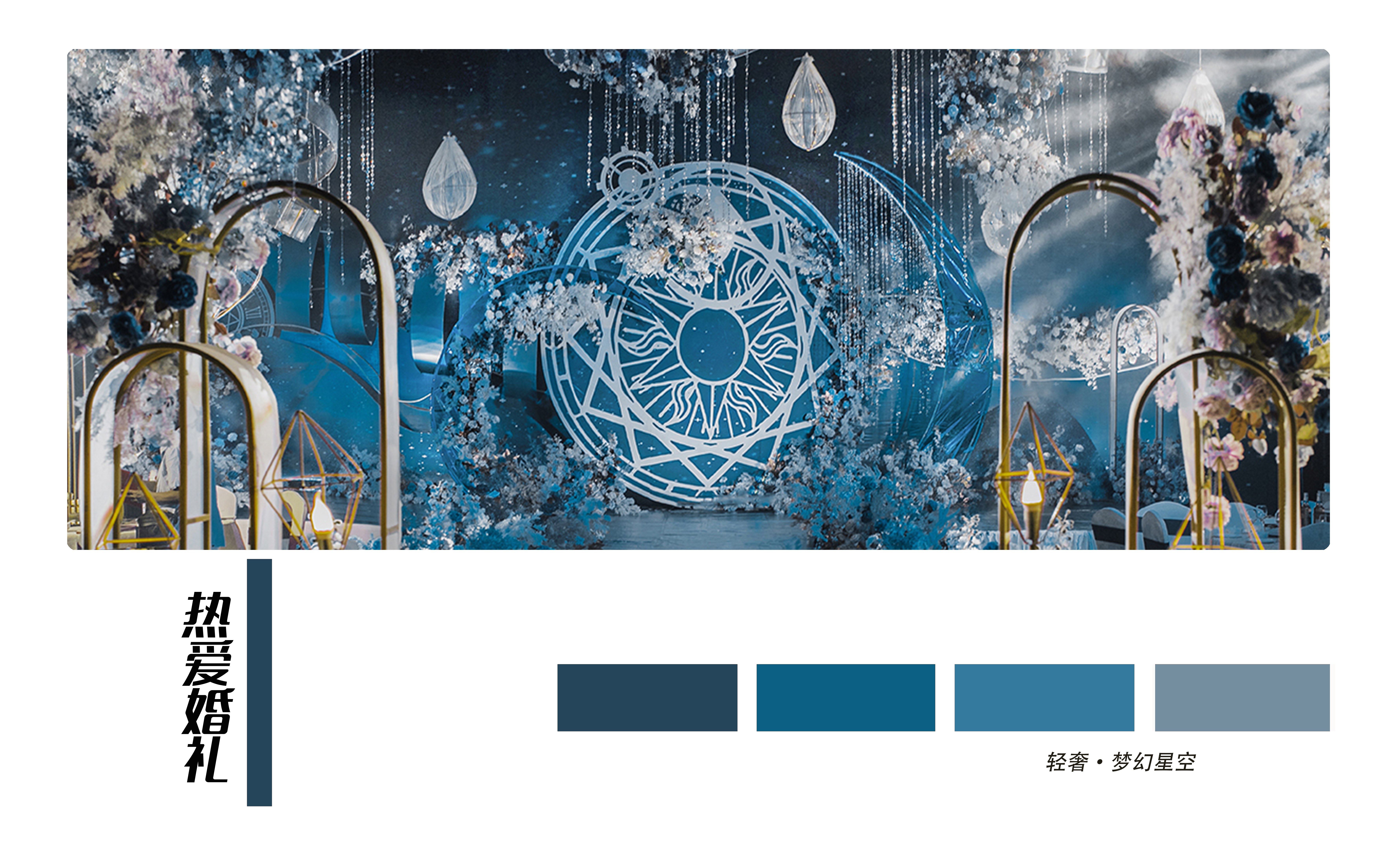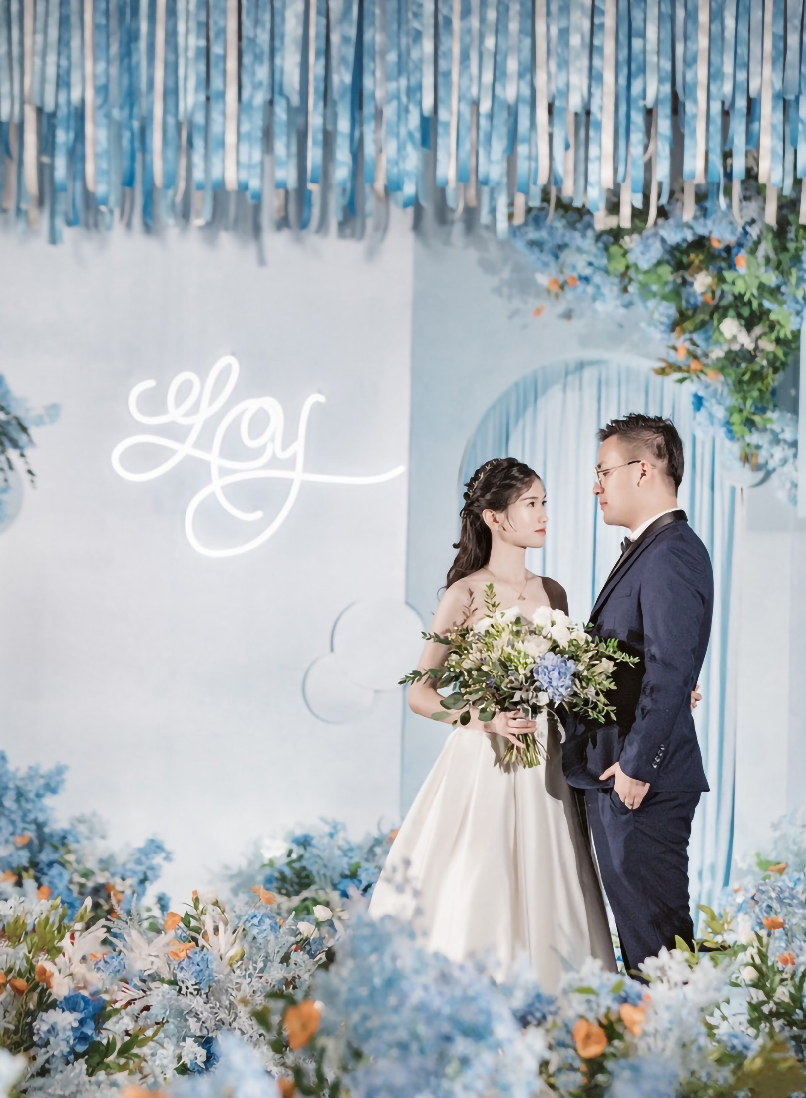 • 大地色的质朴沉稳,雾霾蓝的细腻柔和,精致高级,简约却也不失灵动~打造了这样一个简约但不简单,低饱和度的蓝色系婚礼真的很好看 ,这是梦想与自由的颜色 ,介于年少与成熟之间的颜色!