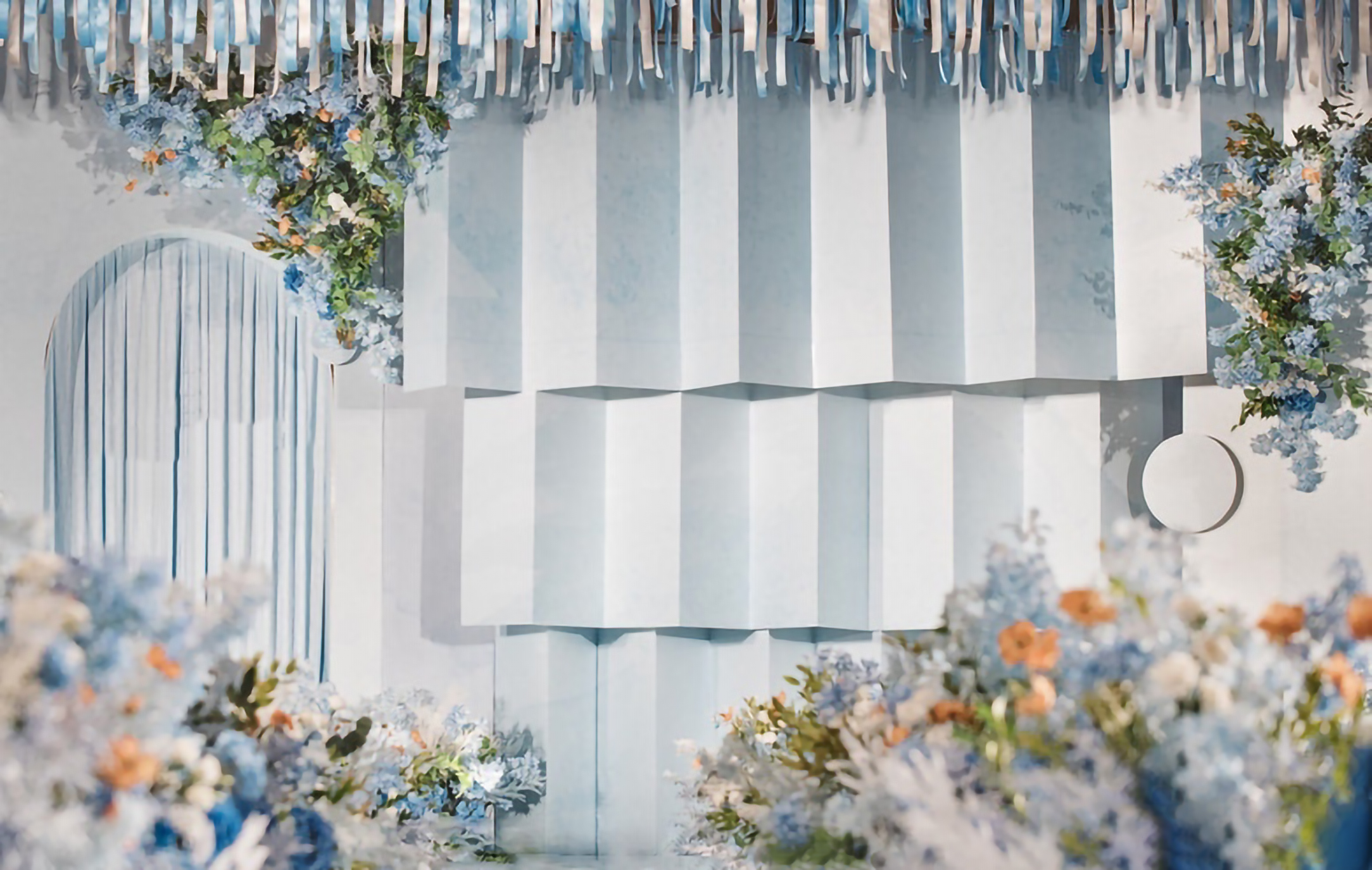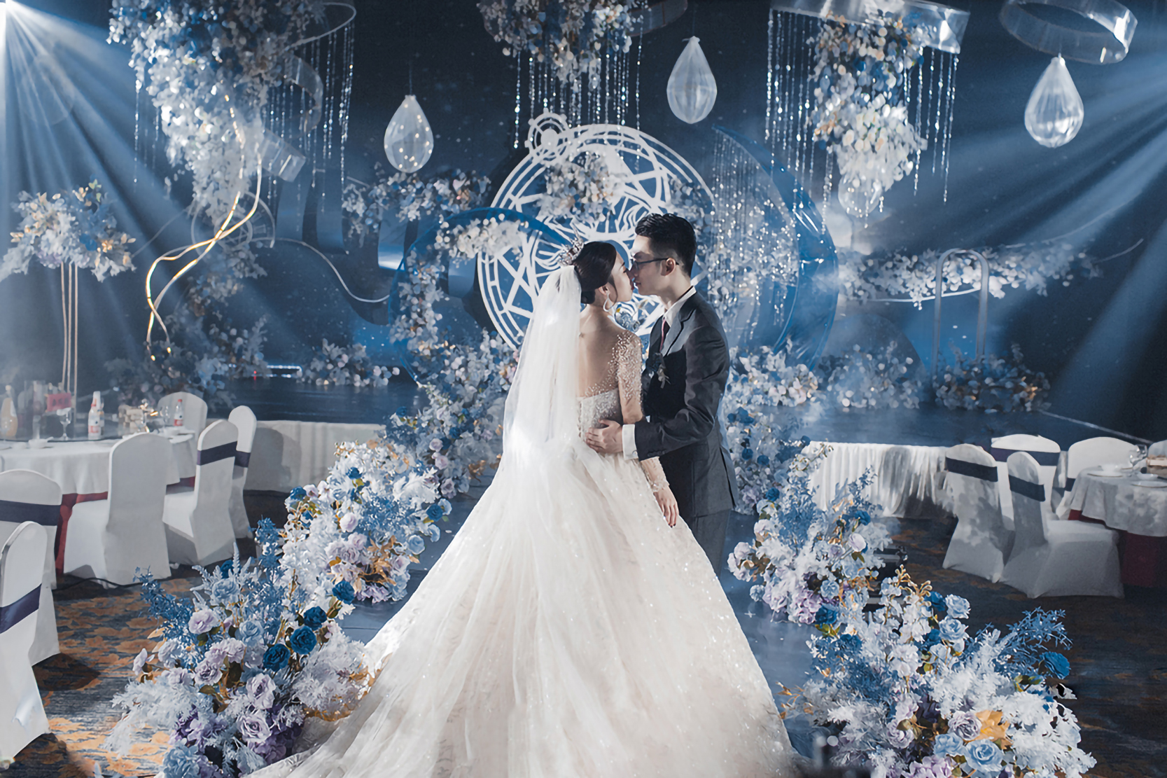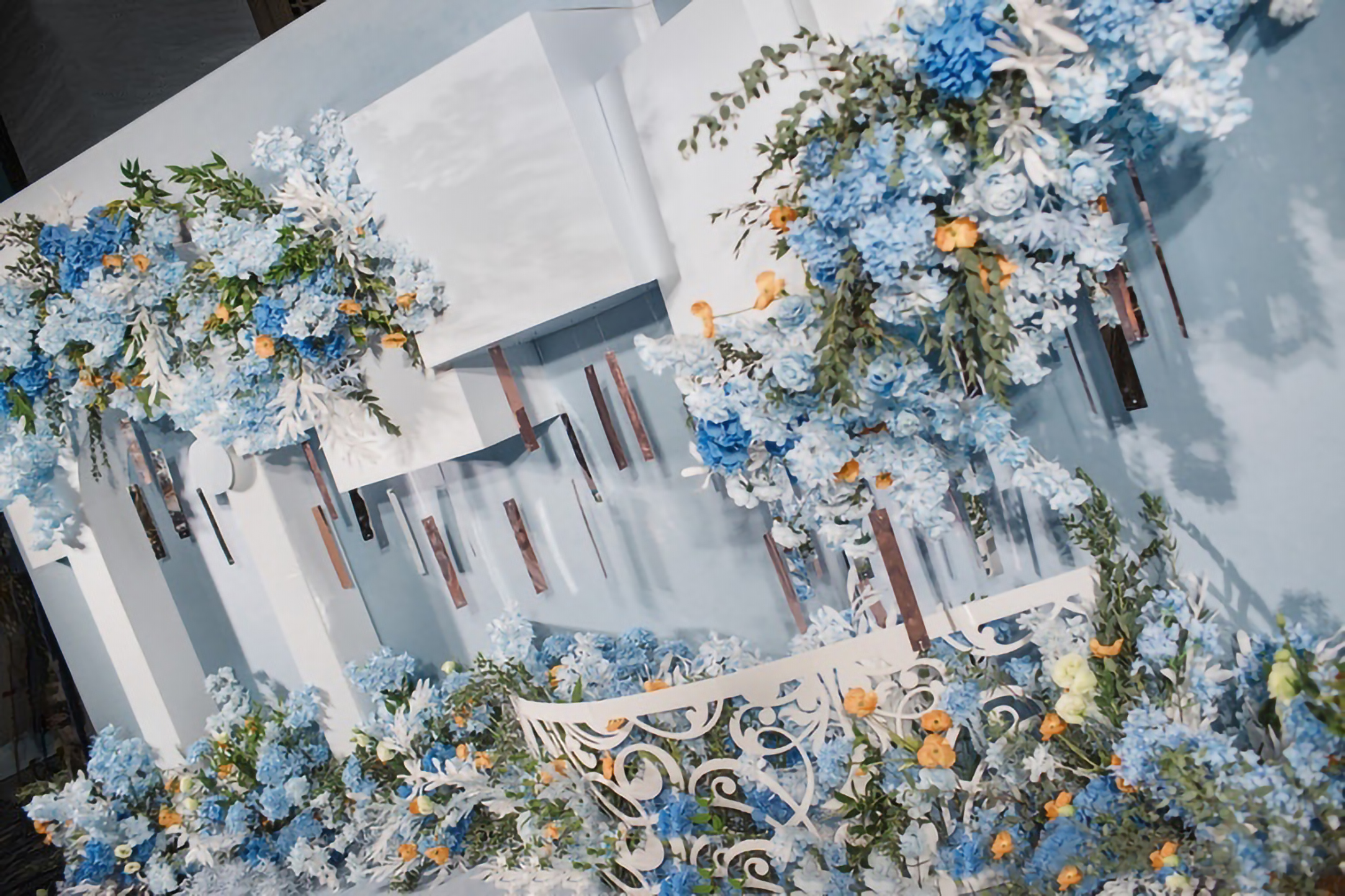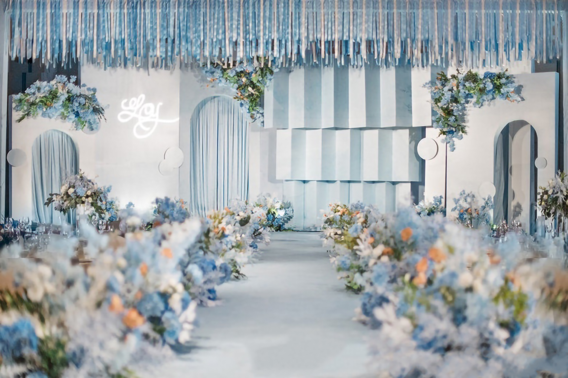 • 大地色的质朴沉稳,雾霾蓝的细腻柔和,精致高级,简约却也不失灵动~打造了这样一个简约但不简单,低饱和度的蓝色系婚礼真的很好看 ,这是梦想与自由的颜色 ,介于年少与成熟之间的颜色!