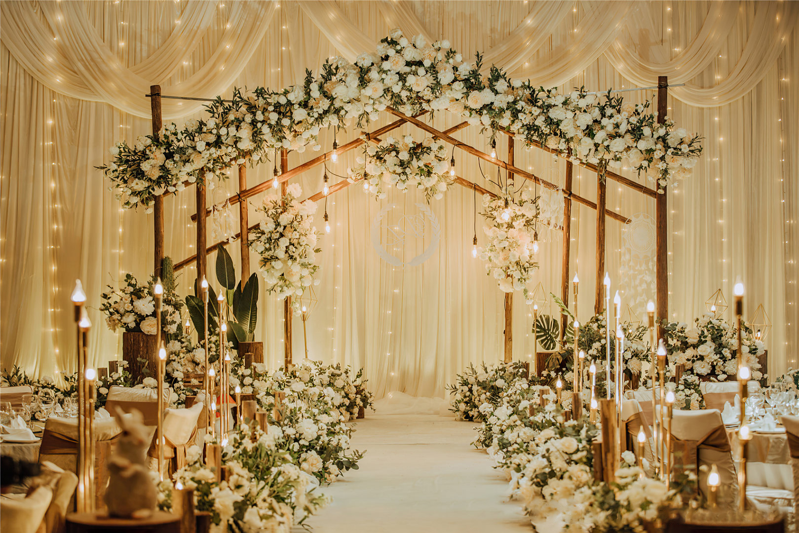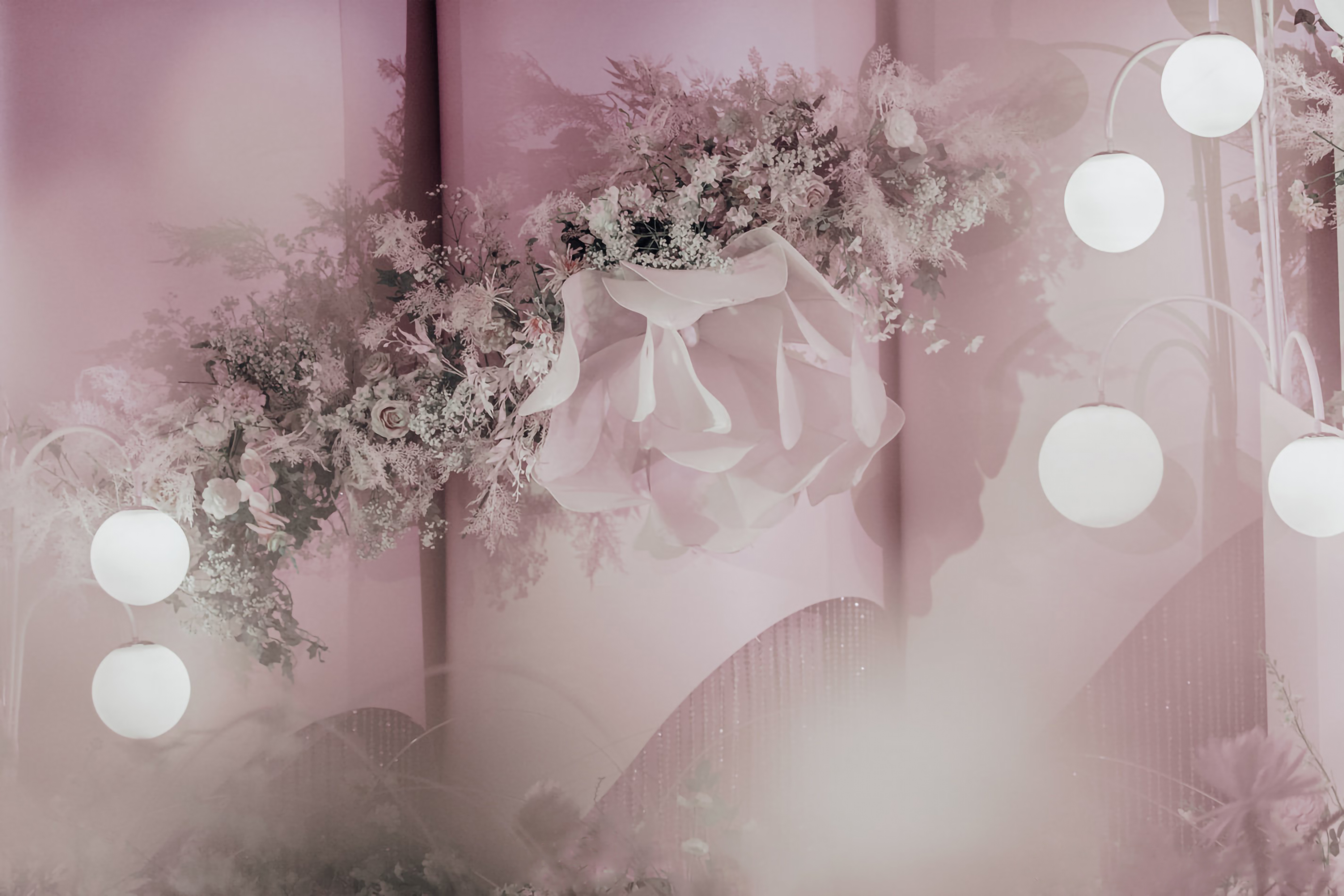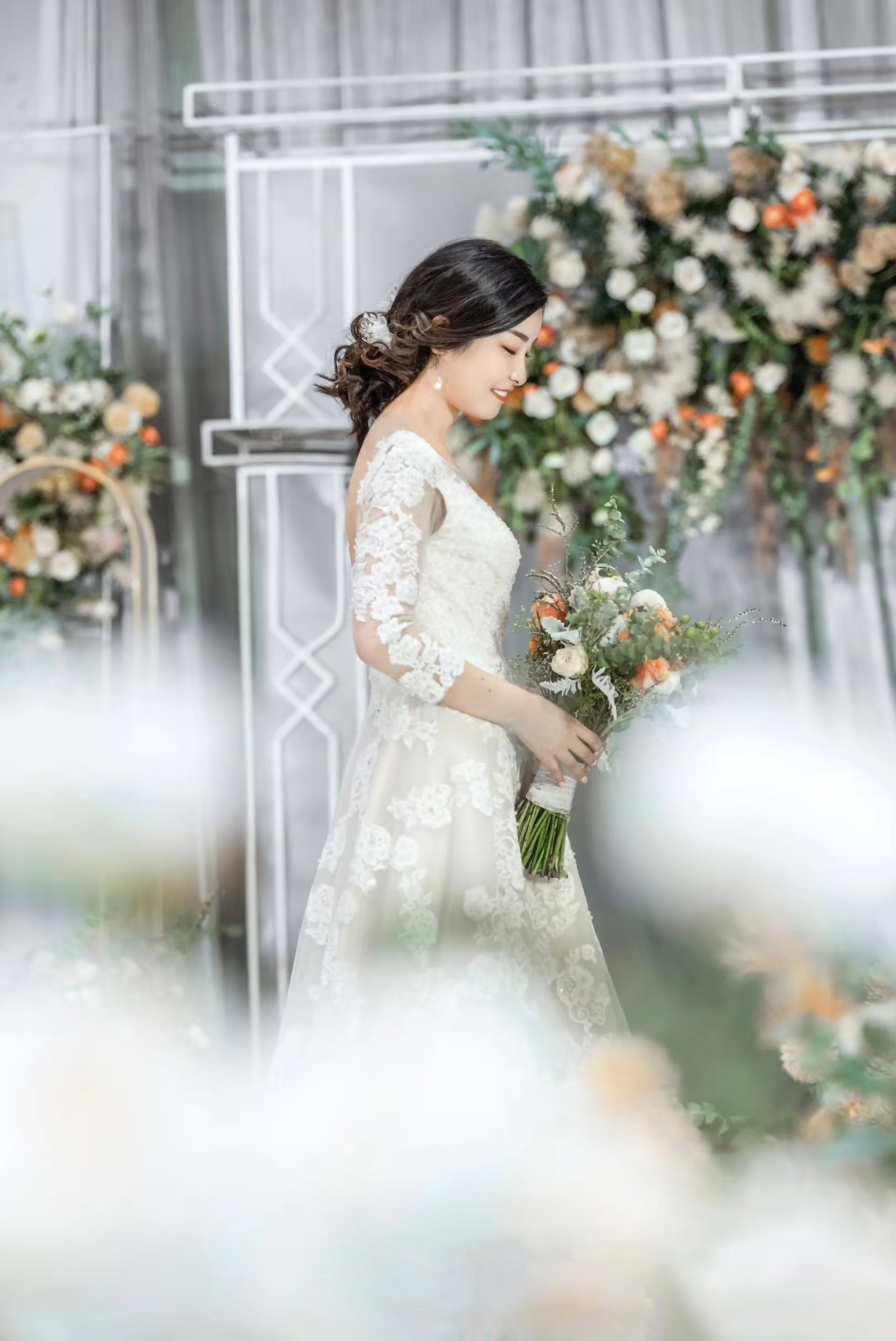 • 婚礼不需要多豪华隆重 理想的婚礼是家里长辈亲朋好友俱在 爱与祝福填满了整个空间 用一场浪漫的韩式婚礼 带大家回归到爱情 本身的纯粹和坚定上 幸福不扰 纯净不染 无需多余的色彩 白色赋予圣洁无暇 当曦光穿过云层 你于万花丛中走来 满目柔情