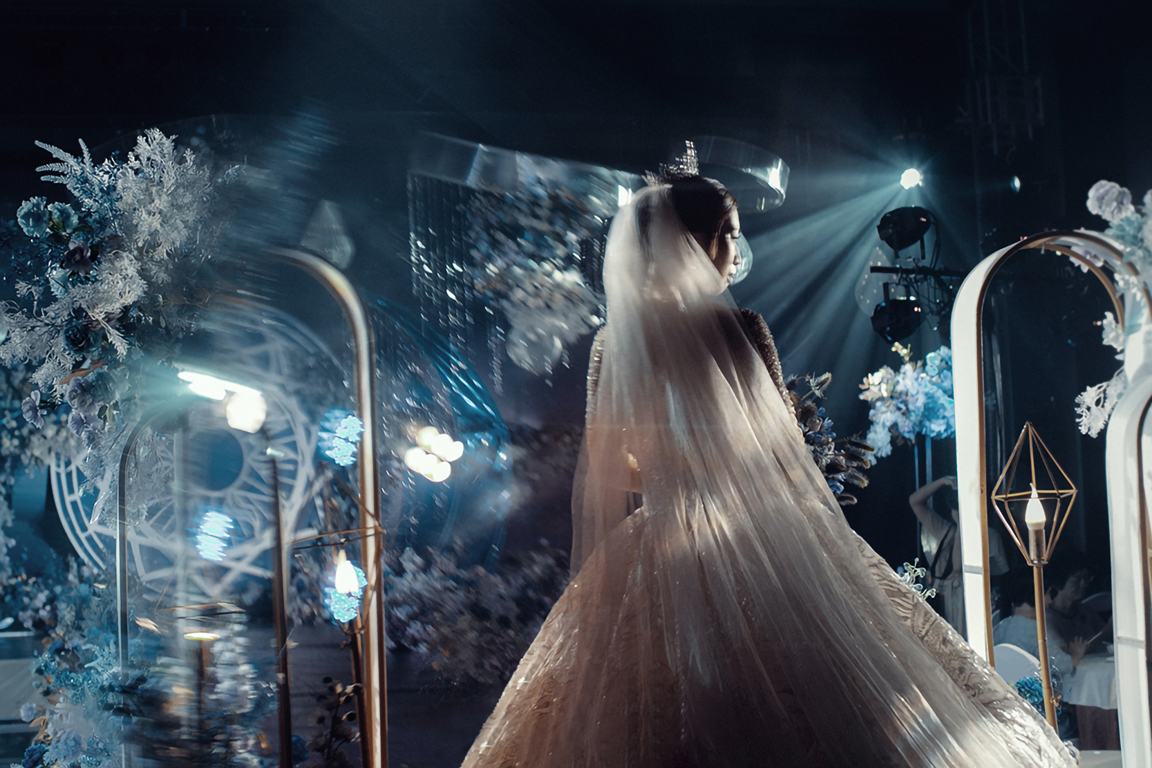 • 那一点天蓝优雅得恰到好处 那一抹淡香槟刚好衬托你的高贵 古老的誓约文,正等待你我共同诵读 那个万众瞩目的仪式,戒盒里是对她宠爱的承诺 那道爱的皇冠加冕,让你成为我生命中的女王
