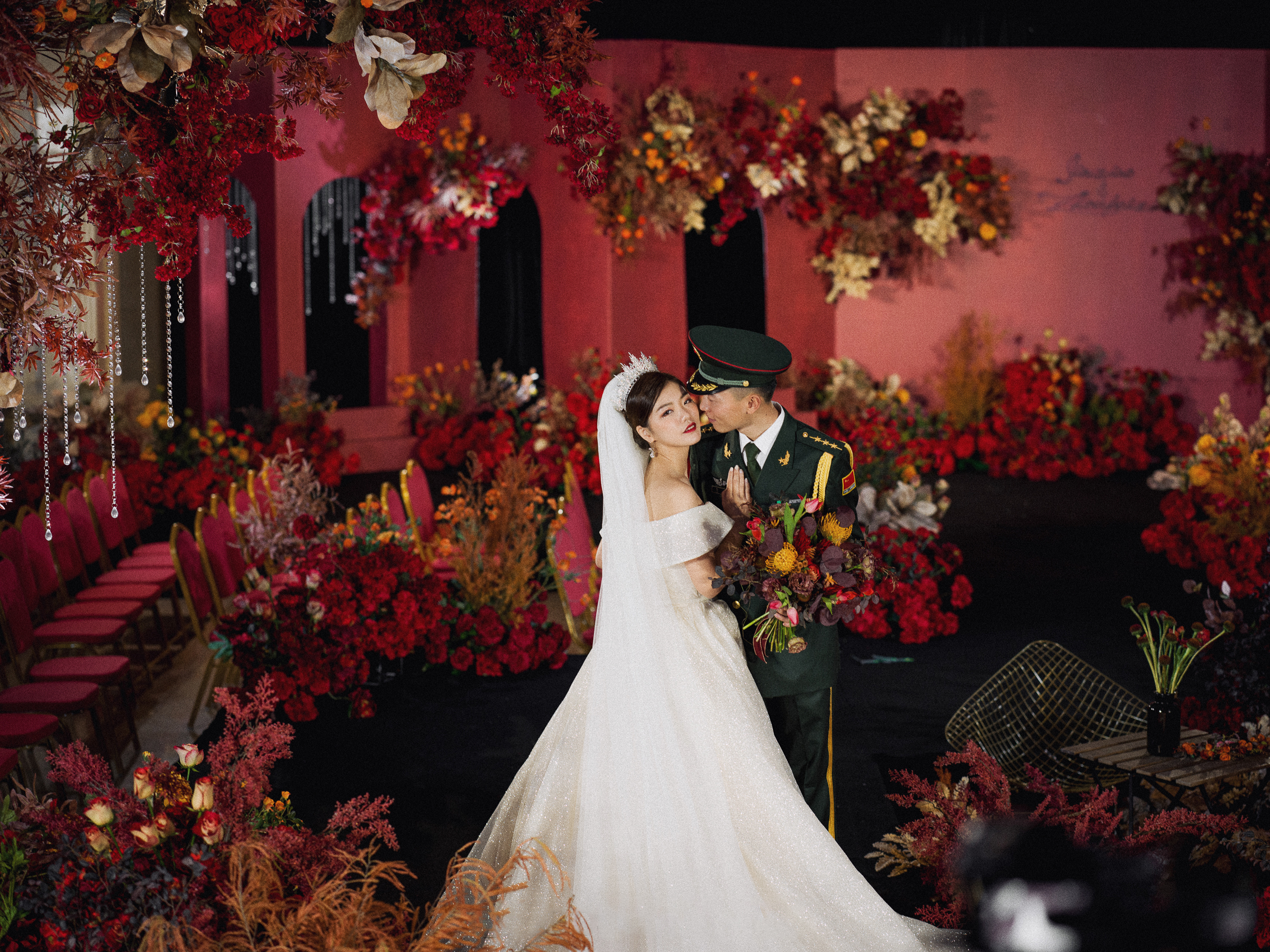 • 复古的红色婚礼,他站在那一头,默默等着她的到来,转身的一刻!