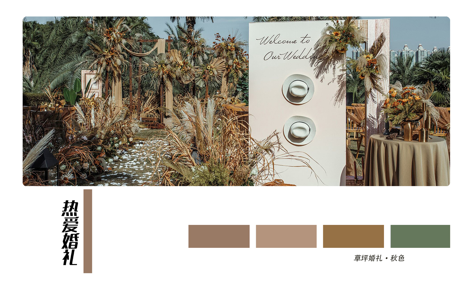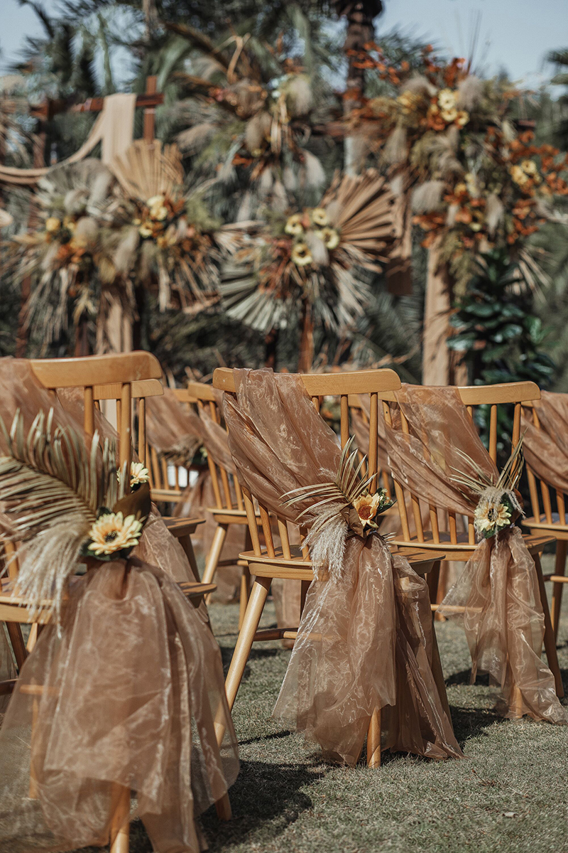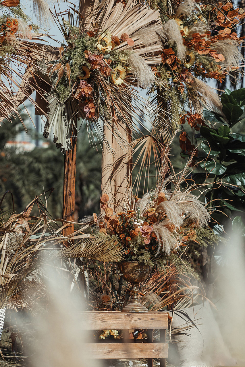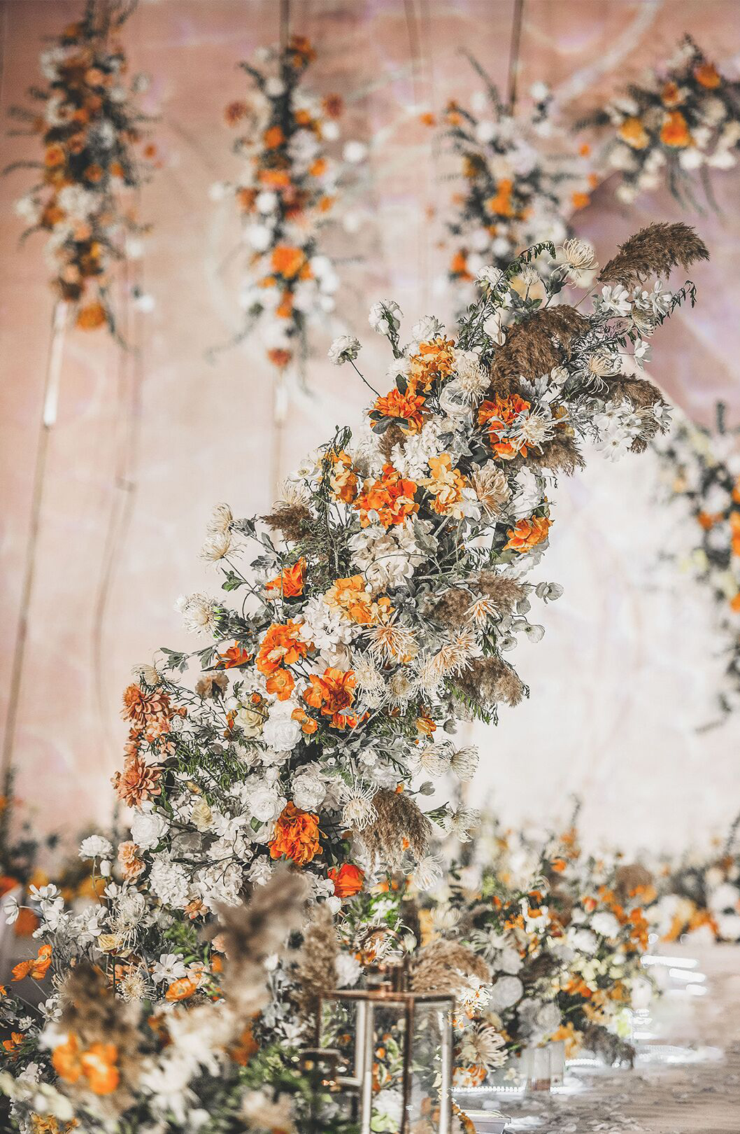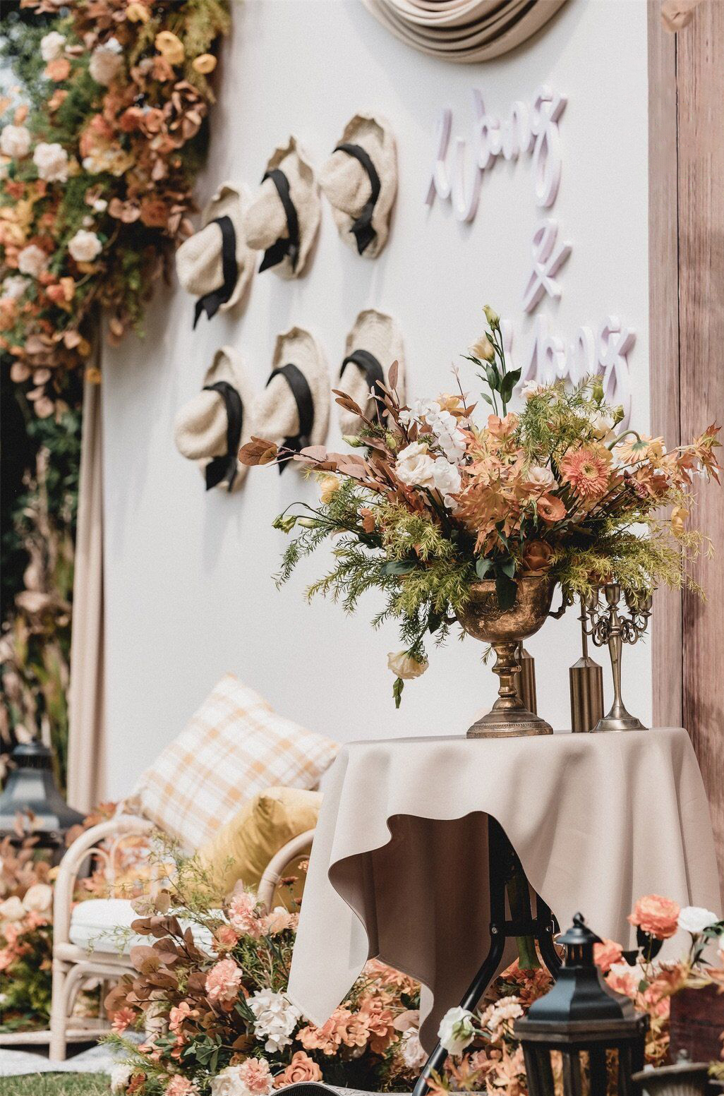 • 芦苇、鲜花与原木的搭配,就像随时赴一场和秋天的约会。聆听秋色花间的密语,感受诗意的曼妙与雅致,一场妙不可言的婚礼,让浪漫的情调尽情蔓延。