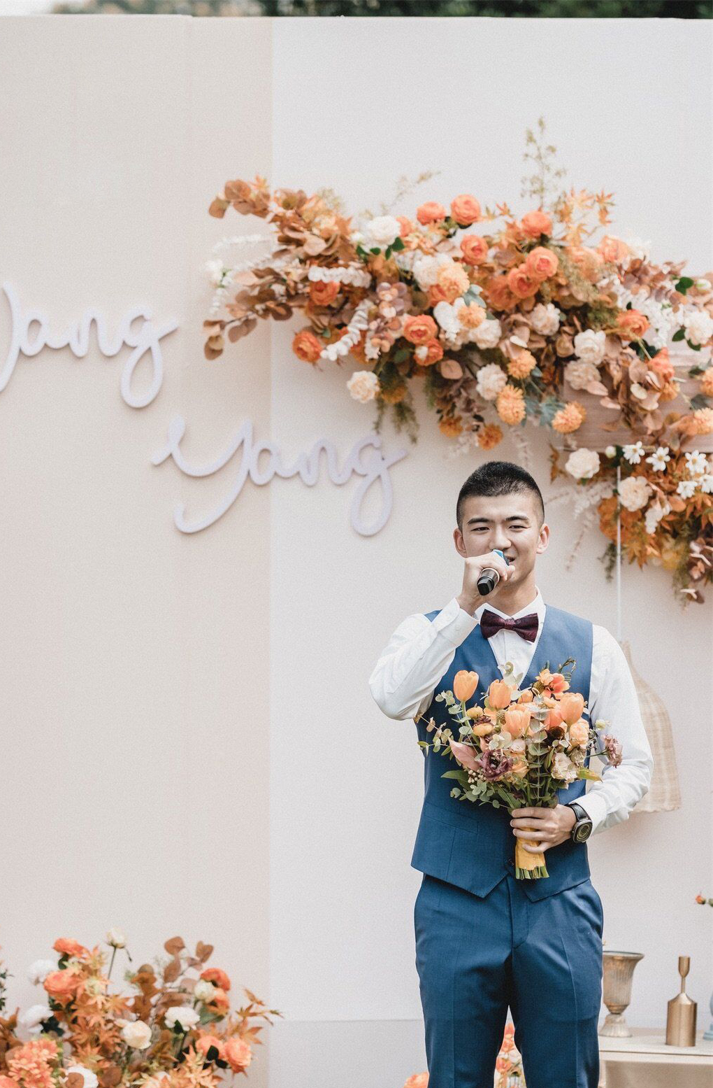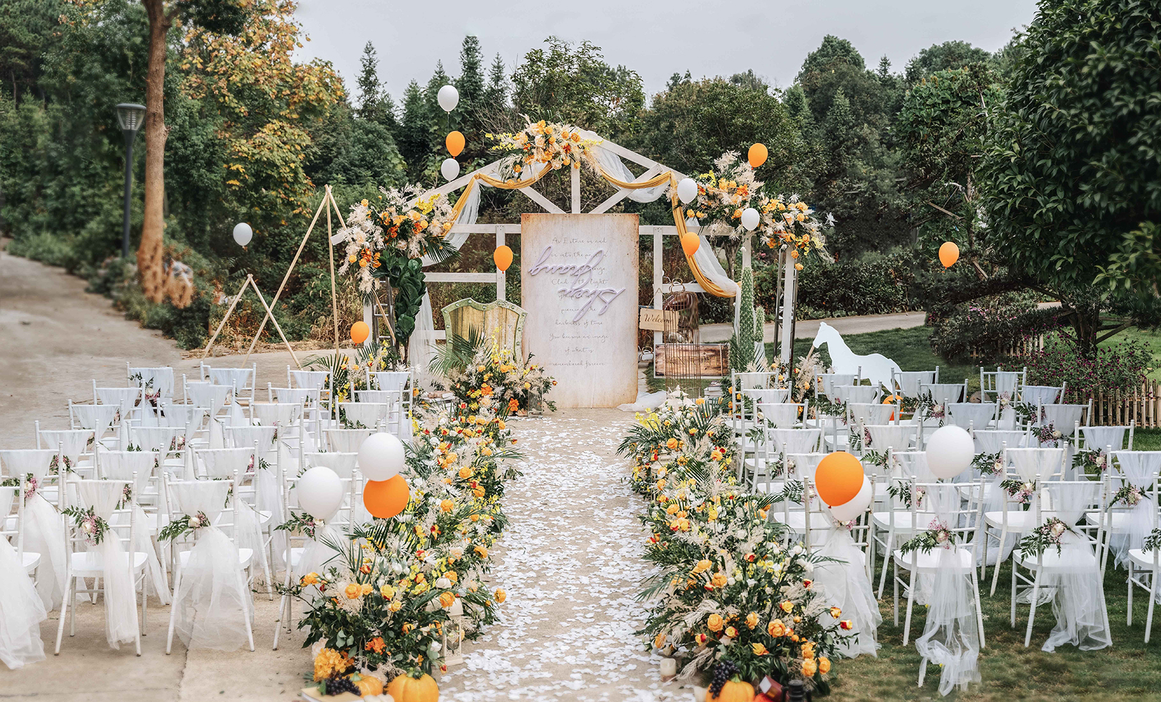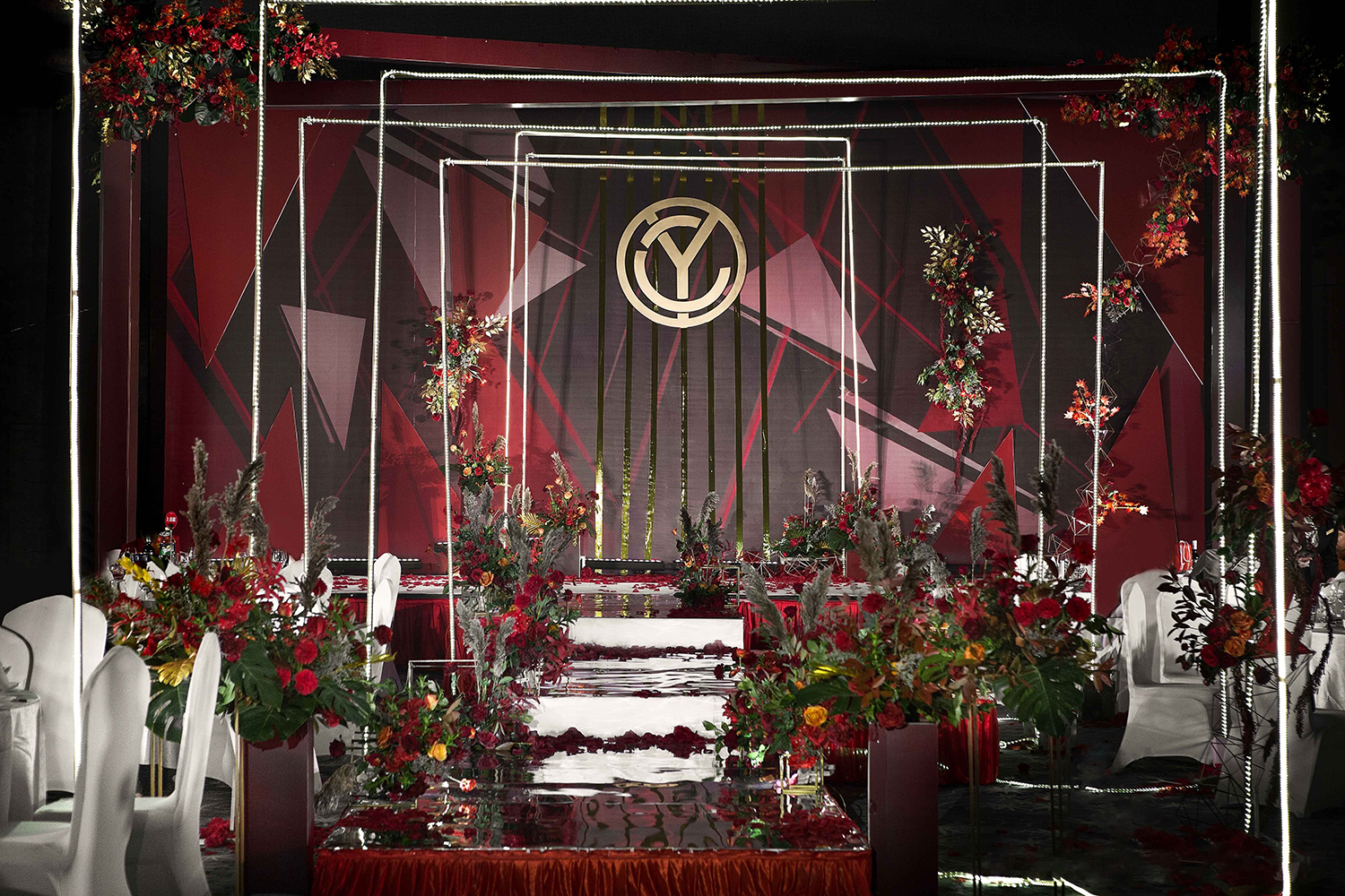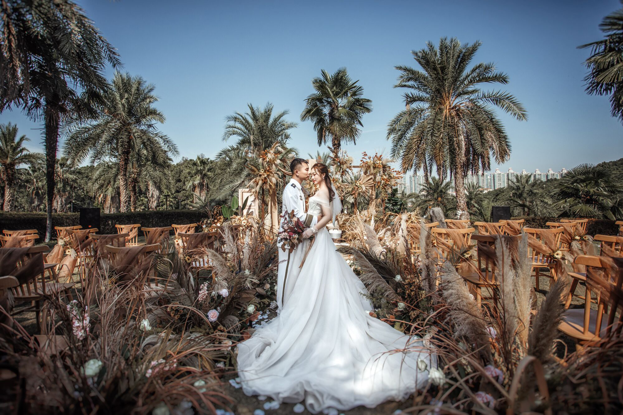 • 芦苇、鲜花与原木的搭配,就像随时赴一场和秋天的约会。聆听秋色花间的密语,感受诗意的曼妙与雅致,一场妙不可言的婚礼,让浪漫的情调尽情蔓延。