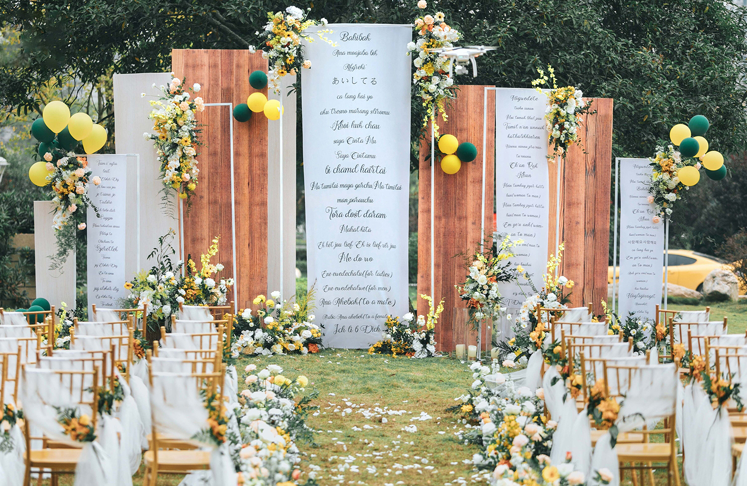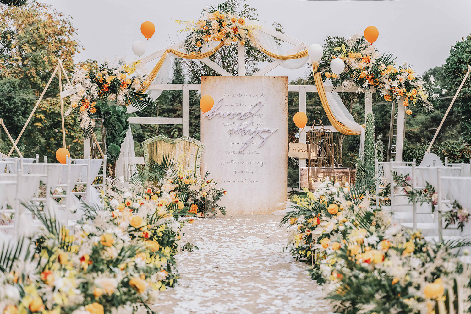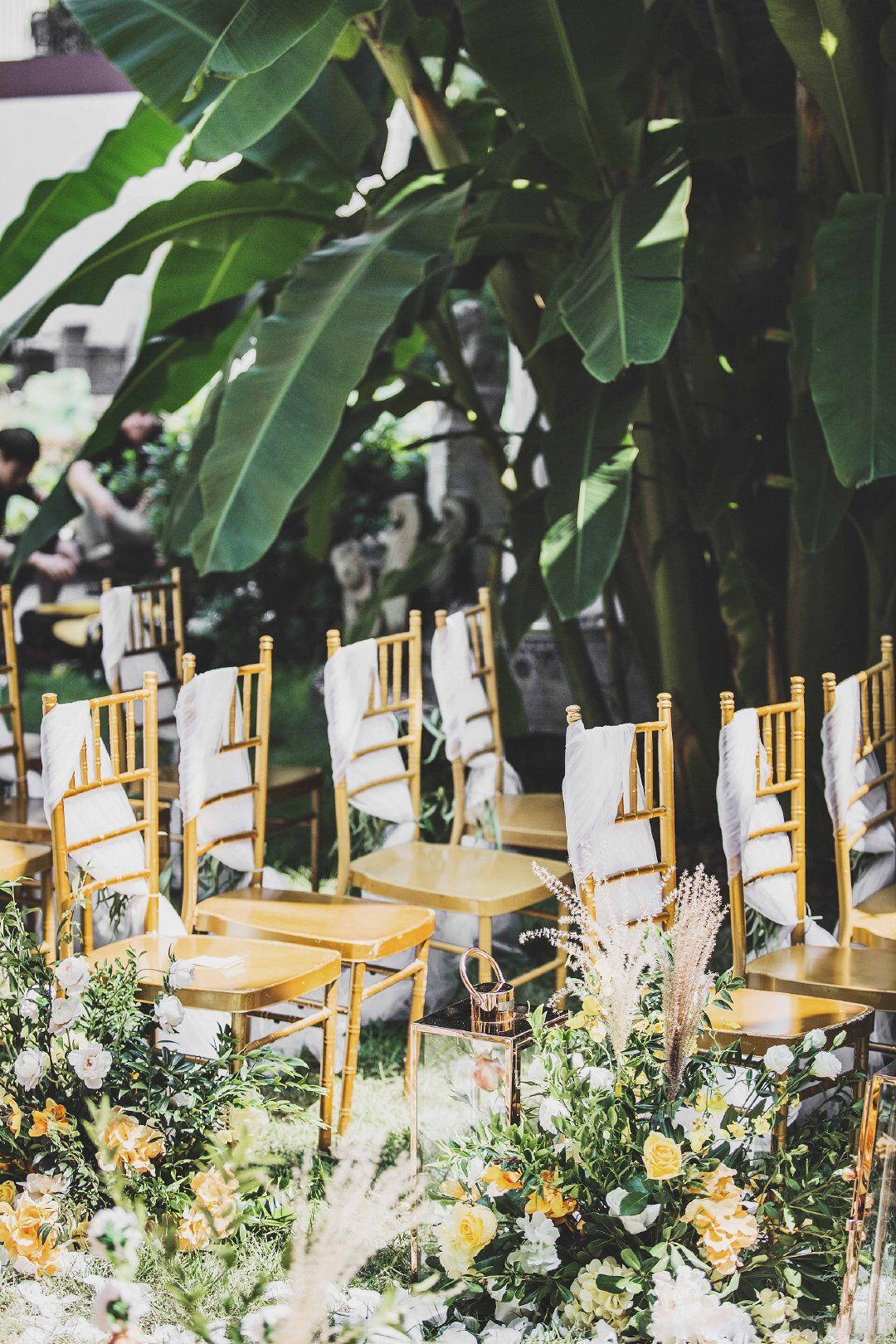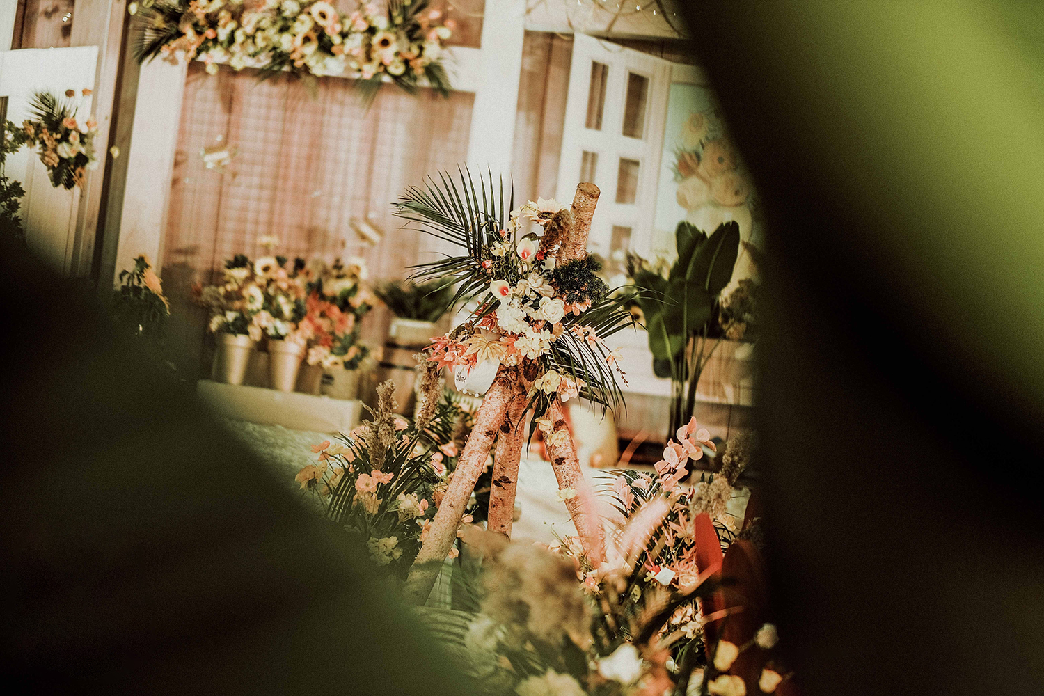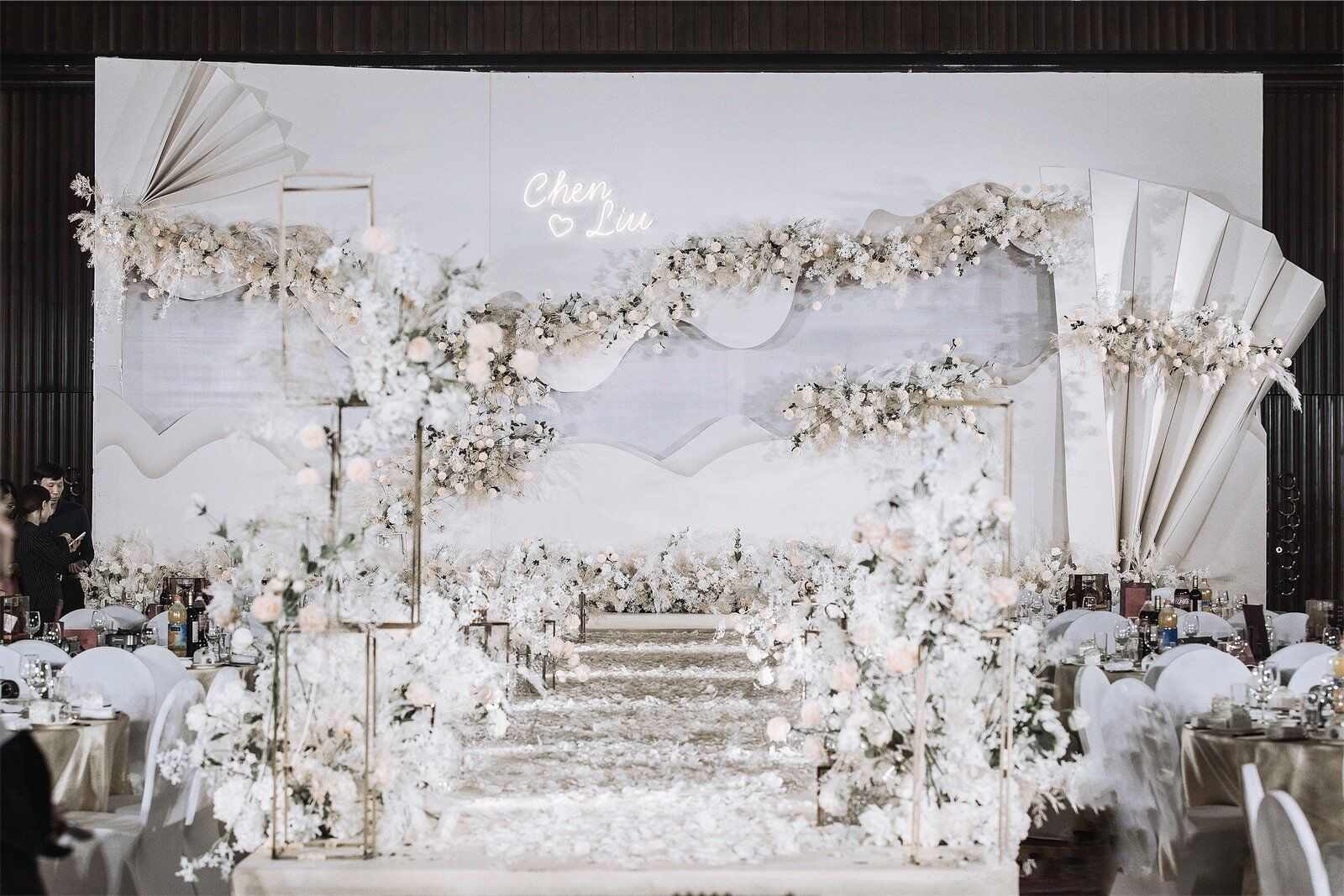• 芦苇、鲜花与原木的搭配,就像随时赴一场和秋天的约会。聆听秋色花间的密语,感受诗意的曼妙与雅致,一场妙不可言的婚礼,让浪漫的情调尽情蔓延。