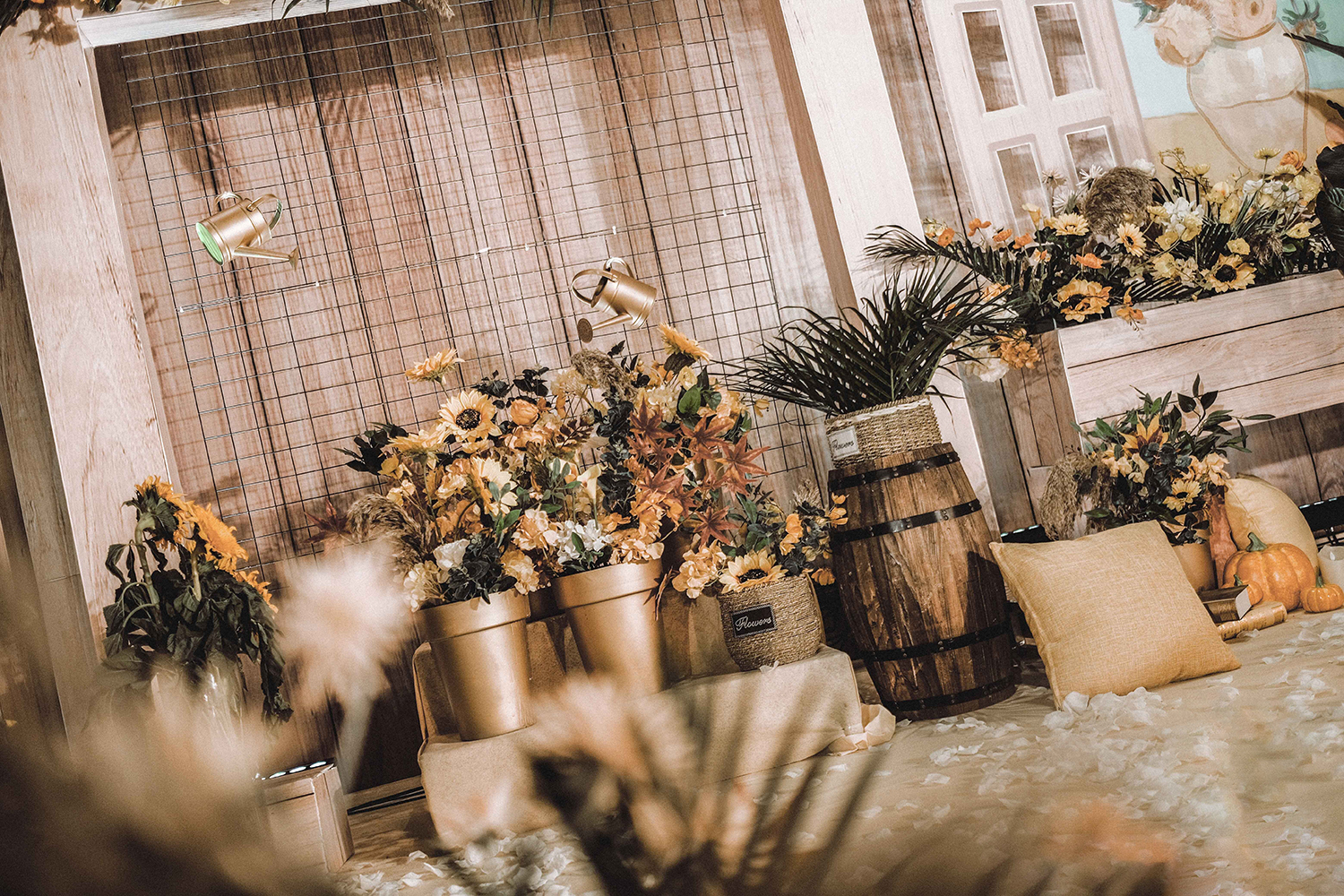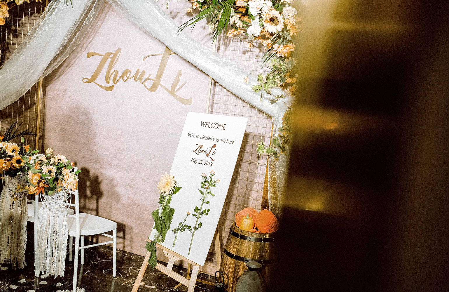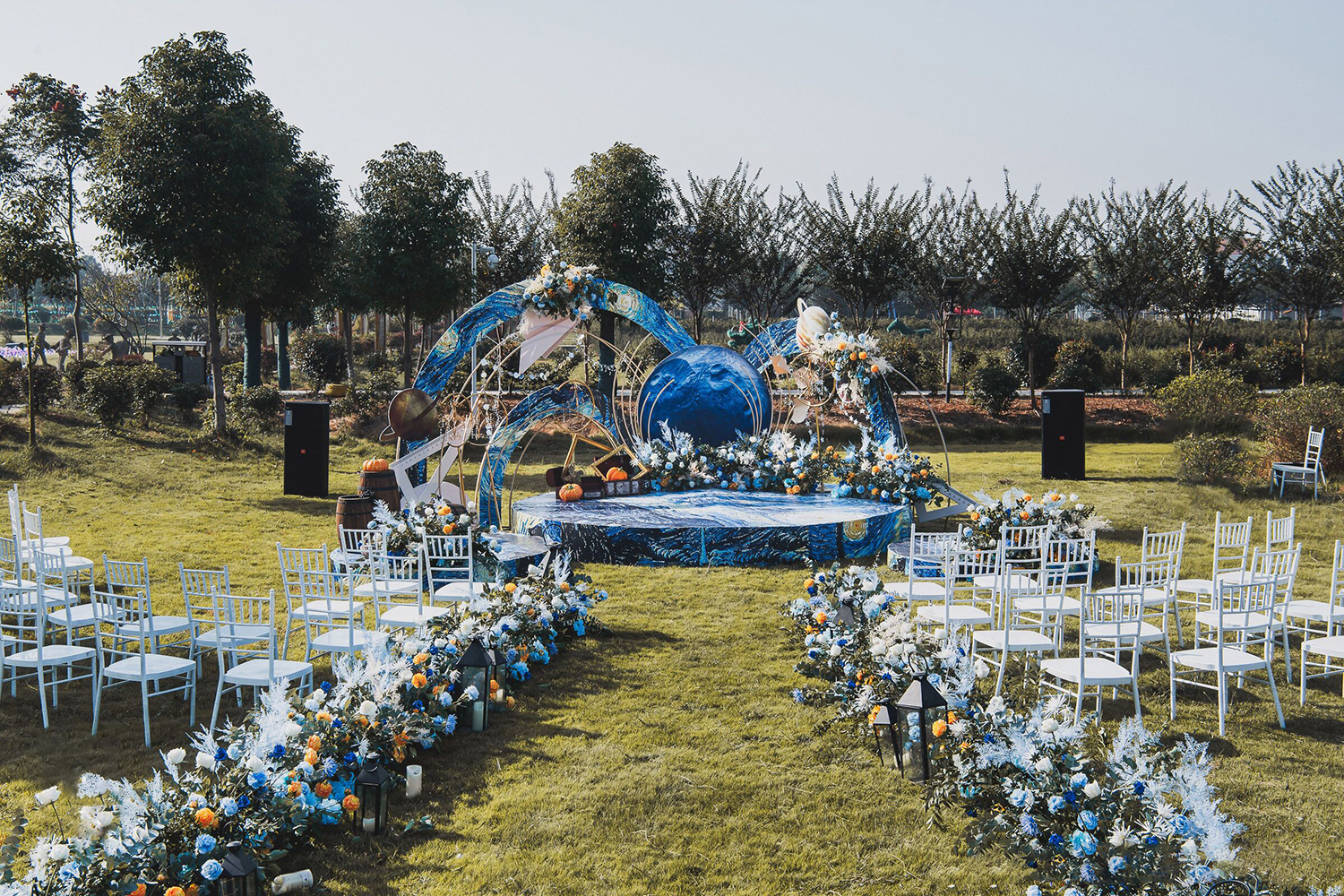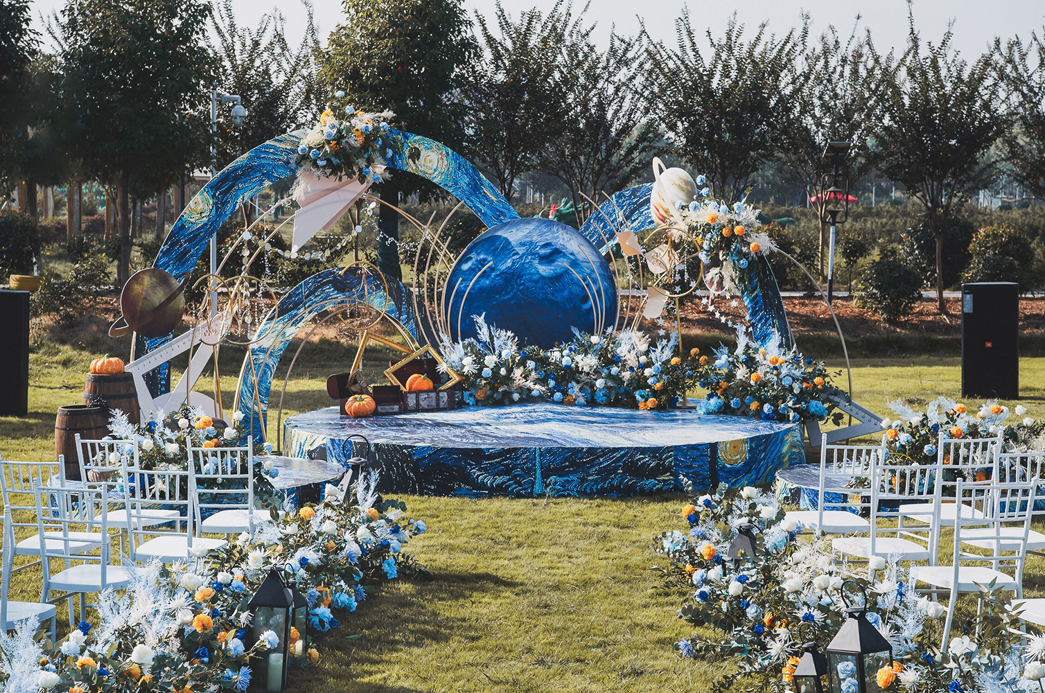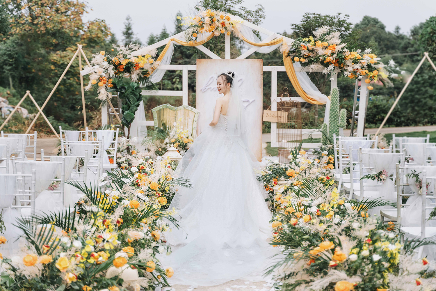 • 芦苇、鲜花与原木的搭配,就像随时赴一场和秋天的约会。聆听秋色花间的密语,感受诗意的曼妙与雅致,一场妙不可言的婚礼,让浪漫的情调尽情蔓延。