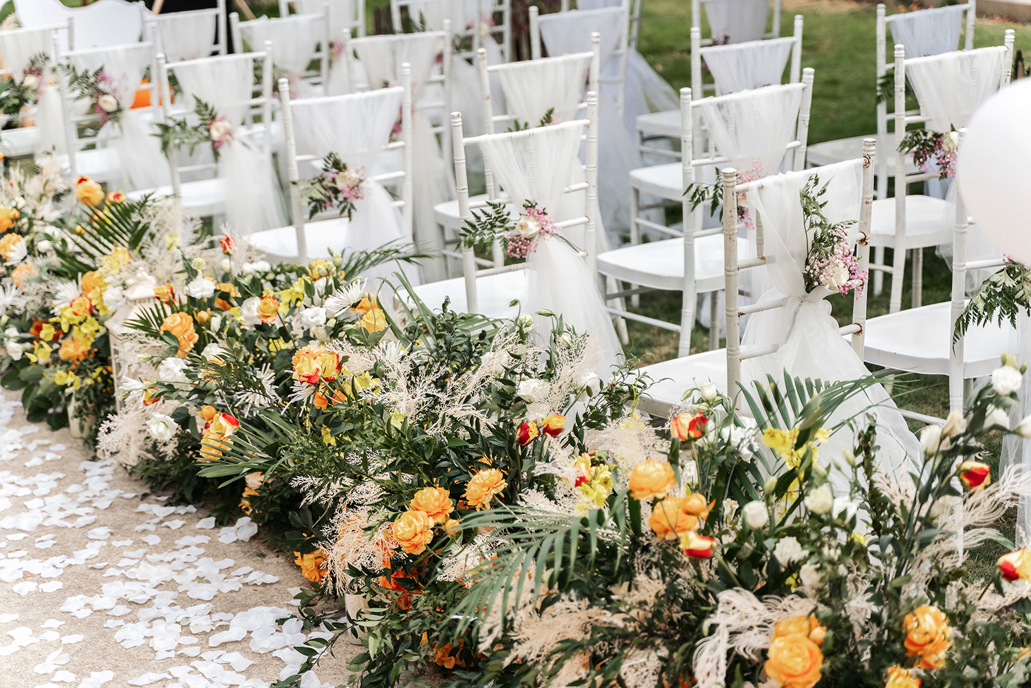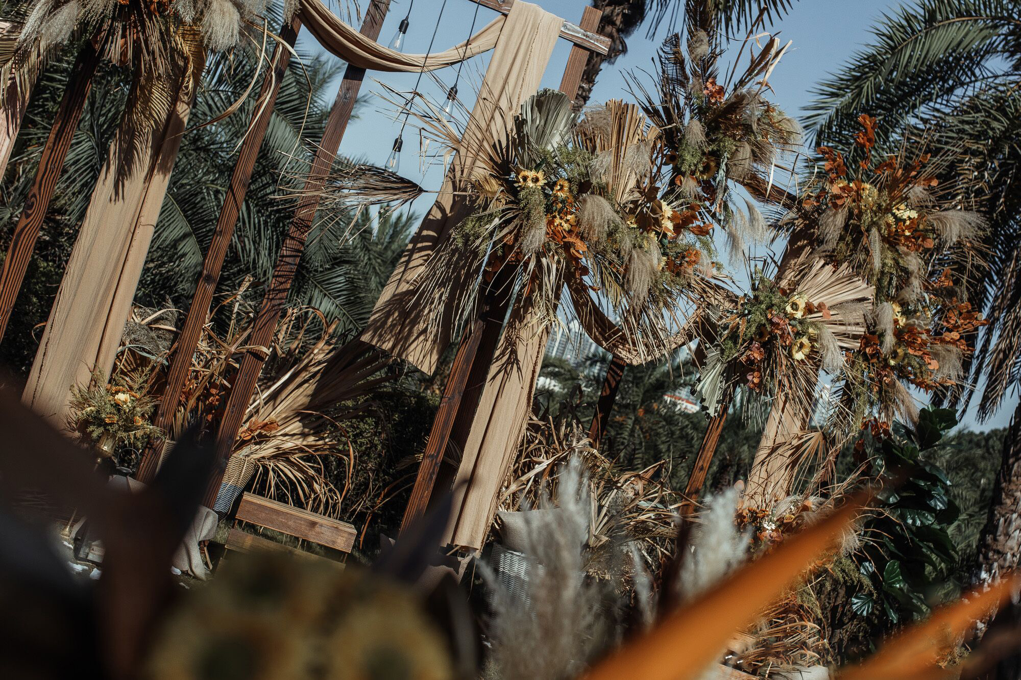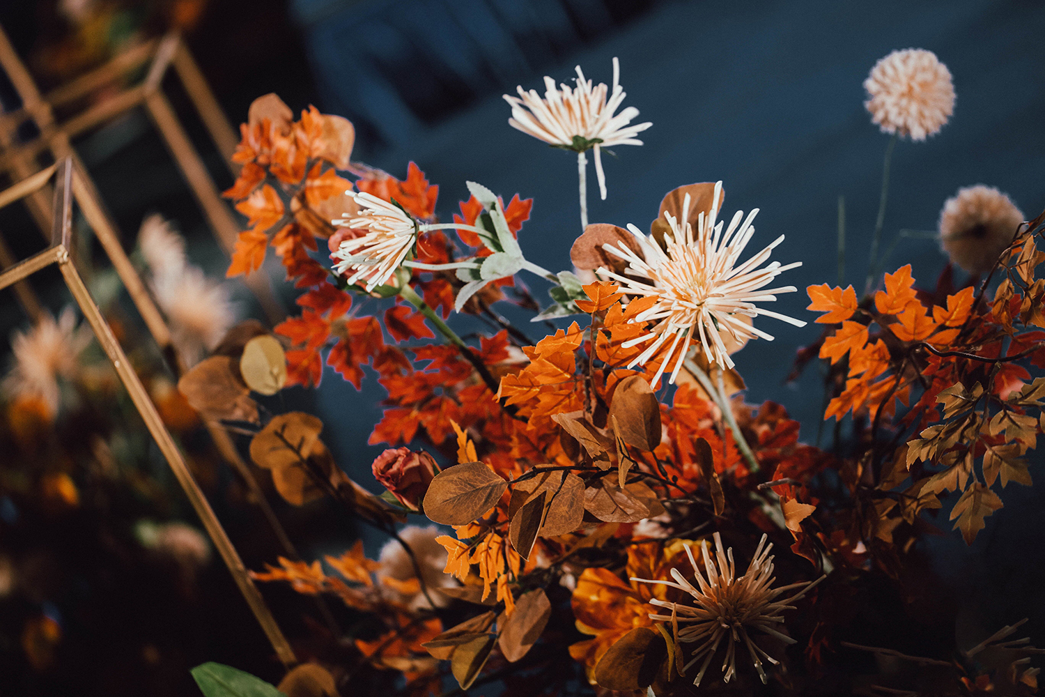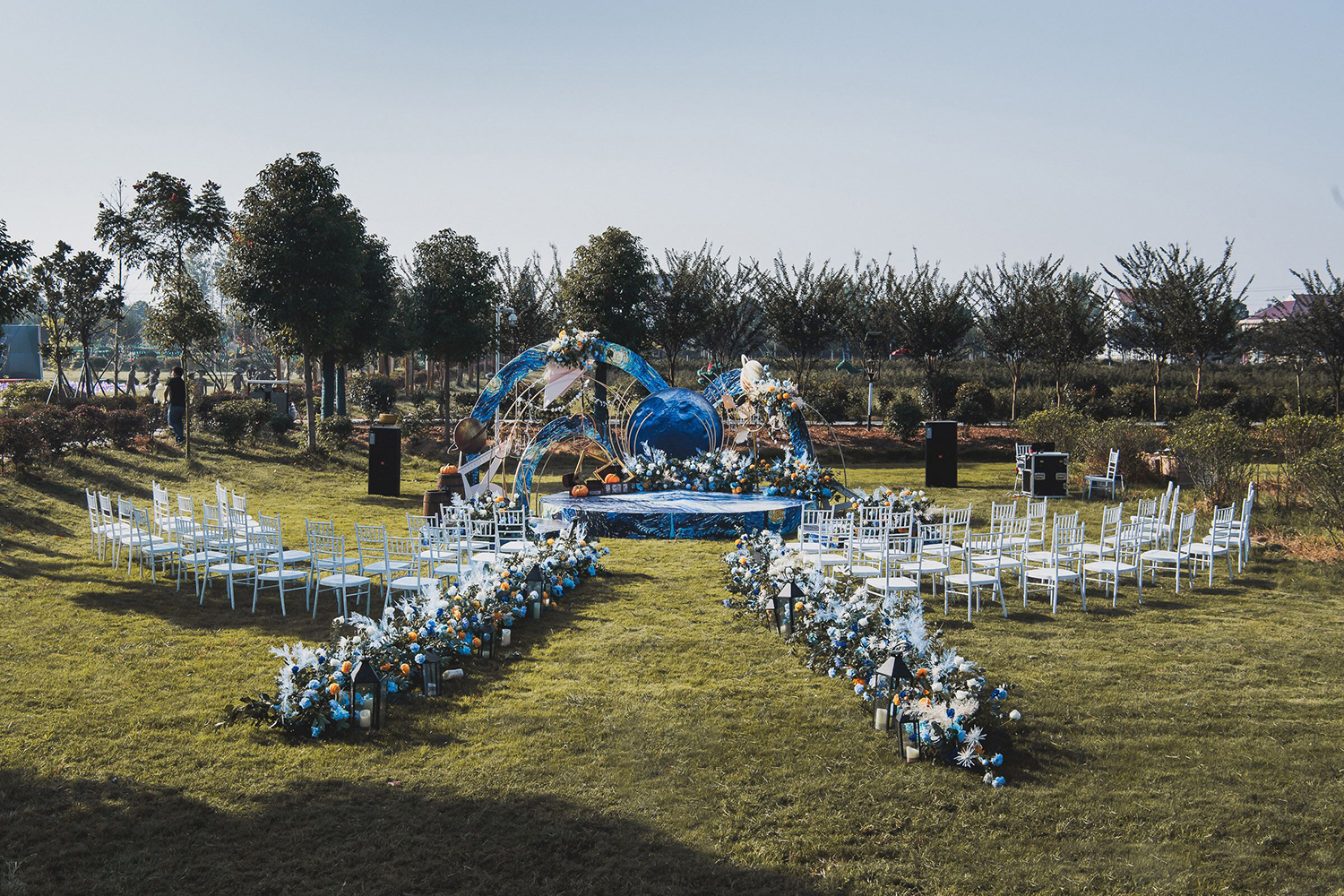 • 芦苇、鲜花与原木的搭配,就像随时赴一场和秋天的约会。聆听秋色花间的密语,感受诗意的曼妙与雅致,一场妙不可言的婚礼,让浪漫的情调尽情蔓延。