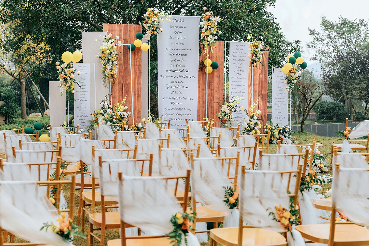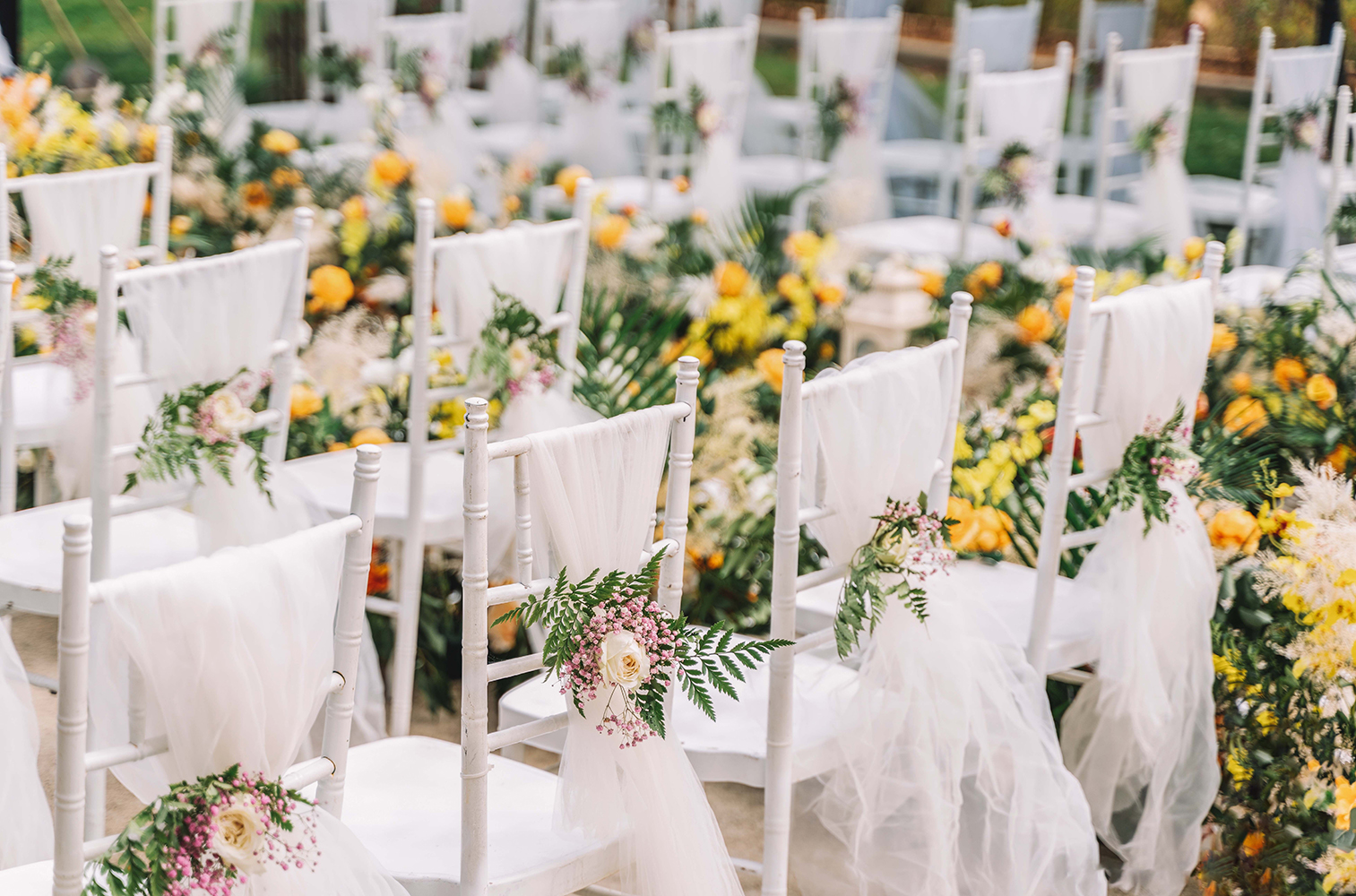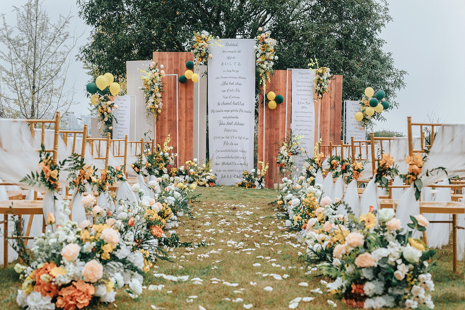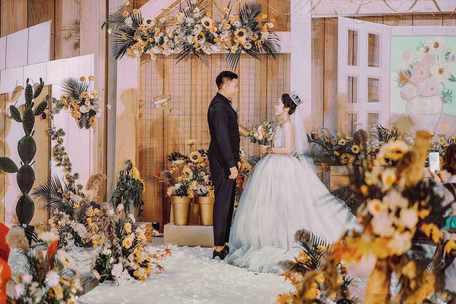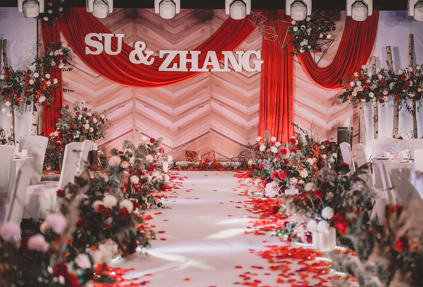 • 芦苇、鲜花与原木的搭配,就像随时赴一场和秋天的约会。聆听秋色花间的密语,感受诗意的曼妙与雅致,一场妙不可言的婚礼,让浪漫的情调尽情蔓延。