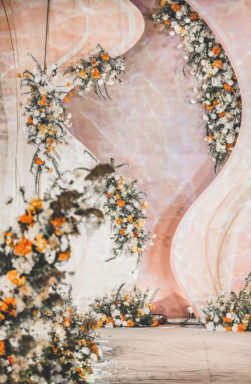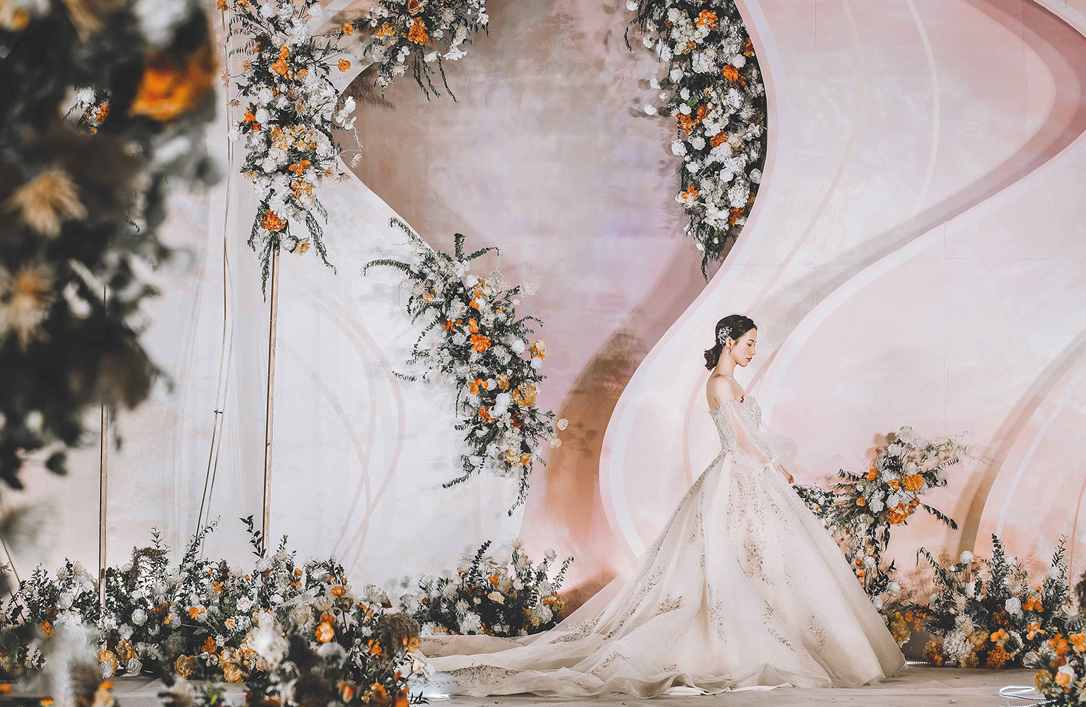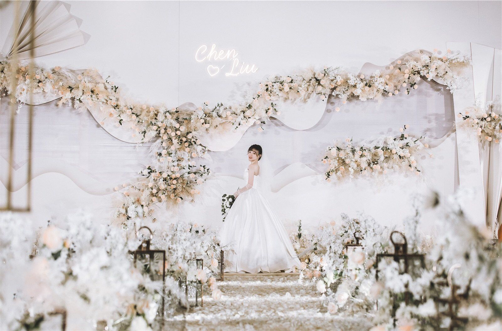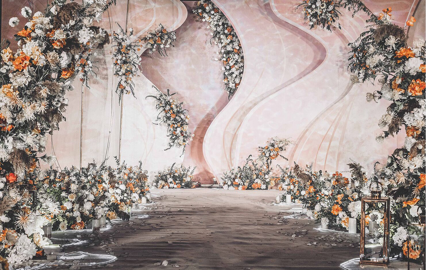 • 以铁艺薄纱的层叠展现山峦变幻,以蜿蜒曲折的线条勾勒溪水长流。整场婚礼营造不繁杂而又灵动婉约的画面,仿佛置身于珊瑚礁石间,柔软、沉迷、平静..