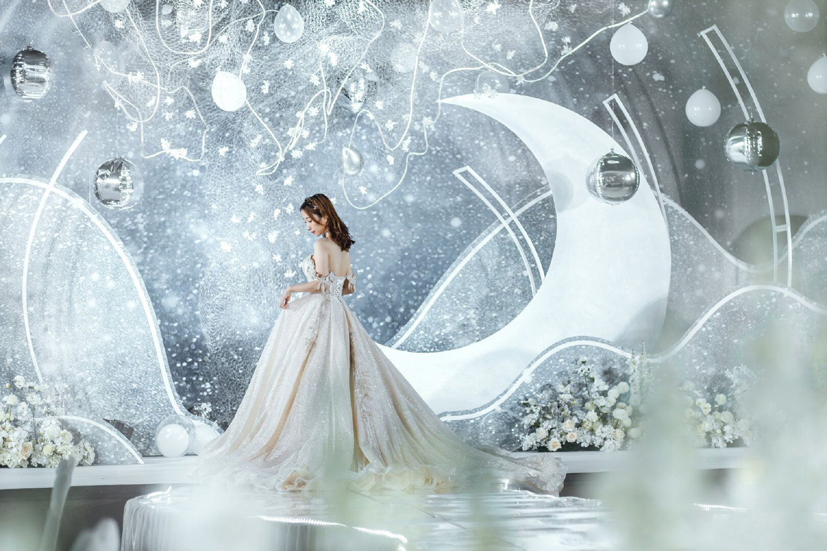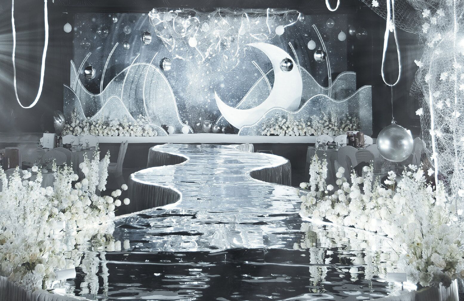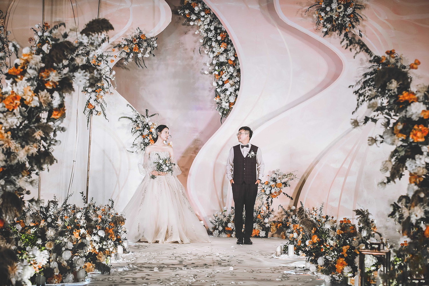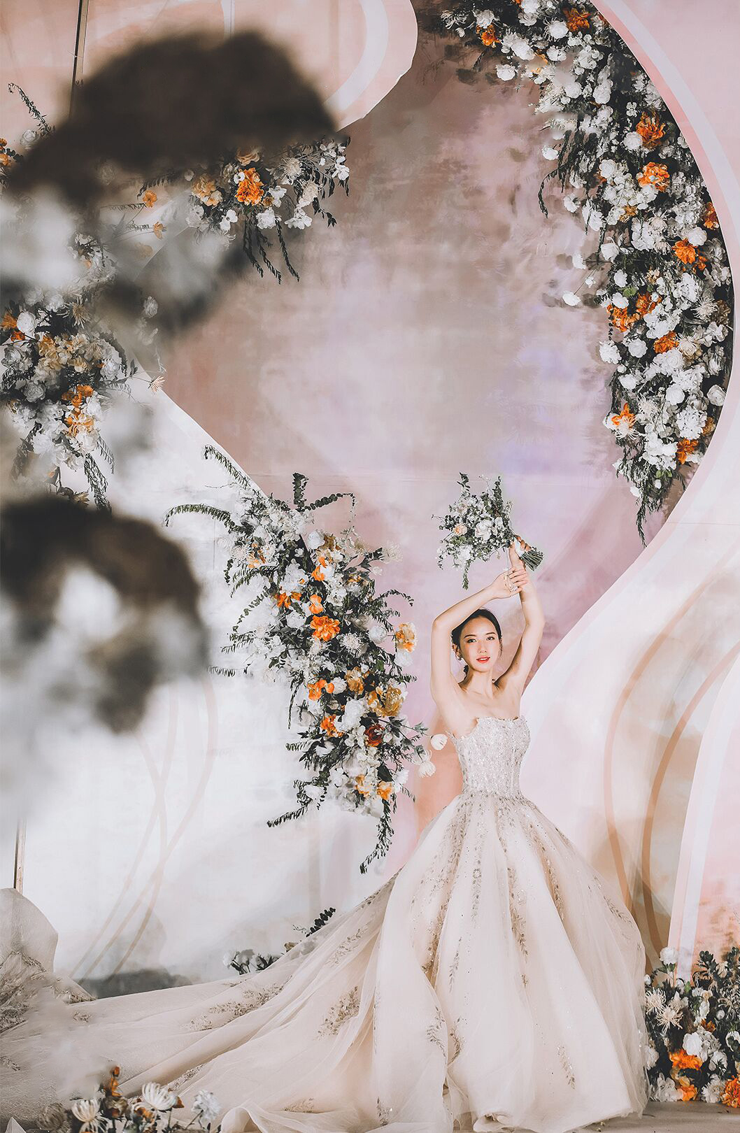 • 以铁艺薄纱的层叠展现山峦变幻,以蜿蜒曲折的线条勾勒溪水长流。整场婚礼营造不繁杂而又灵动婉约的画面,仿佛置身于珊瑚礁石间,柔软、沉迷、平静..