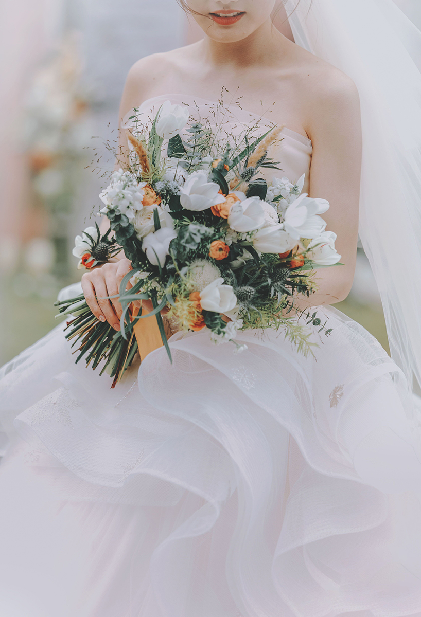 • 从初次在巴士的相遇,到异地的坚持守候,再到这个初夏,嫁给你,成为你的妻子。 这一天,花叶穿透树梢,空气清甜,就像在被梦吻过的天空下,我们牵手走着,交织涌动如清风溪流。 ————Love the bus