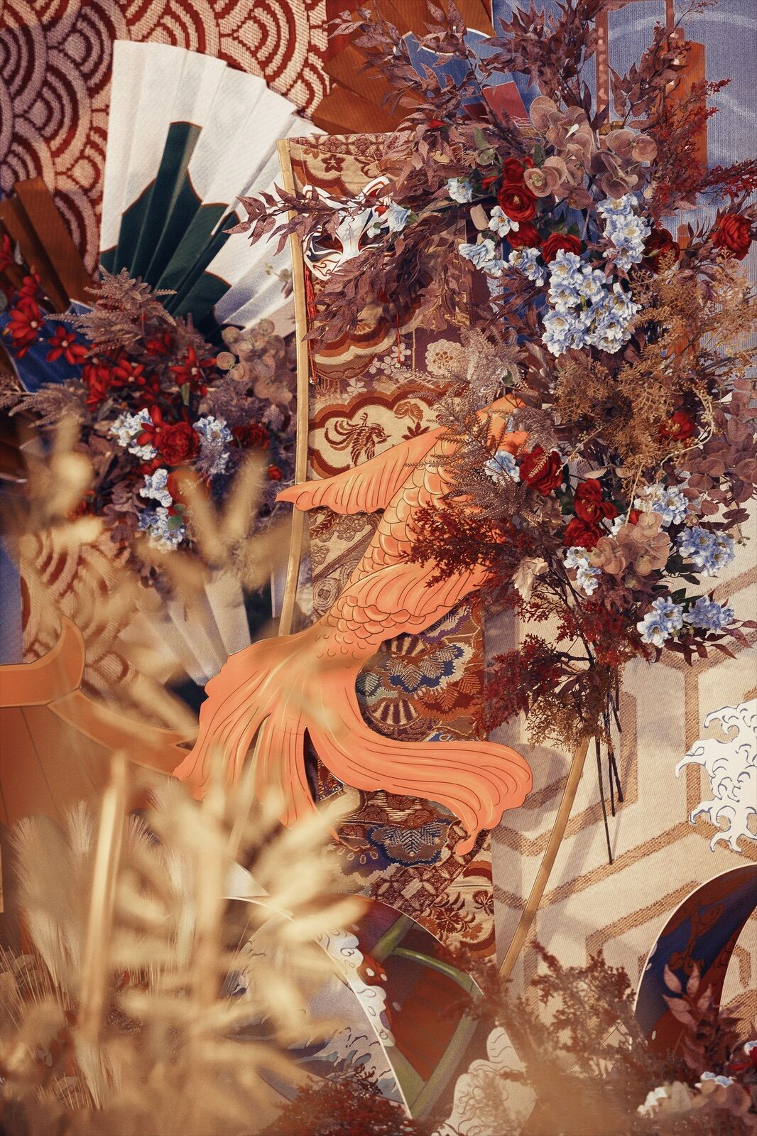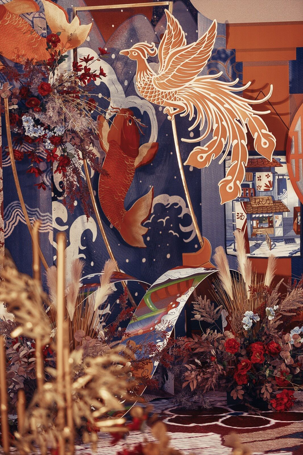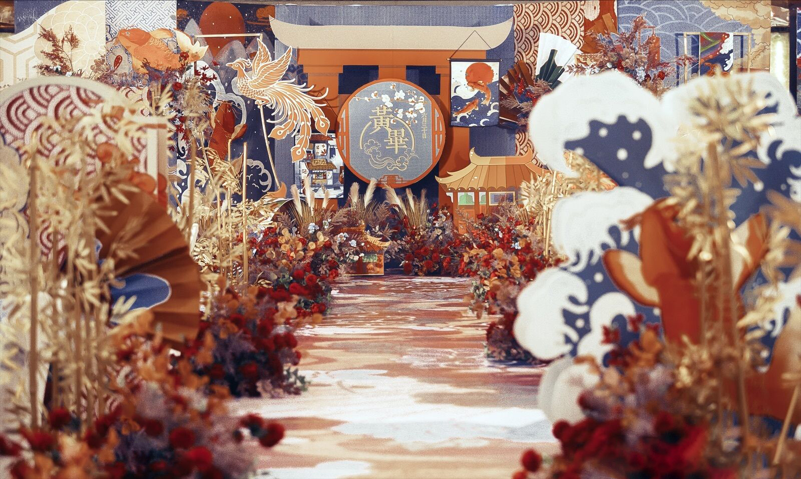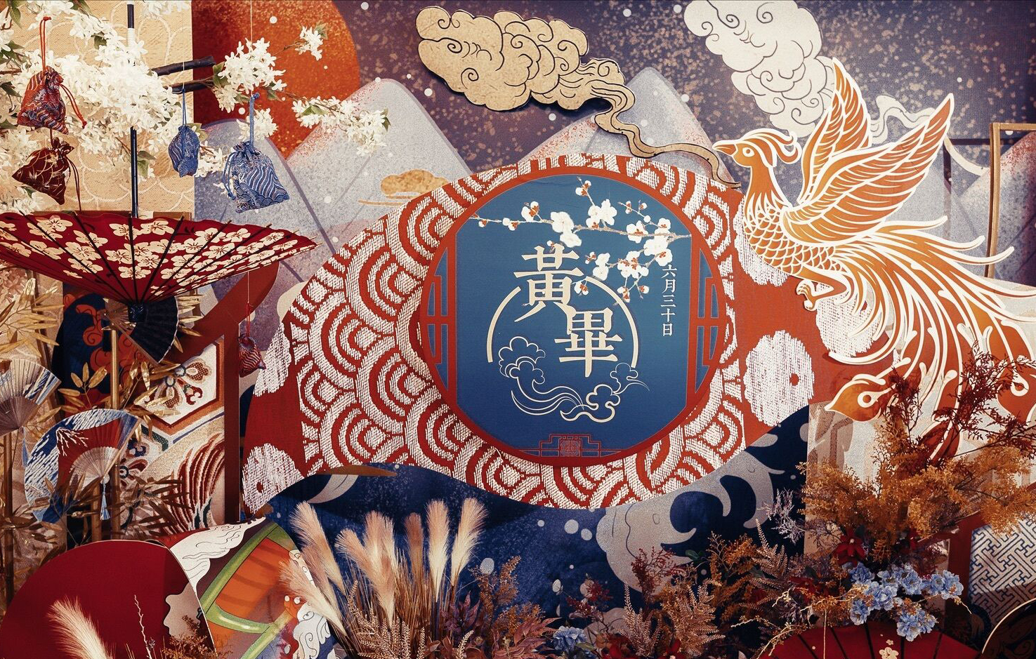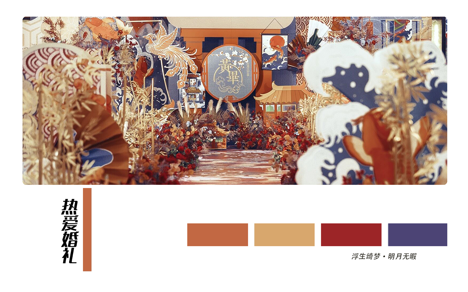 • 一场绚丽的浮世绘风婚礼 浮生绮梦,色彩明艳的和风婚礼 明月无暇,清风岁月陪嫁 营造出视觉冲击的东方幻境