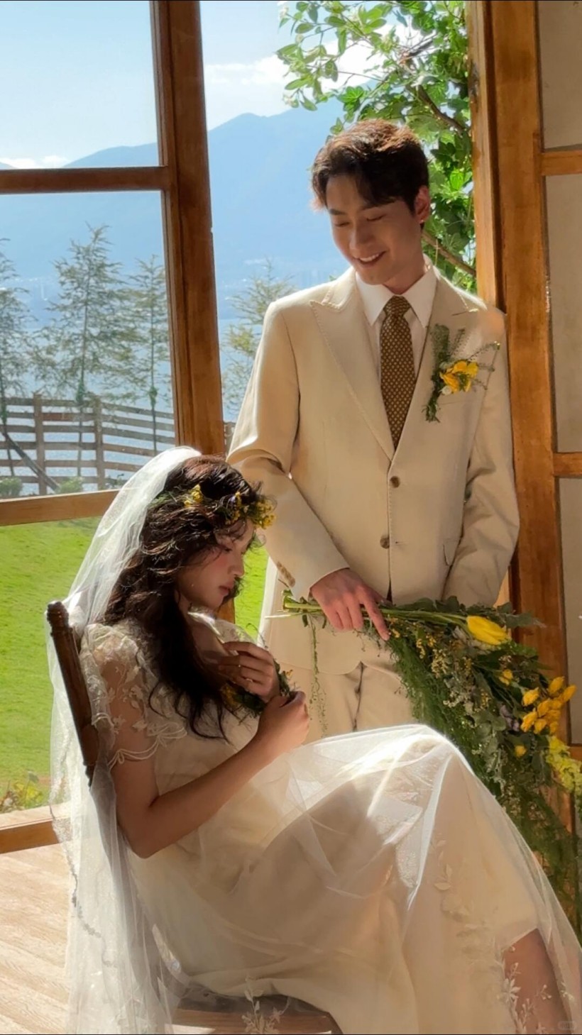 外景地选得超美,摄影师很会利用环境,把自然风光和我们的互动完美融合,画面清新又浪漫~