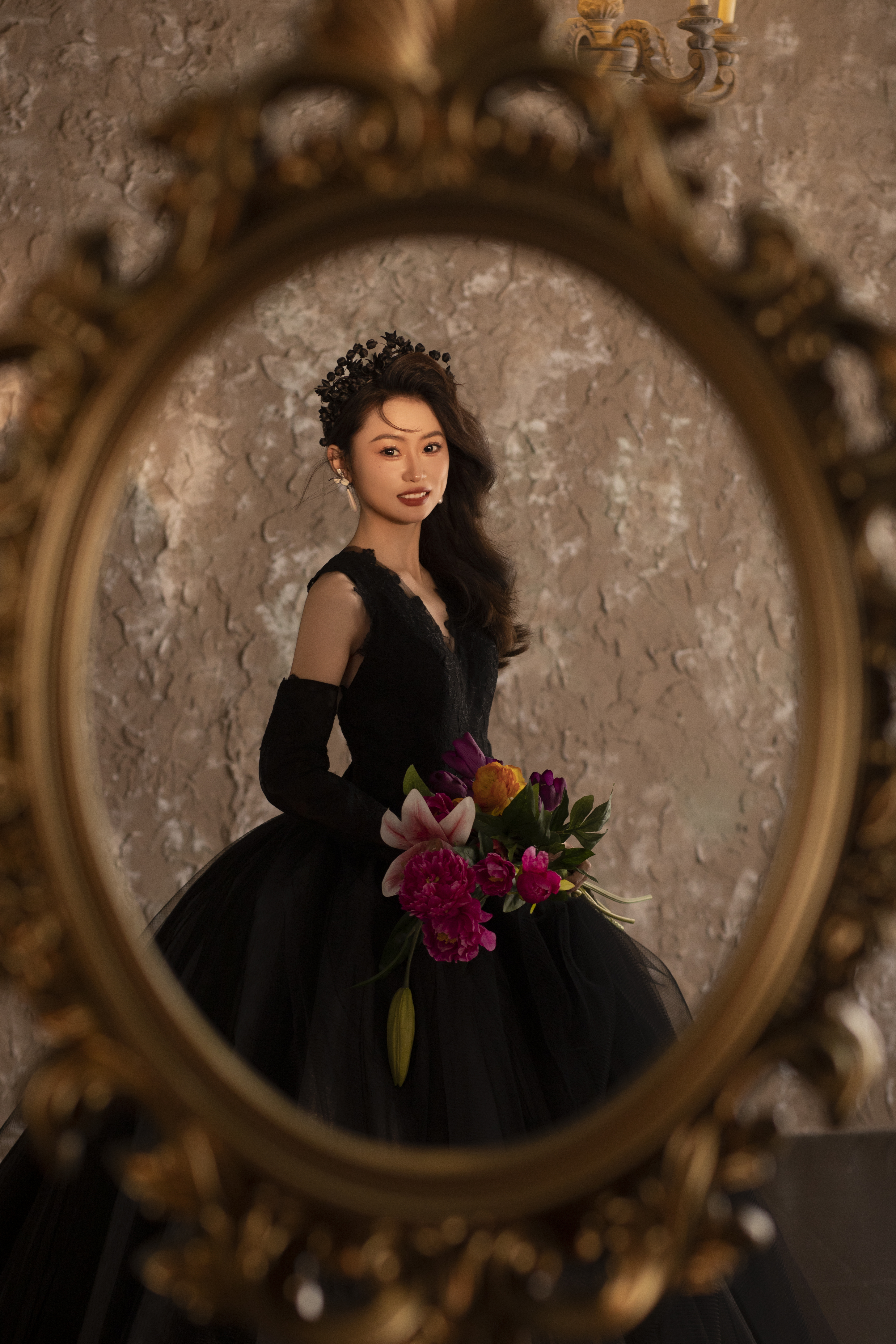 拍出来的效果还是很不错的 红色油画这组是最满意的 化妆师也很负责从头到位都在变造型补妆 摄像师会想法设法逗我们笑