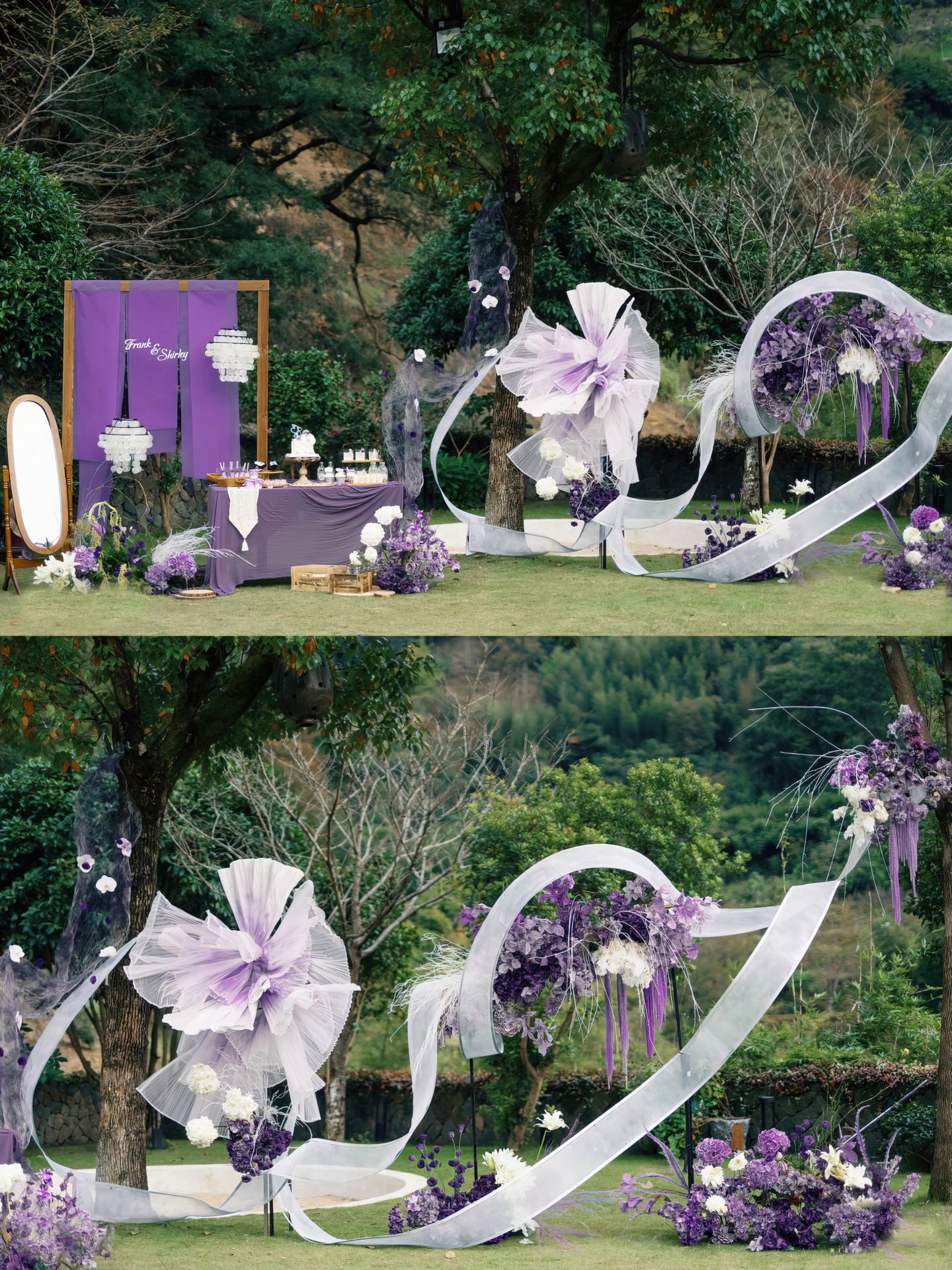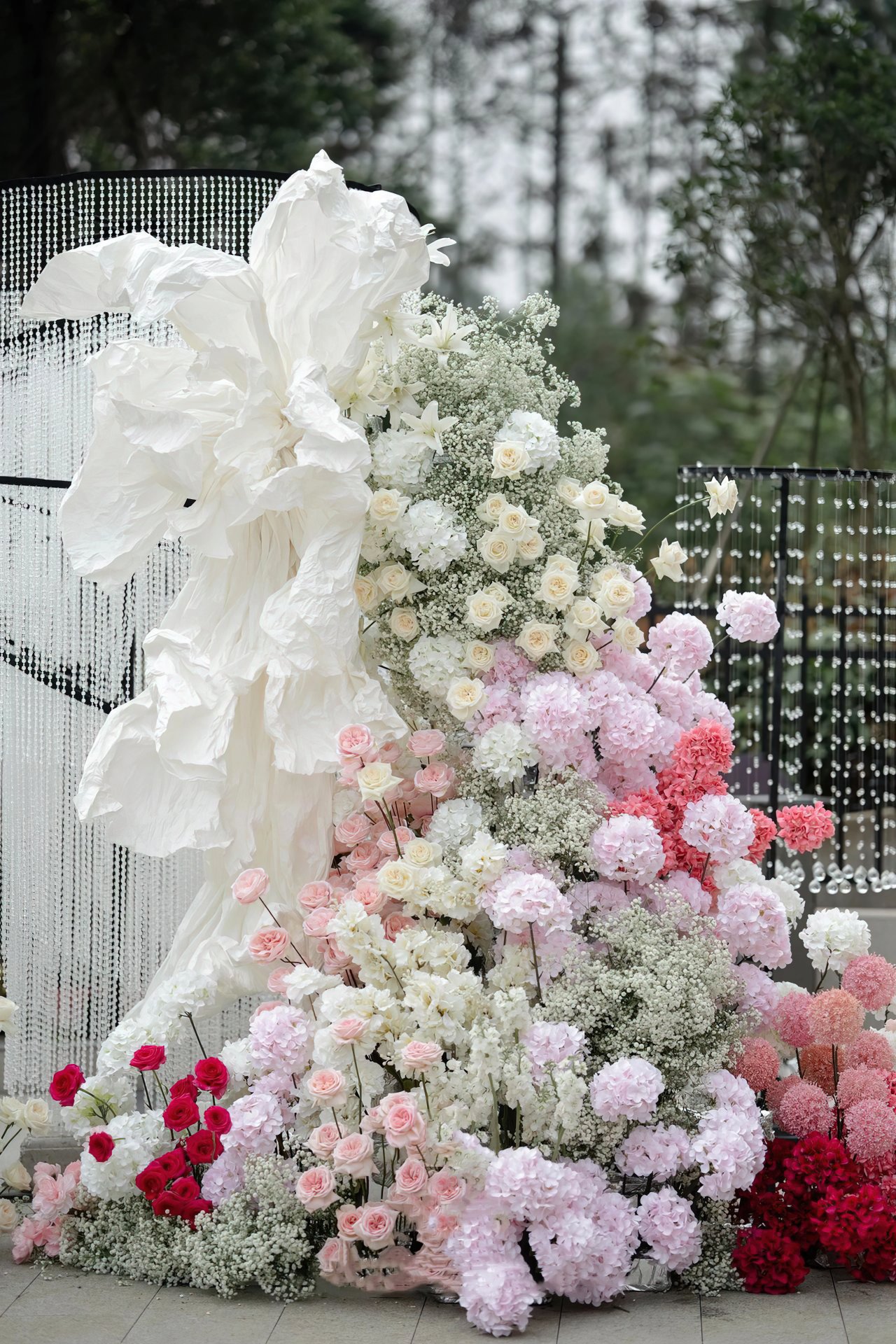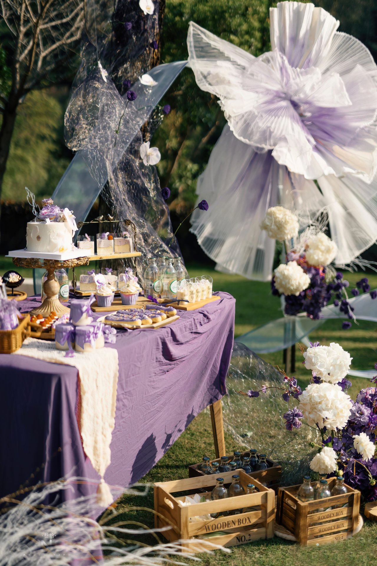 户外草坪婚礼丨蝶结花境 奶油色蝴蝶结搭配
