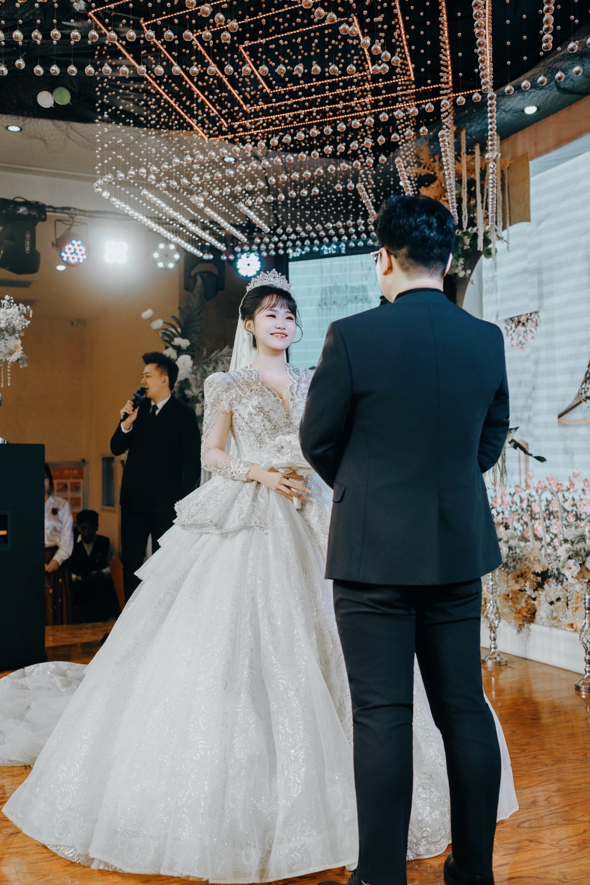 全程精准捕捉仪式感!24-70mm和70-200mm 长焦镜头下的光影构图超绝,敬酒时的动态抓拍、誓词环节的微表情都清晰有质感,原片直出都能当壁纸~” 从彩排到散场全程耐心跟进,会主动引导姿势还不打扰氛围,雨夜外景也能快速调整参数,拍出的照片既有故事感又显高级!” 成片效率超高,精修色调高级不浮夸,细节处理到位(裙摆褶皱、花瓣散落都很自然)太值得推荐!”