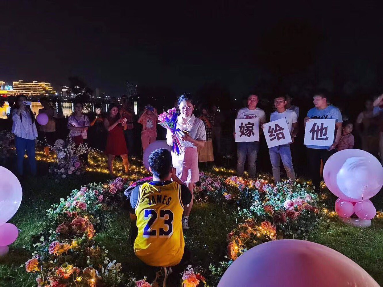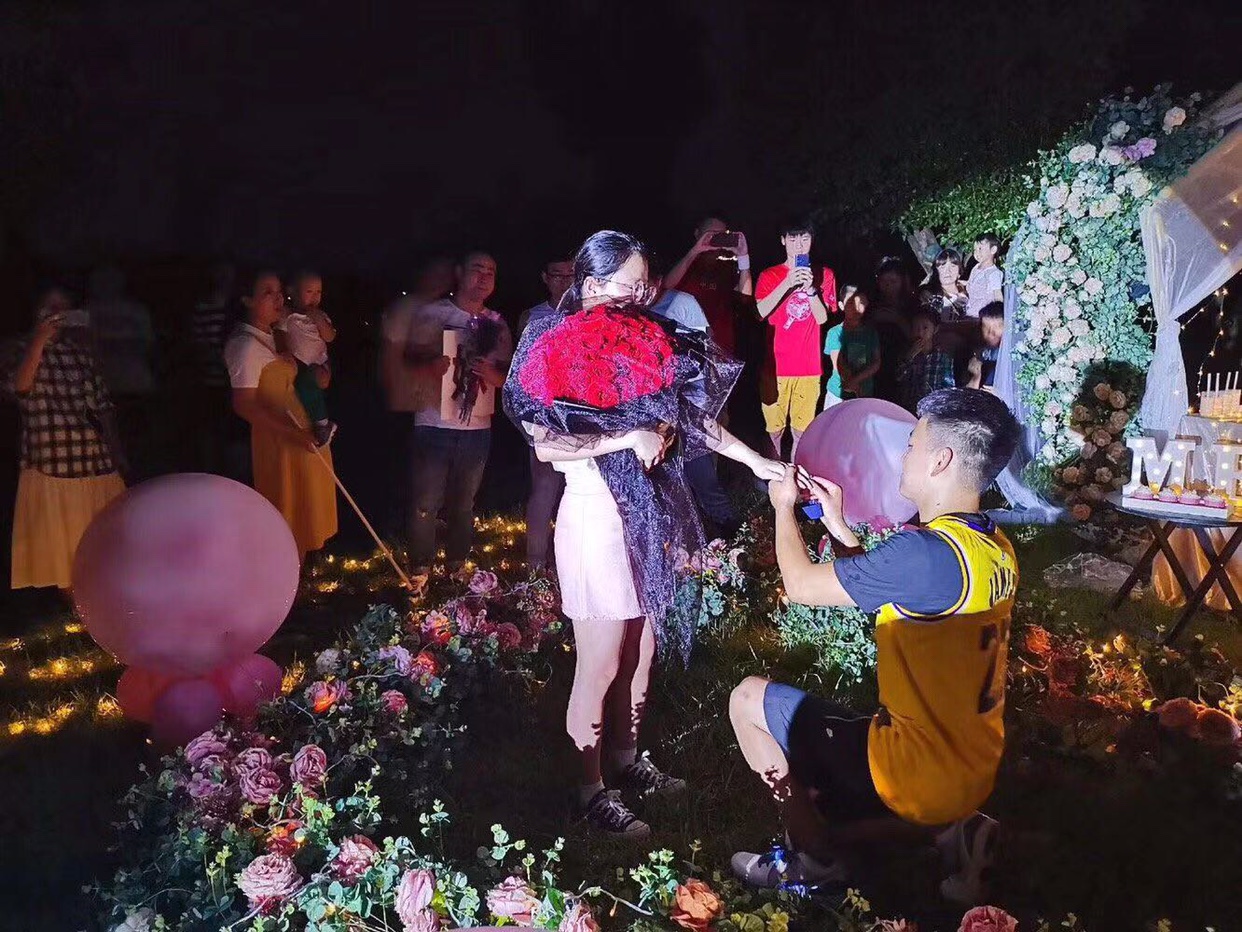 找ICE拍摄的时候,他们给我看了两个他们拍过的求婚,感觉很漂亮,就订了他们家,当天是傍晚,还怕拍出来效果不太好,但是看到视频预告的时候,真的是喜翻了,该有的环节都拍到了,求婚现场真的很美,三个场景,满满的少女心,预告里面也都有,反反复复看了好多遍,真的好喜欢