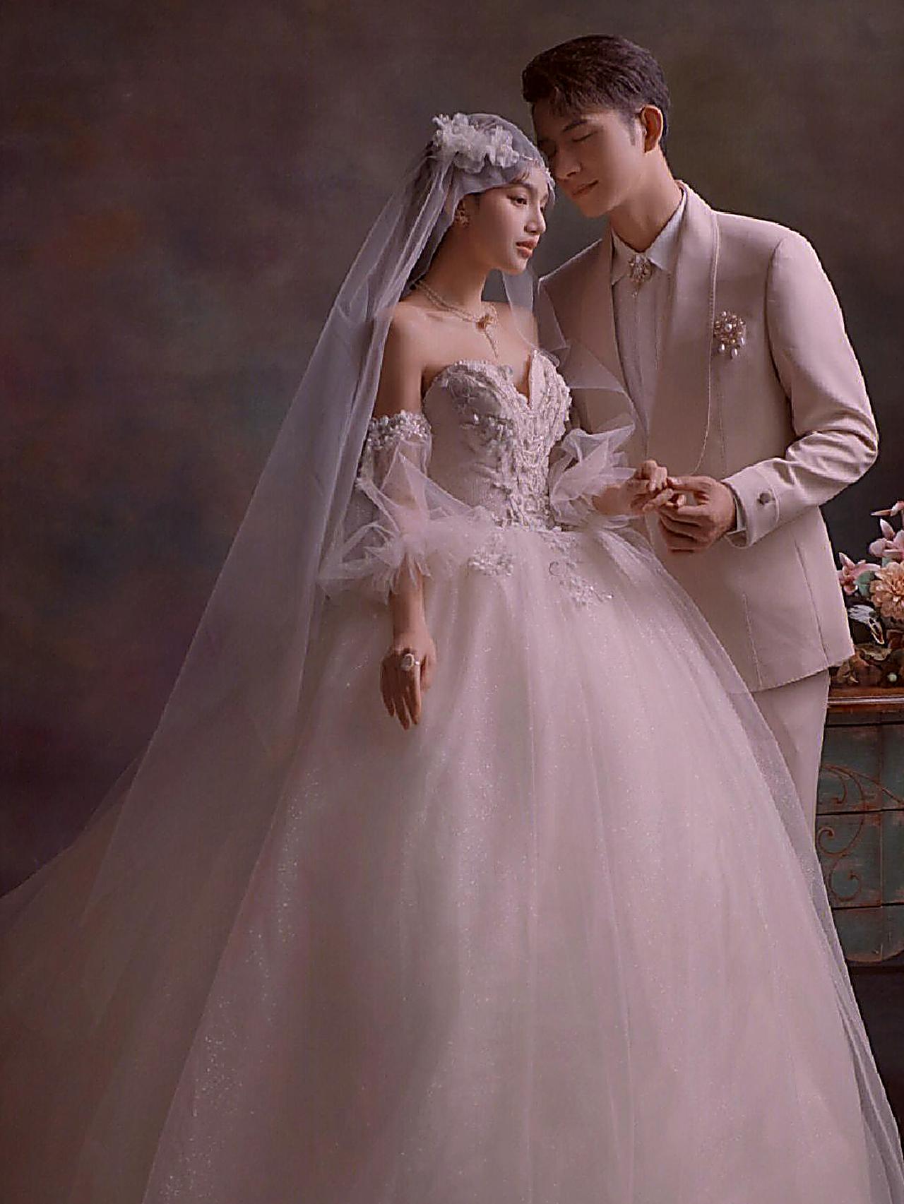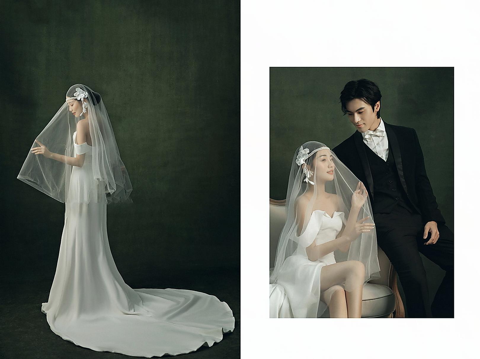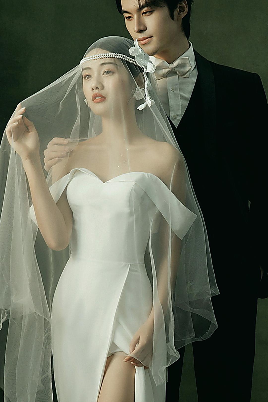 极简主纱婚照|纯色背景定格纯粹爱意瞬间