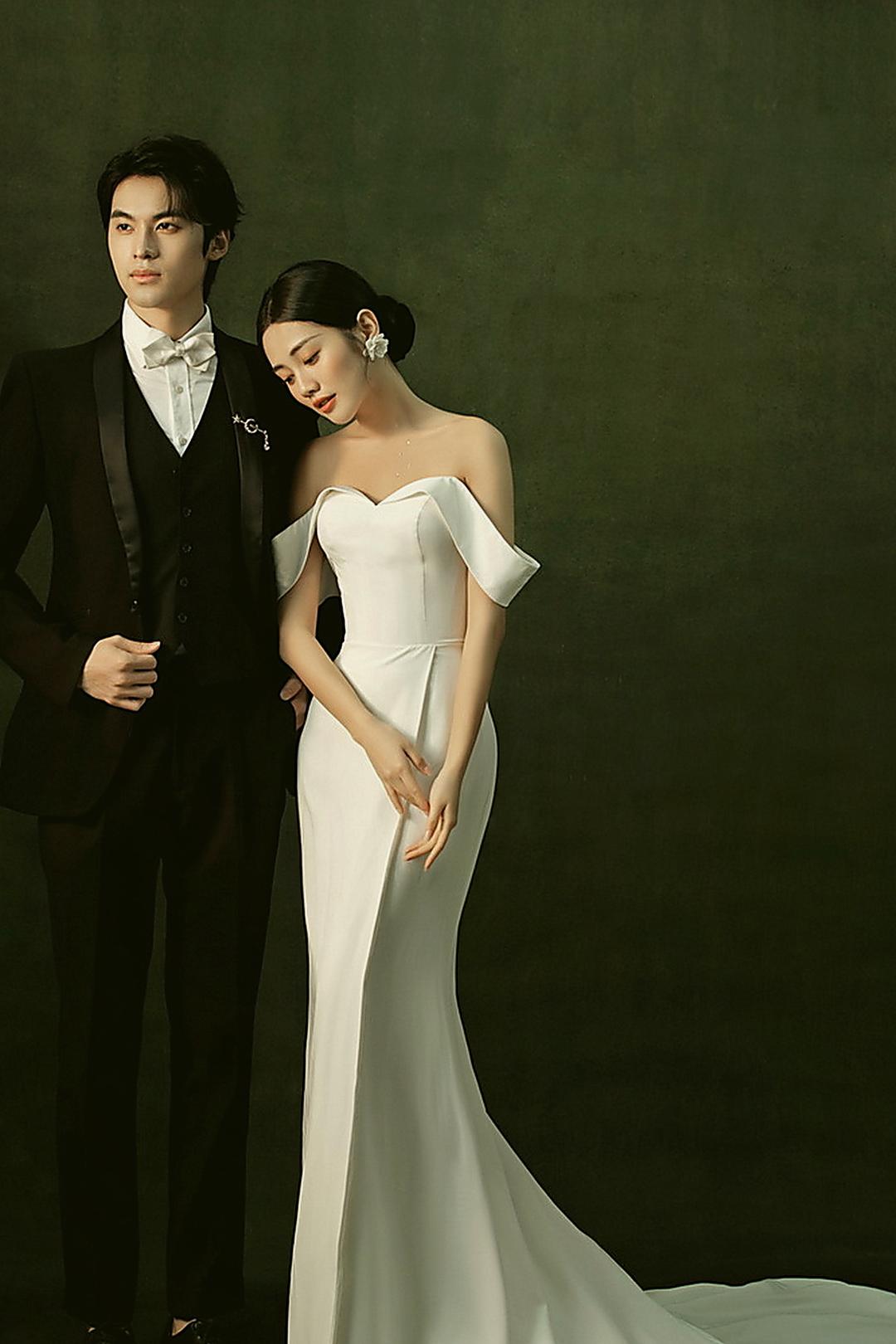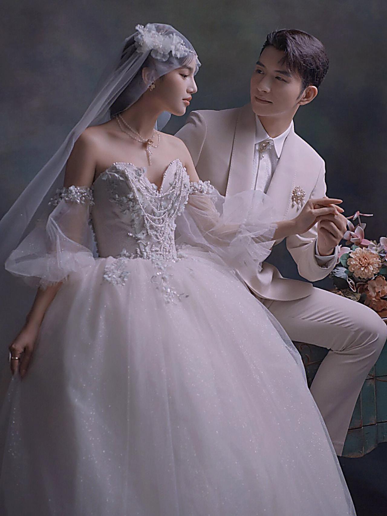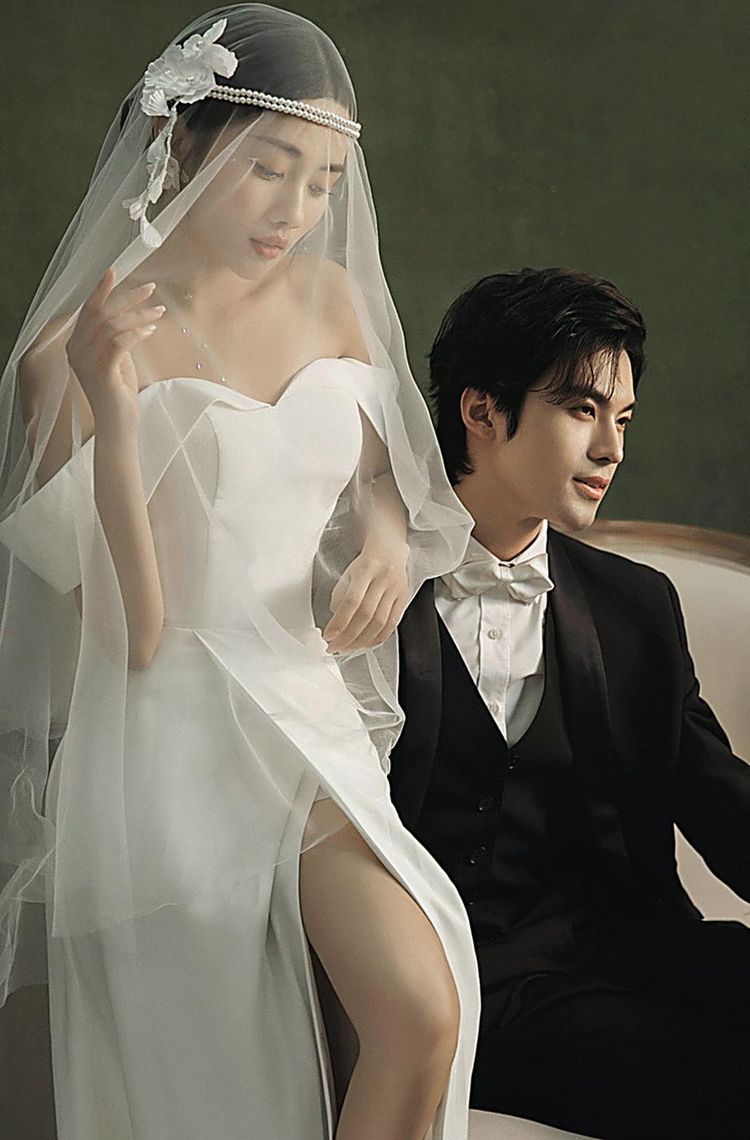 极简主纱婚照|纯色背景定格纯粹爱意瞬间