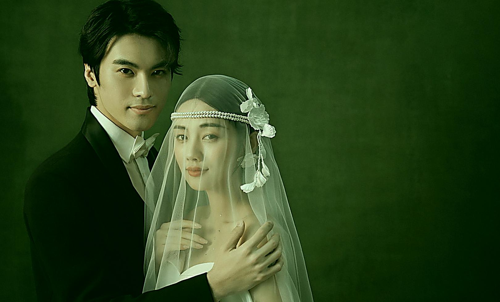 树影叠翠衬冷艳,拍一组森野里的高级浪漫婚照