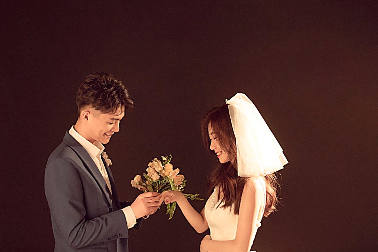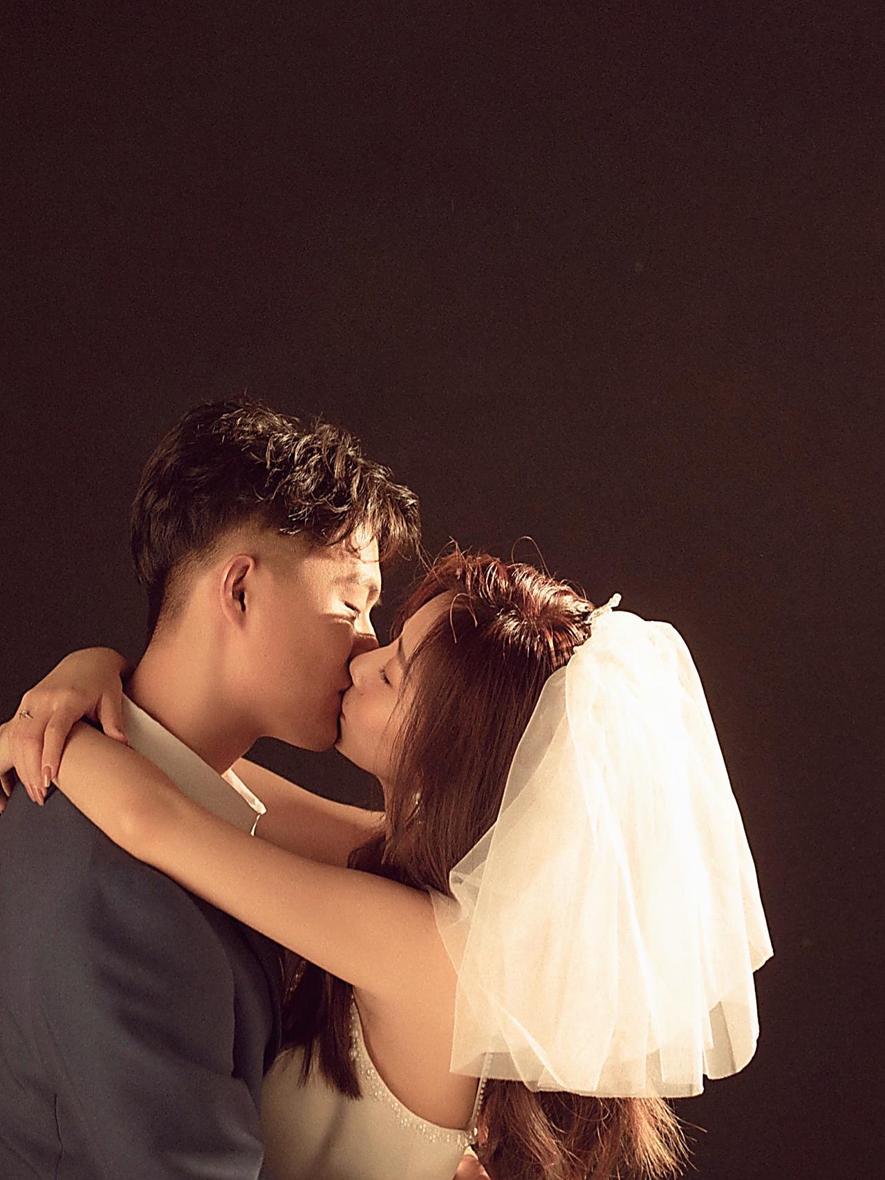 极简主纱婚照|纯色背景定格纯粹爱意瞬间