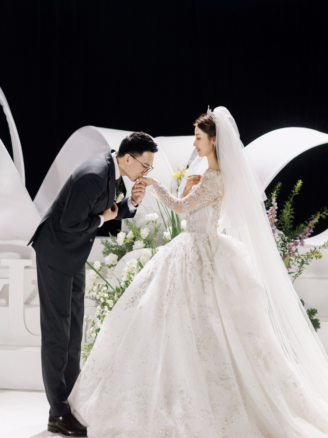 惊艳的花朵婚纱