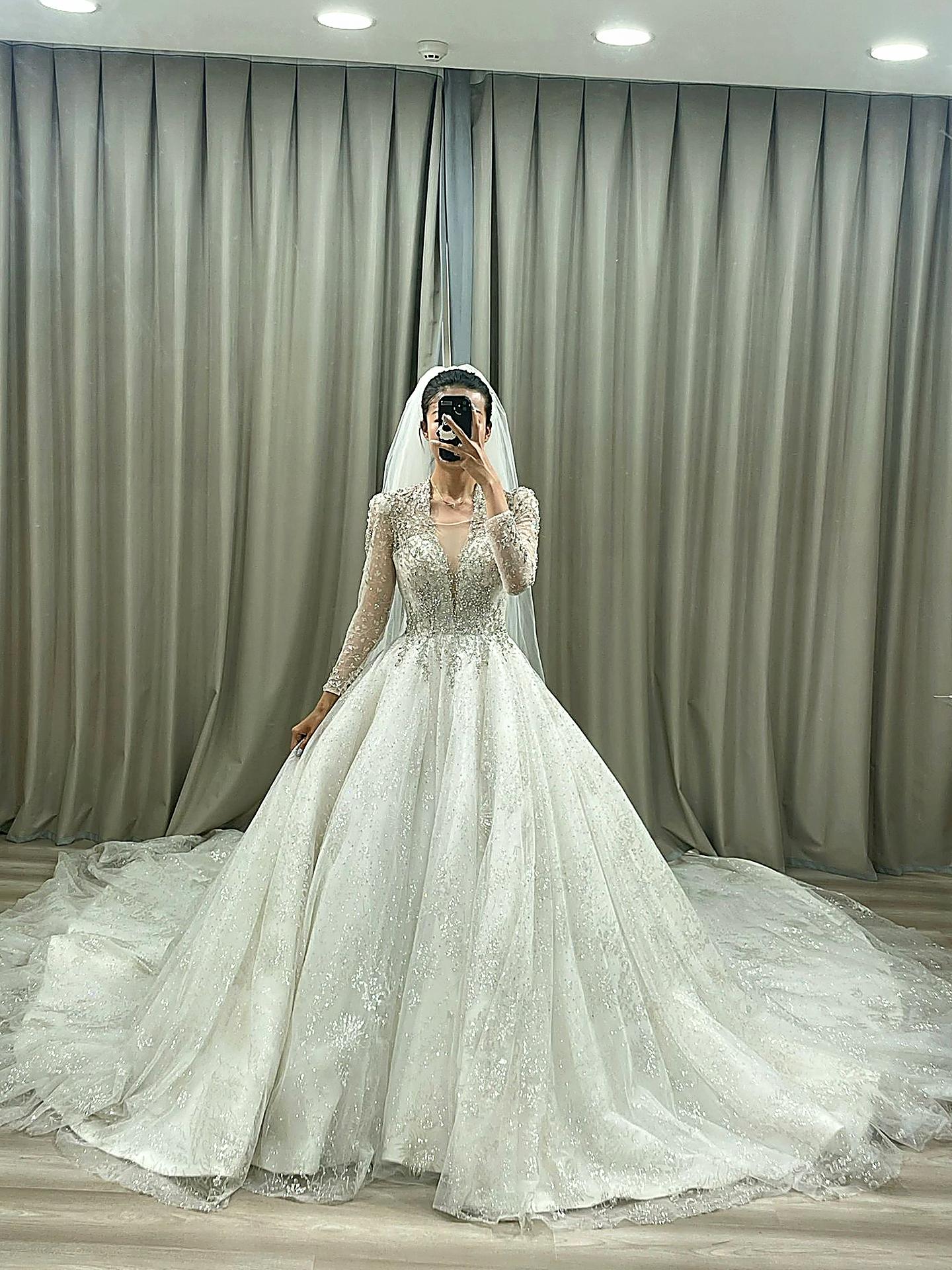 【优雅仙奢】重工长袖方领拖尾婚纱