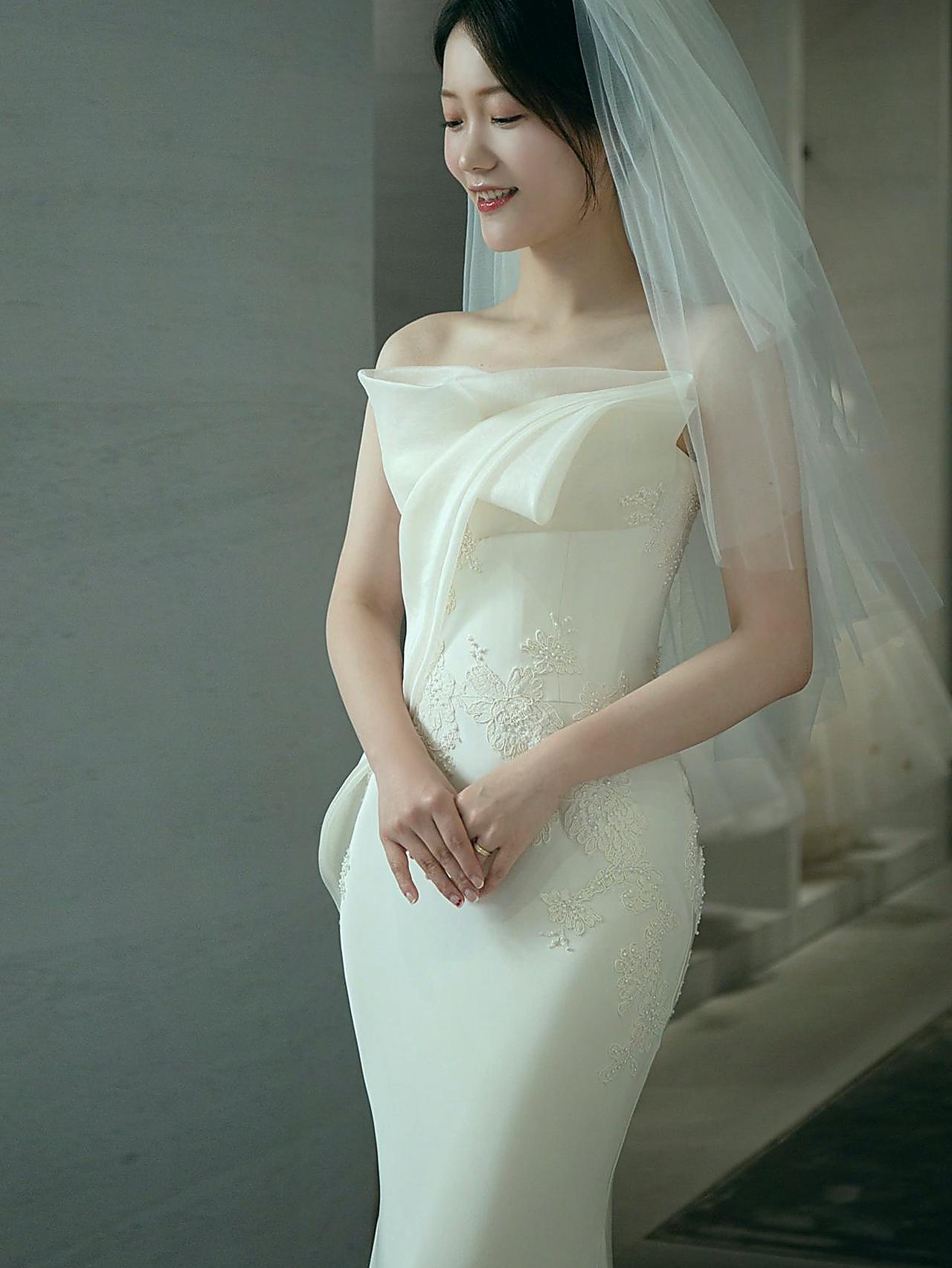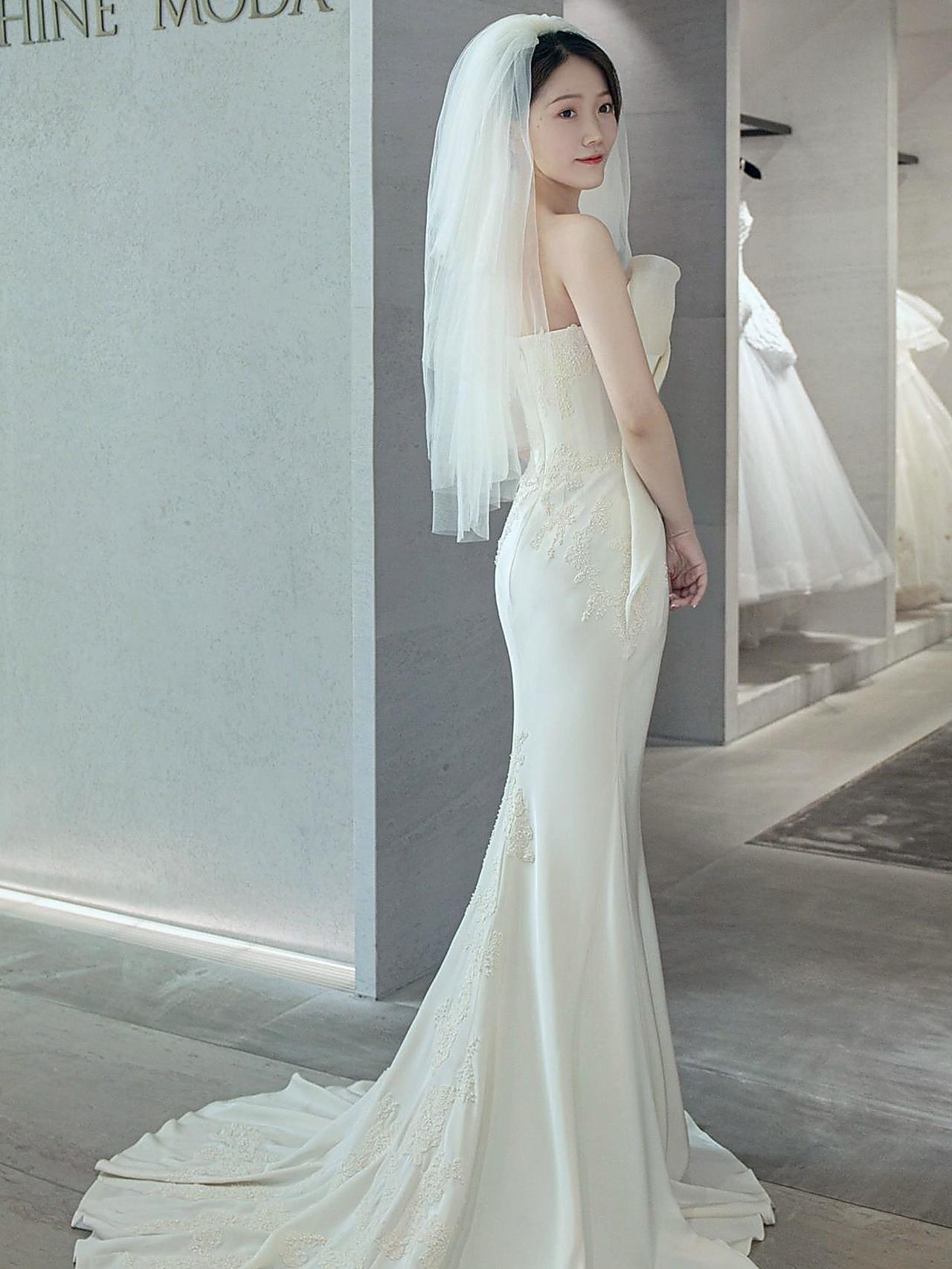 【少女感】抹胸蕾丝刺绣拖尾婚纱