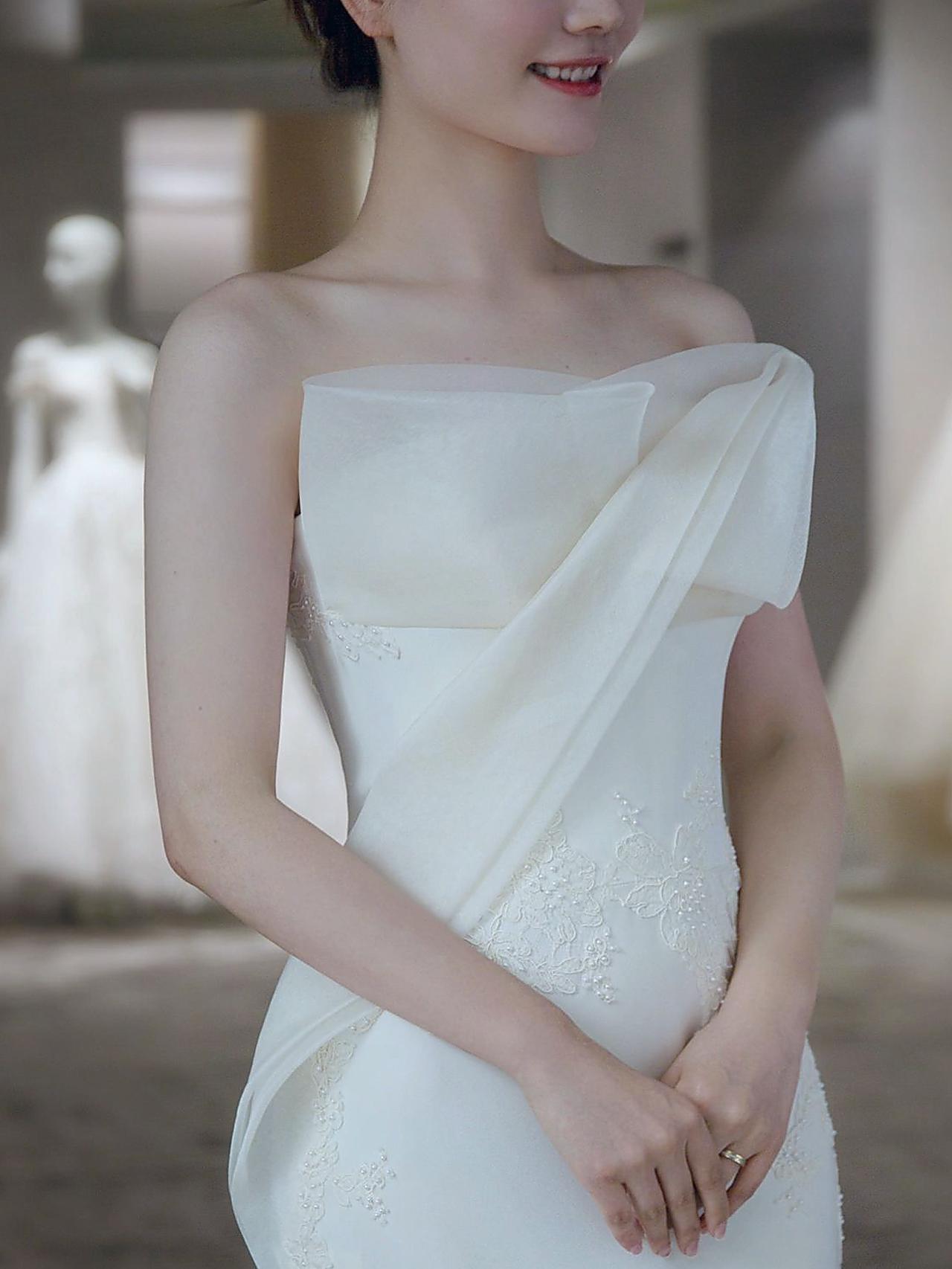 【仪式感】温柔抹胸缎面拖尾婚纱