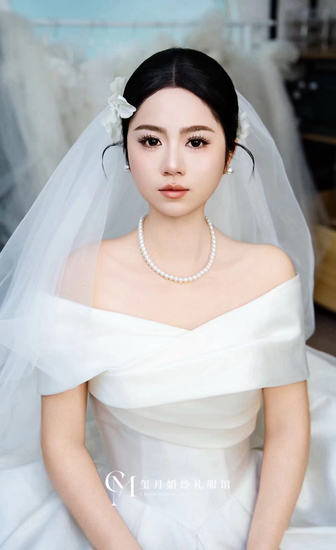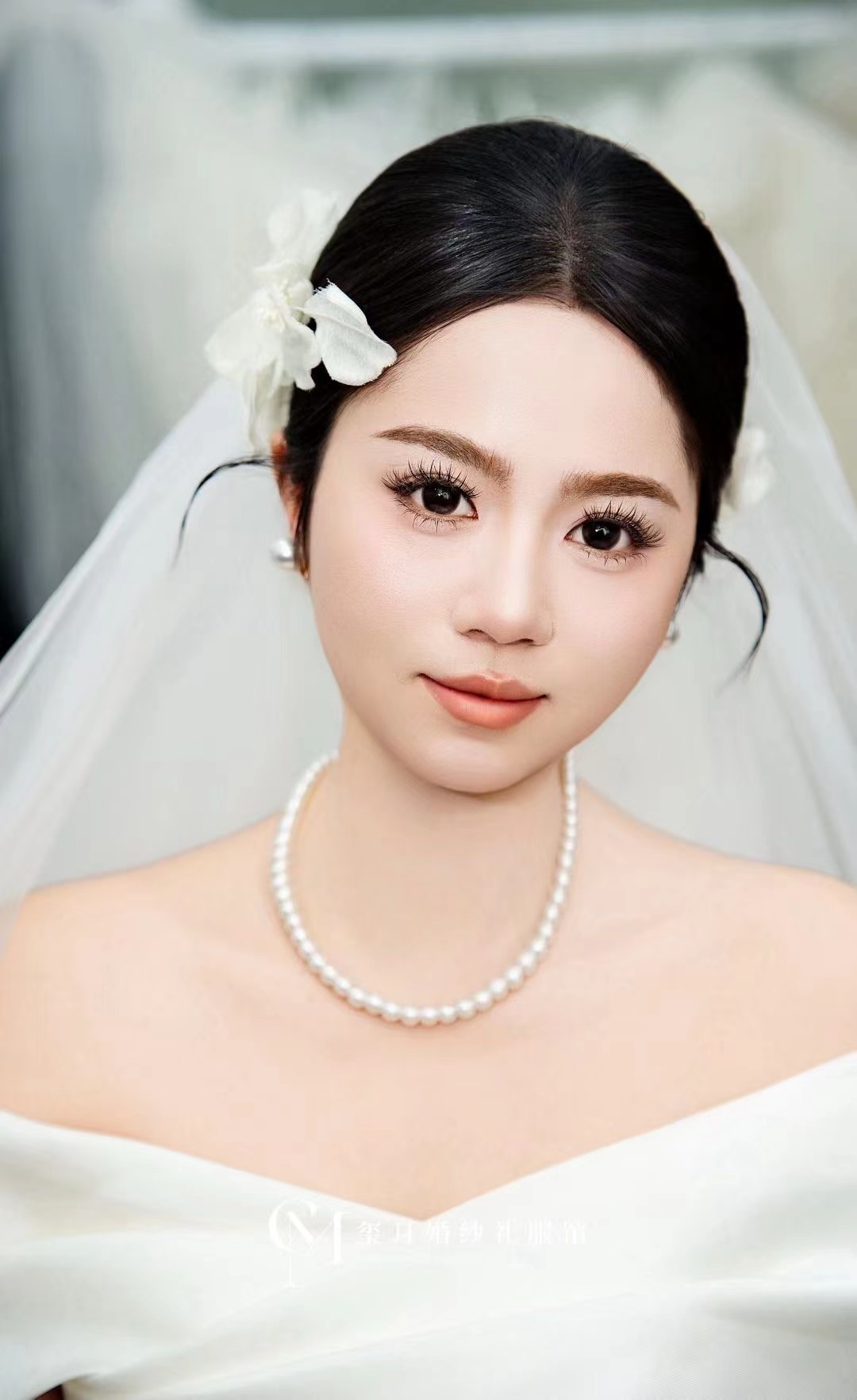 一整个温柔高级的妆造✨✨✨ 谁懂啊!试妆试到了本命新娘妆✨ 低盘发搭配简约的珍珠发饰,和缎面婚纱适配度拉满。 氛围感,直接戳中我的心巴!